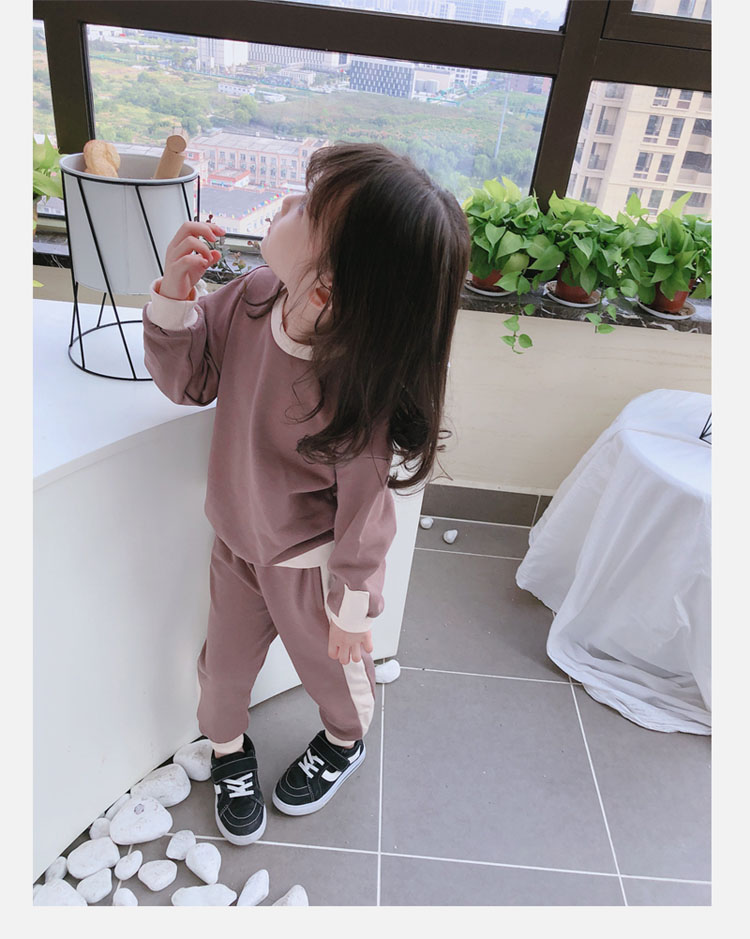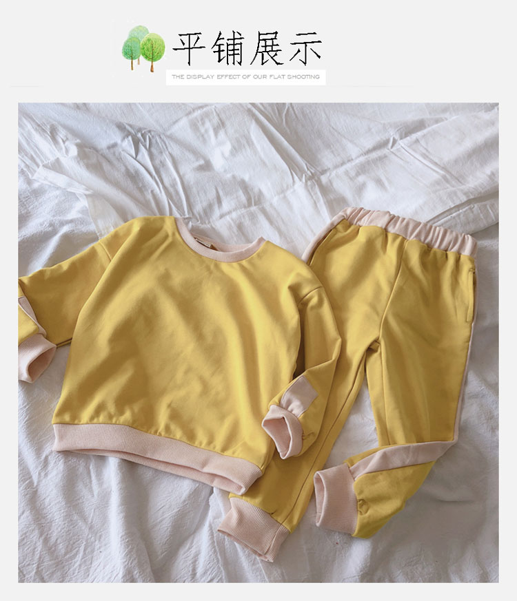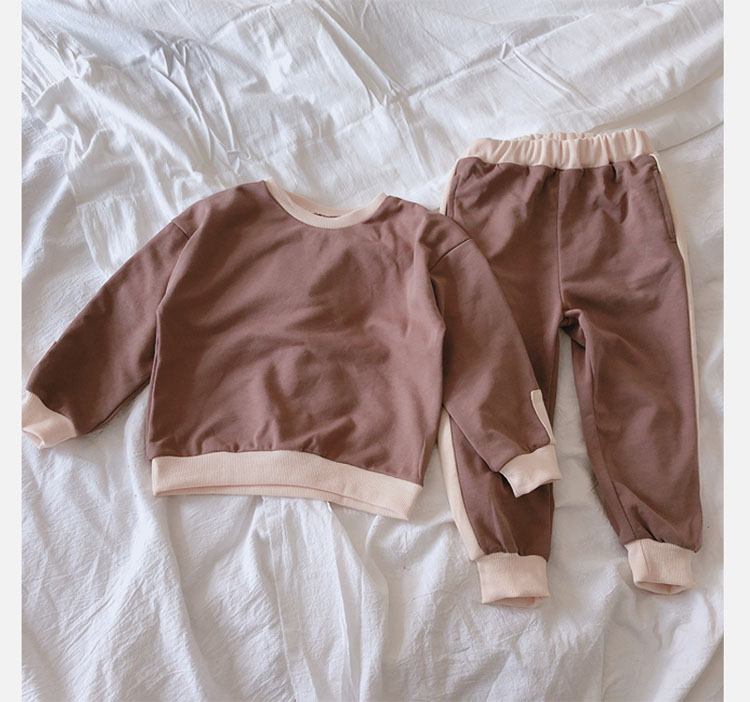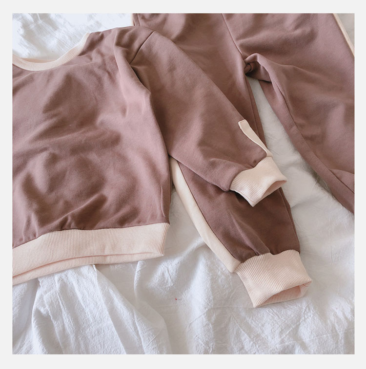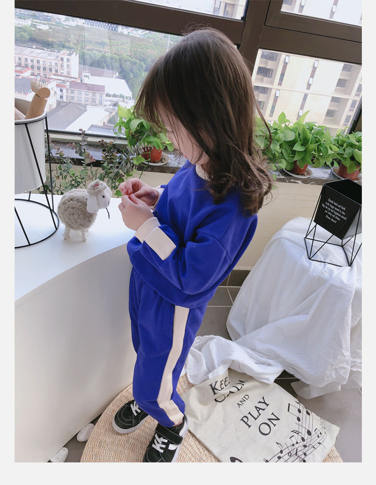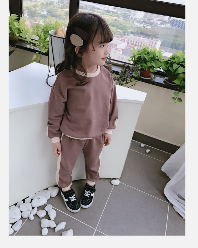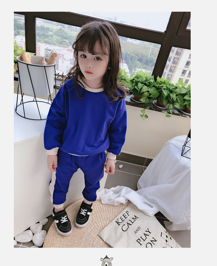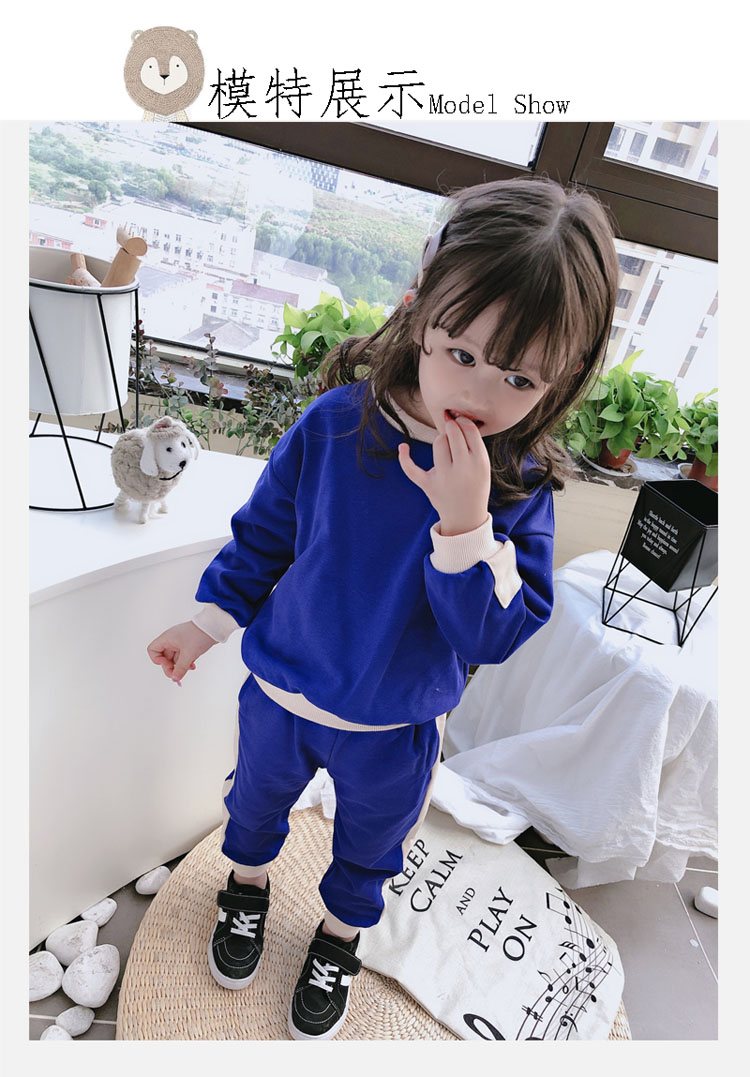 2019秋冬新款 寶寶圓領撞色長袖運動風上衣+寬松休閑褲兒童套裝1入