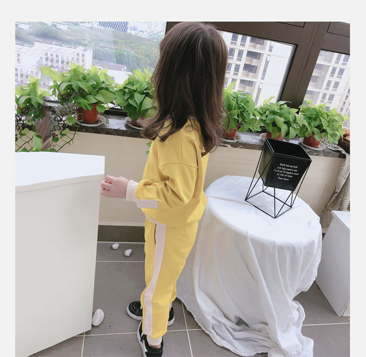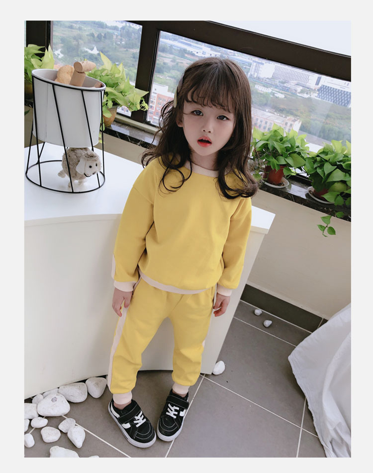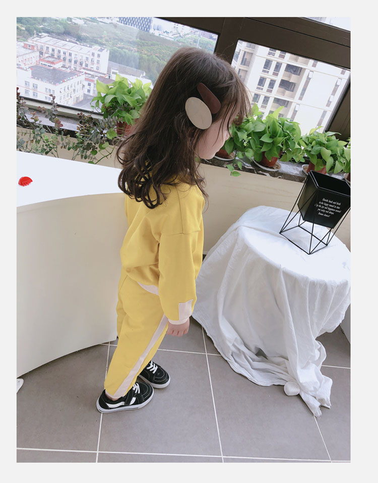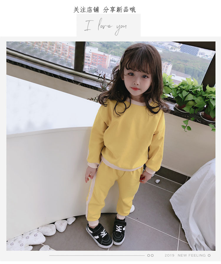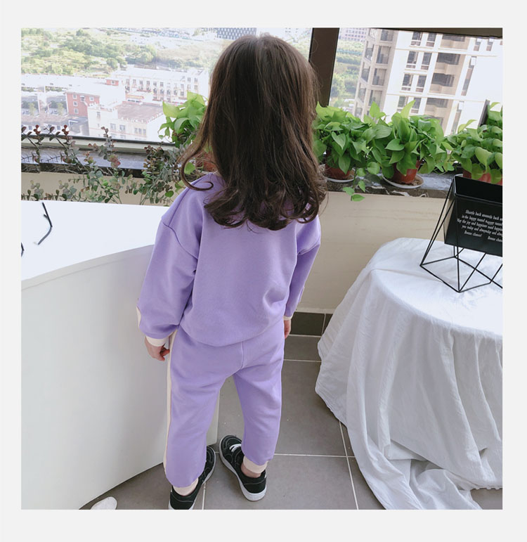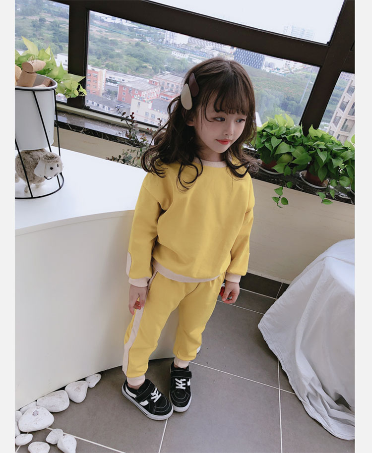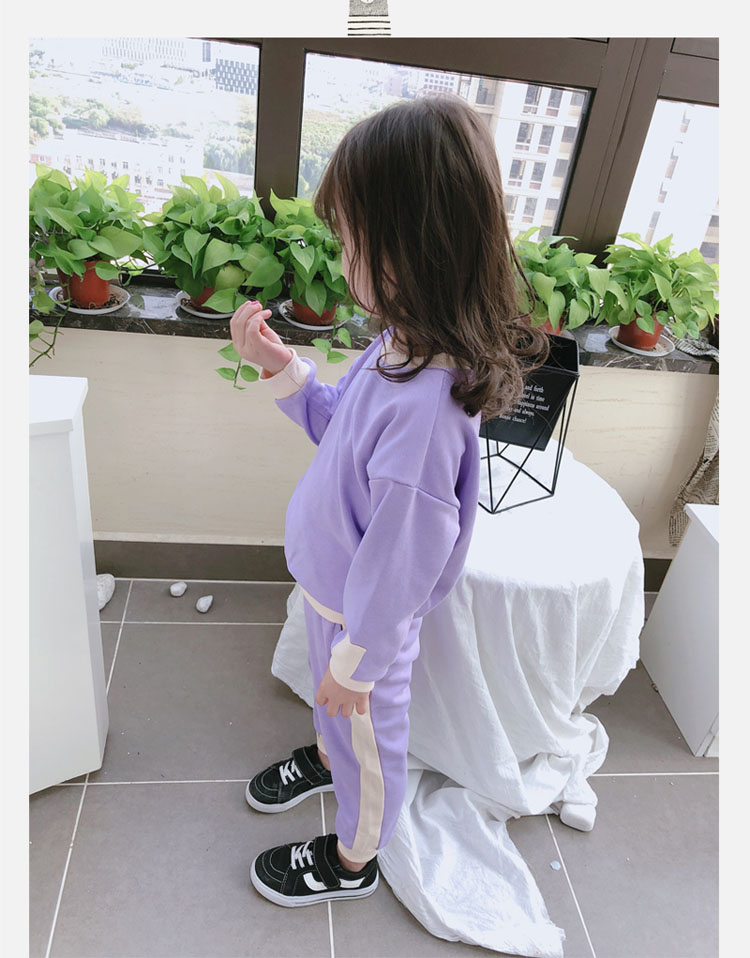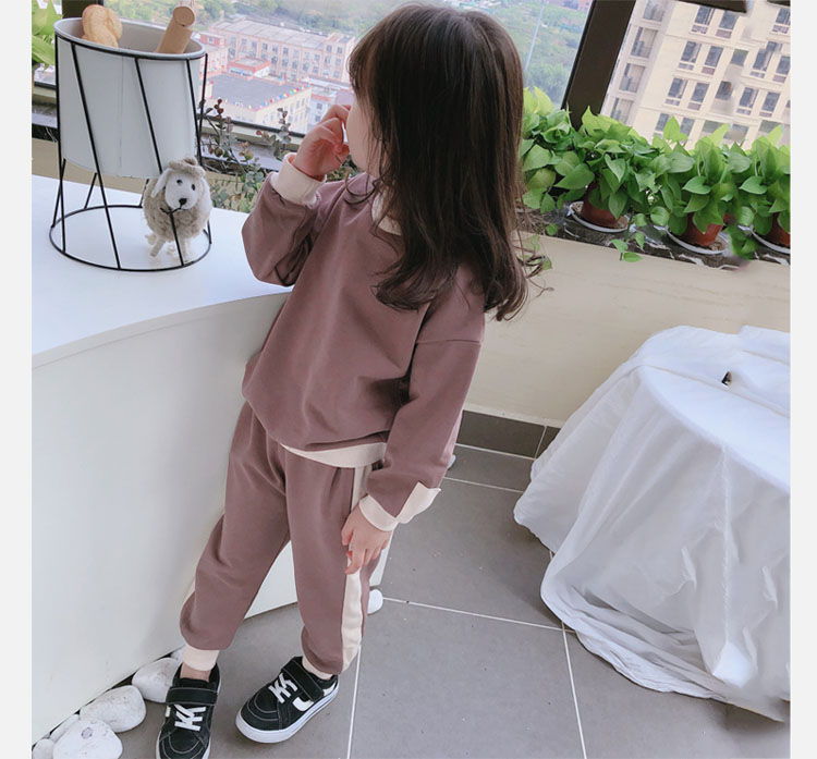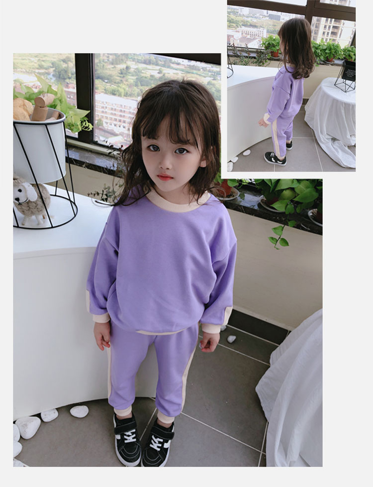 2019秋冬新款 寶寶圓領撞色長袖運動風上衣+寬松休閑褲兒童套裝1入