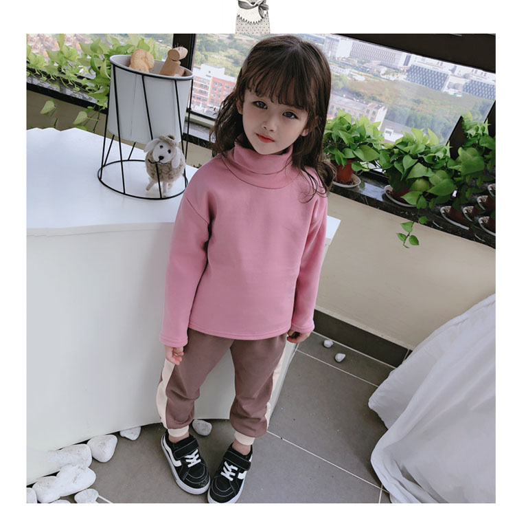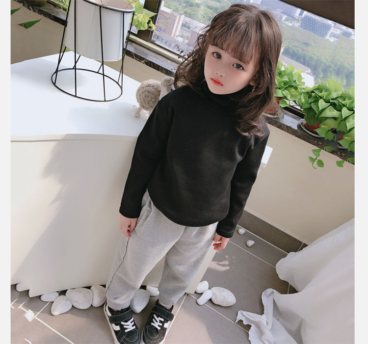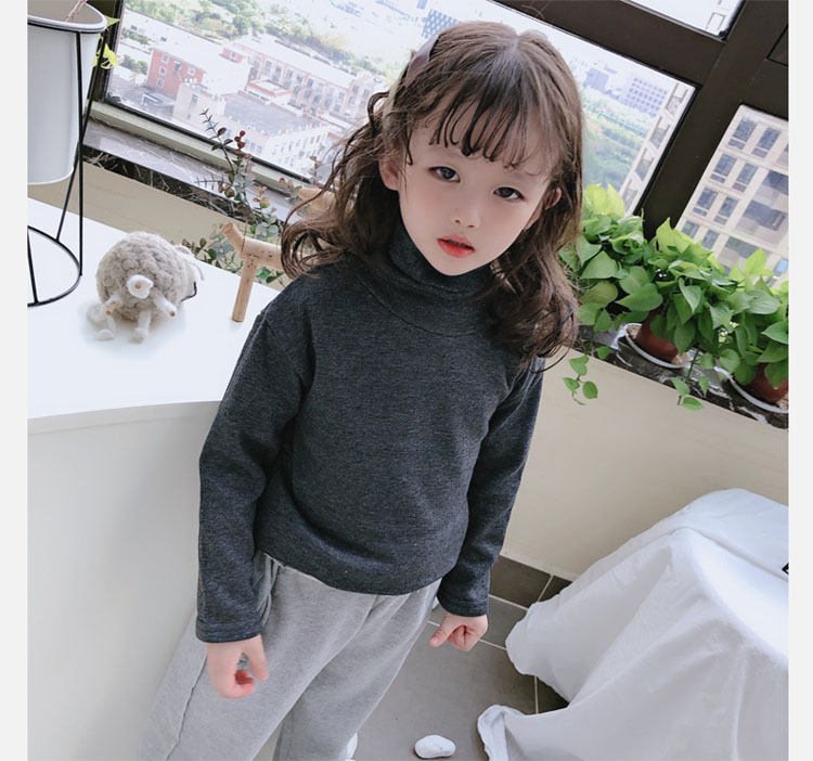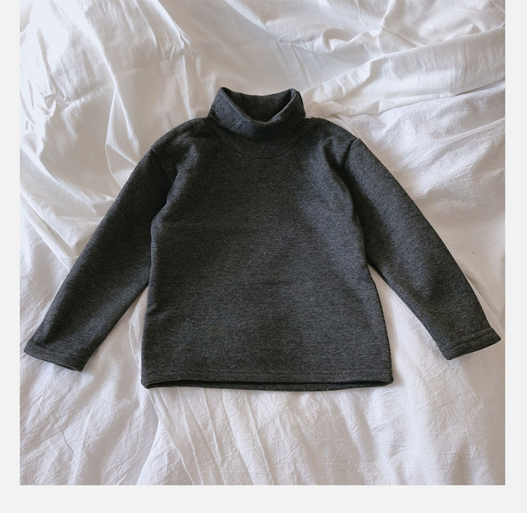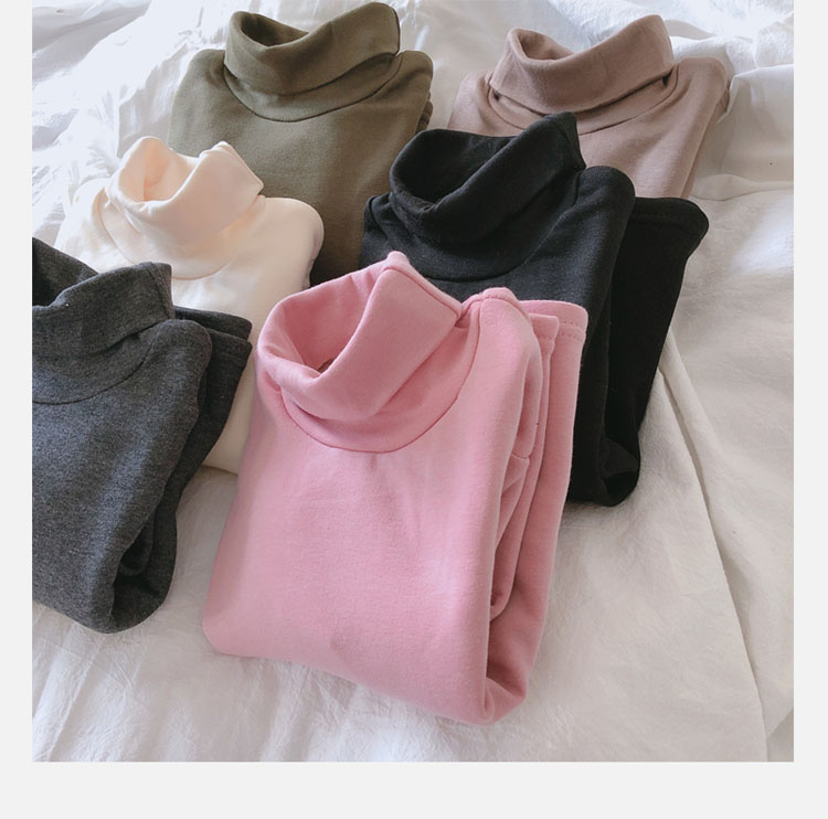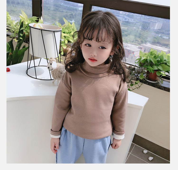 2019冬季新款 中小童舒適打底衫 男女童高領純色加絨加厚長袖絨衫1入