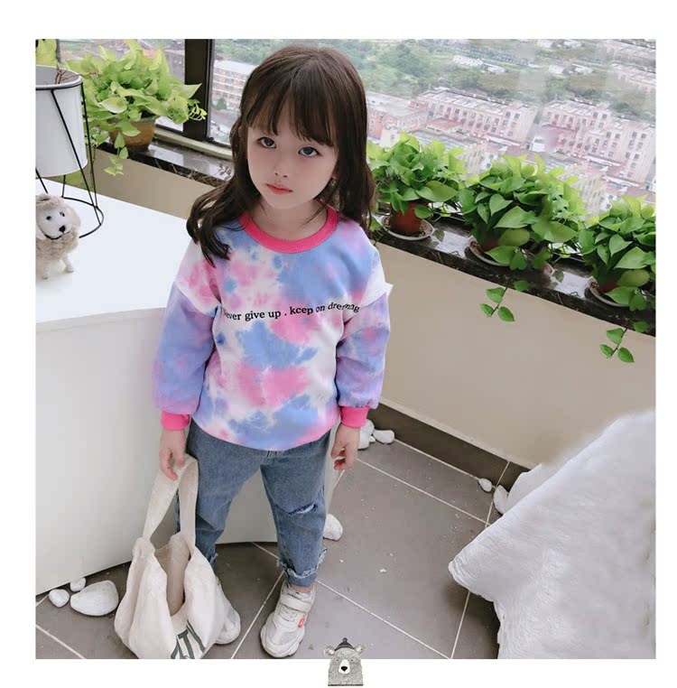 2019中小童春秋季新款圓領套頭上衣 男女童彩色氣質舒適寬松T恤1入