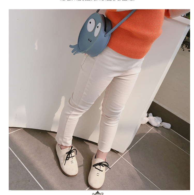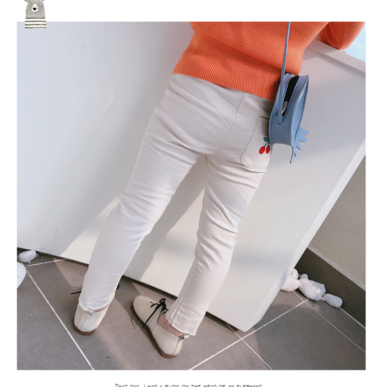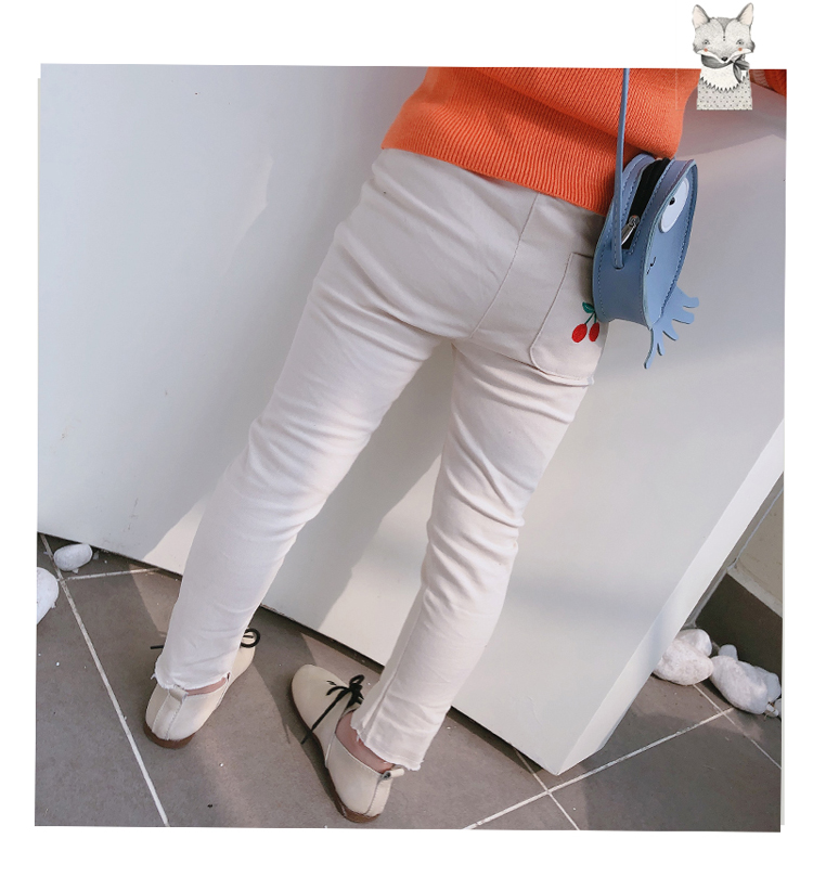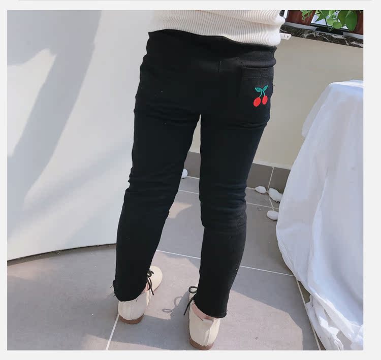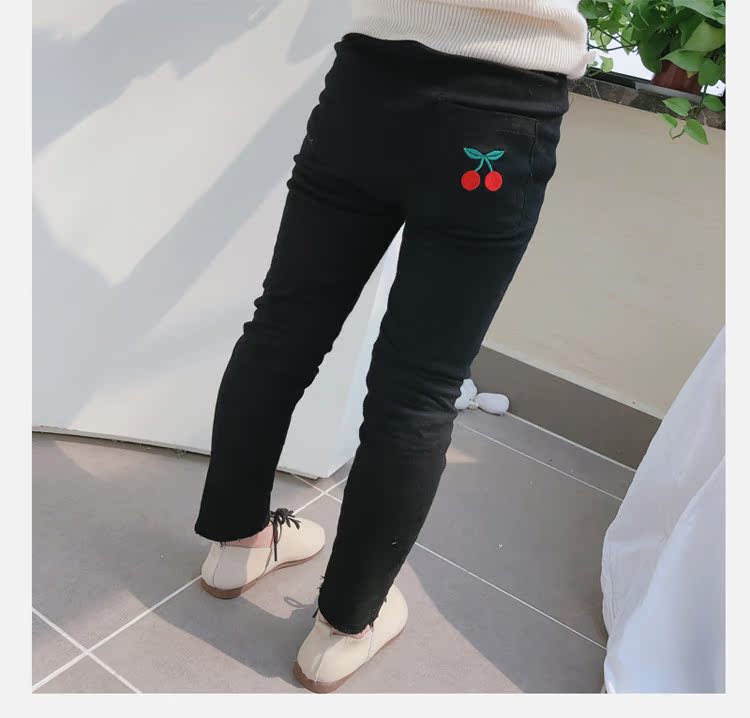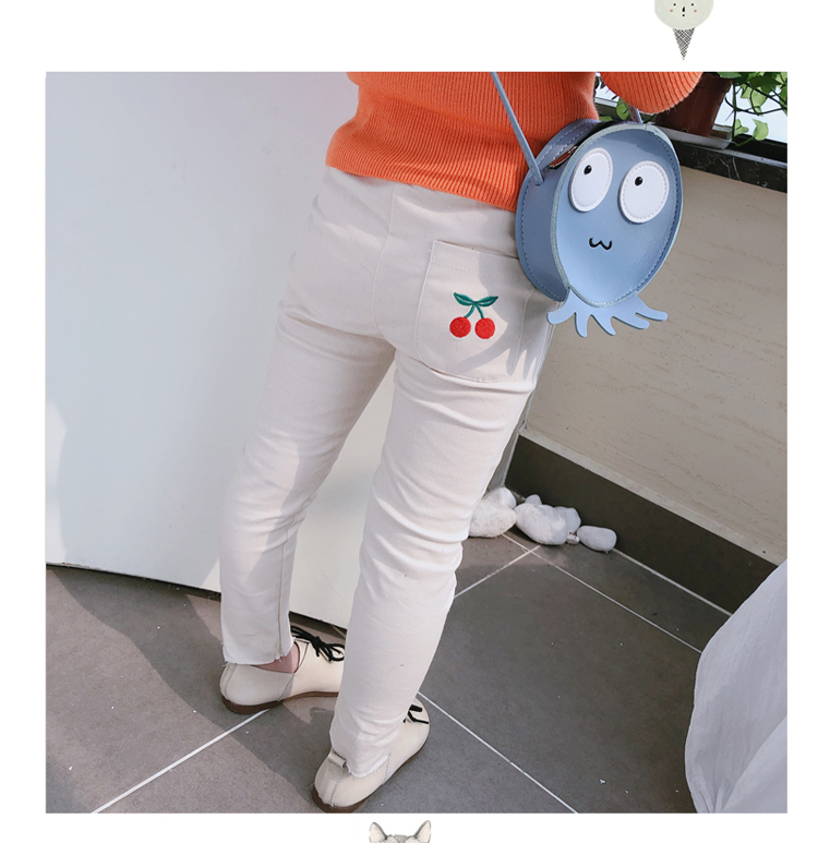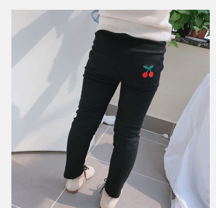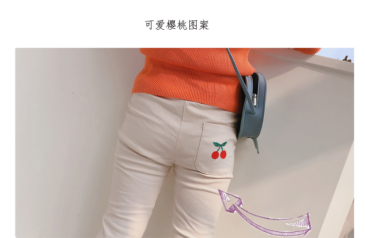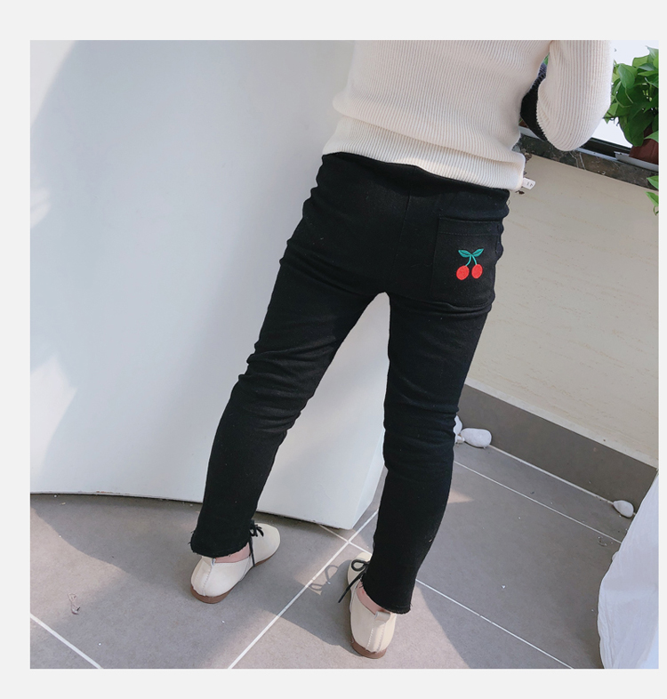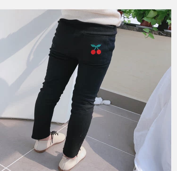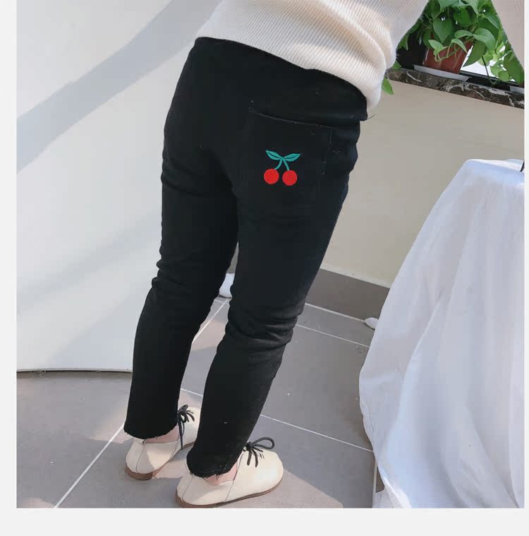 2019春秋季新款 女童修身舒適打底褲 兒童可愛刺繡小櫻桃圖案褲子1入