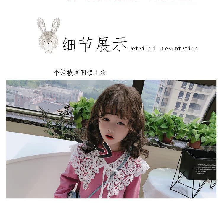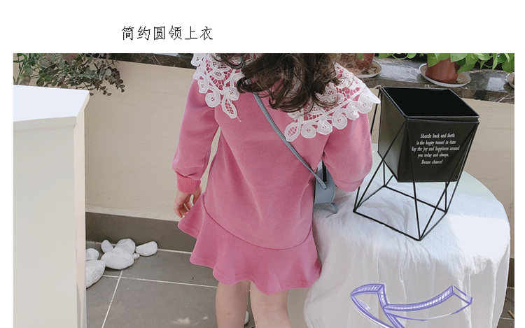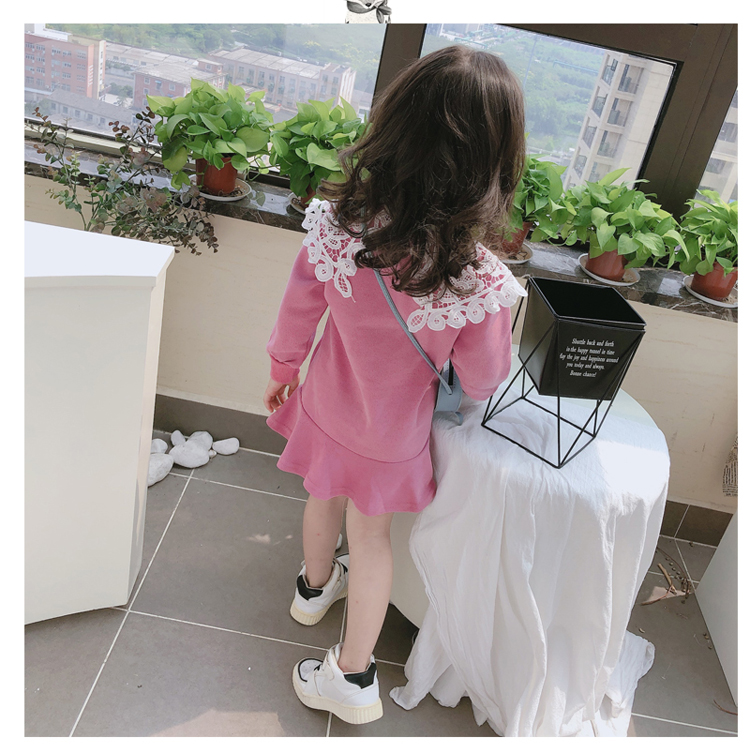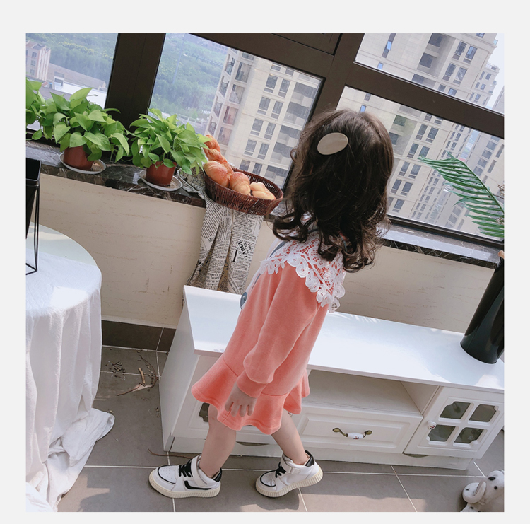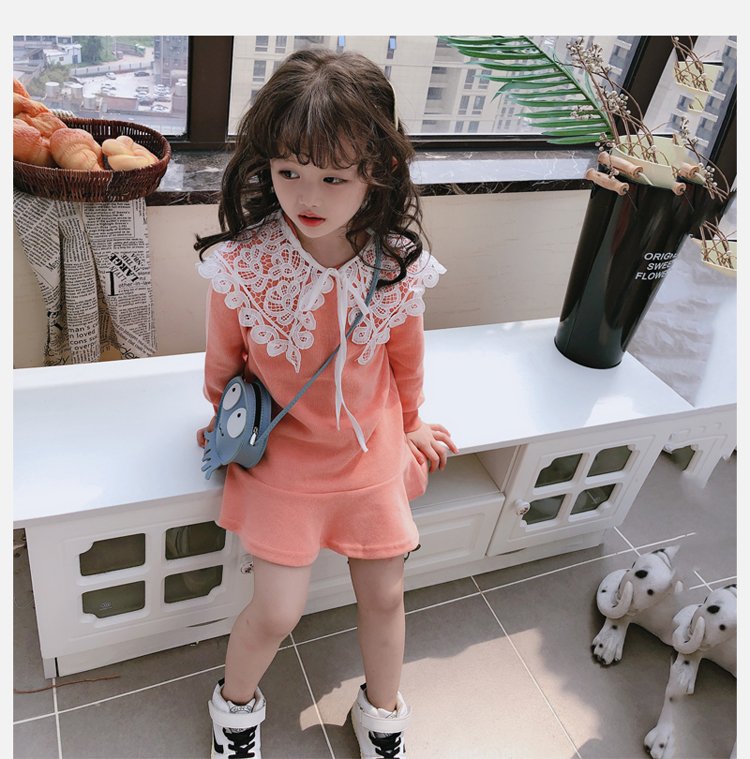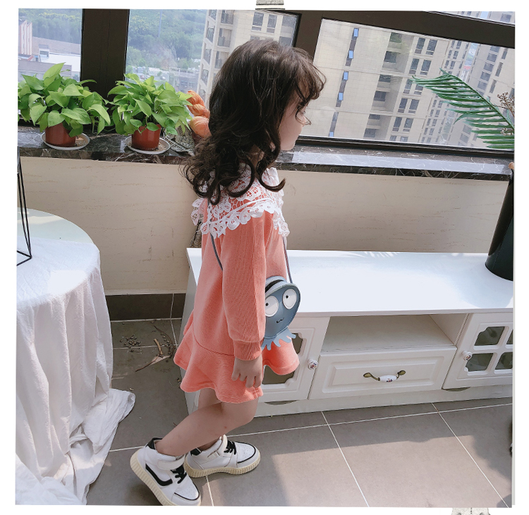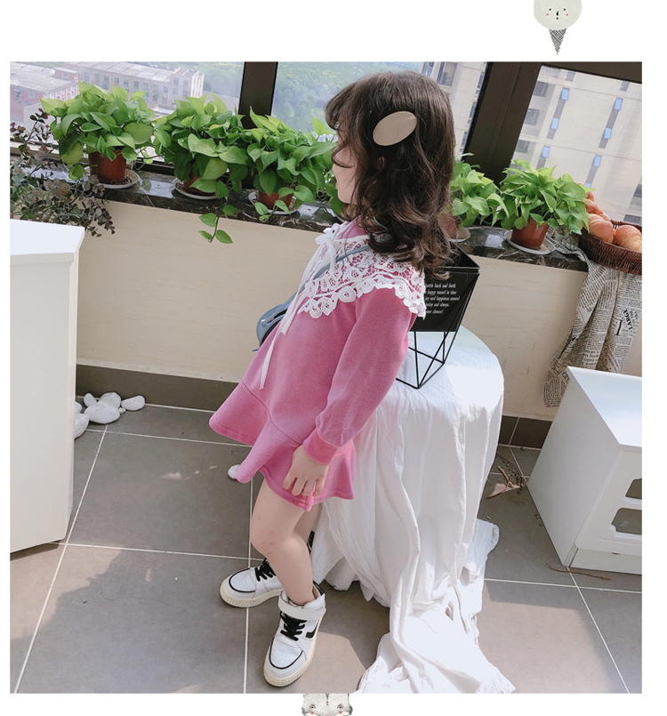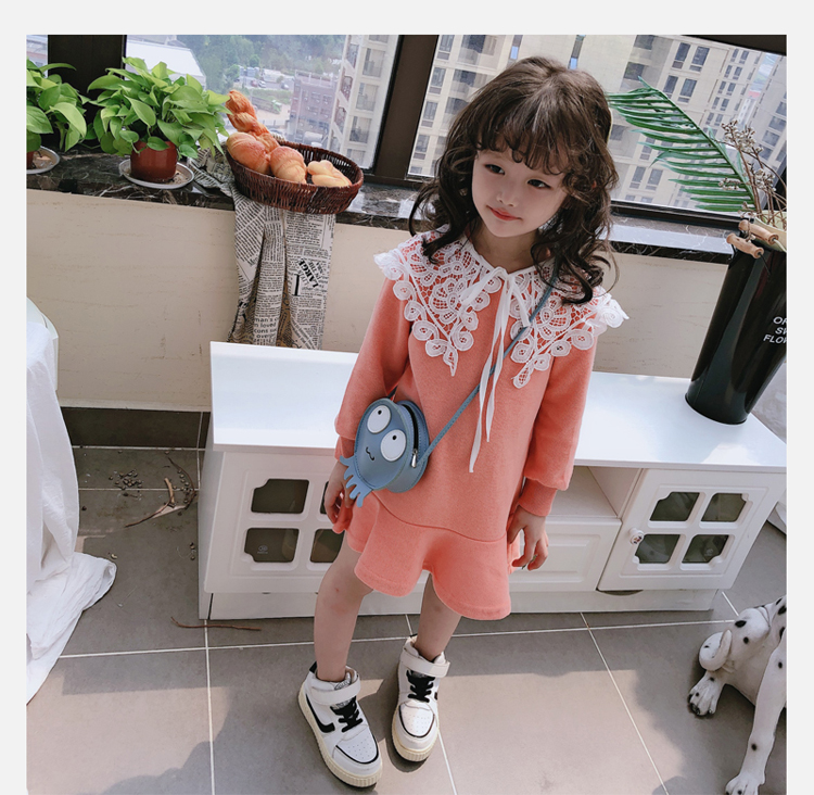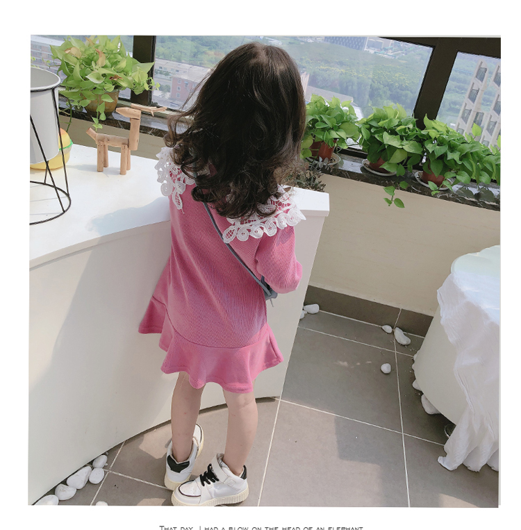 2019春秋季新款 女童修身連衣裙 中小童可愛甜美鏤空大翻領休閑裙1入