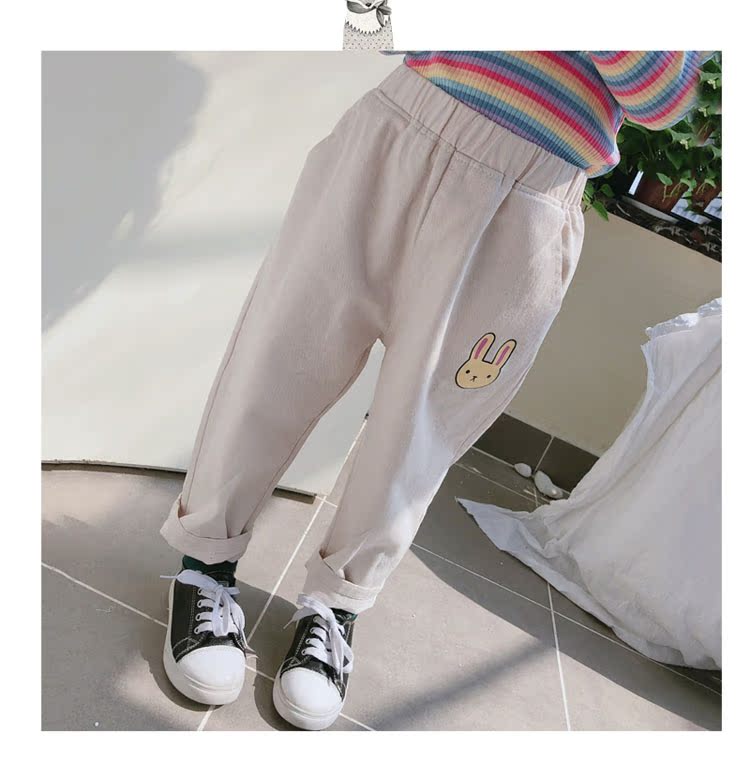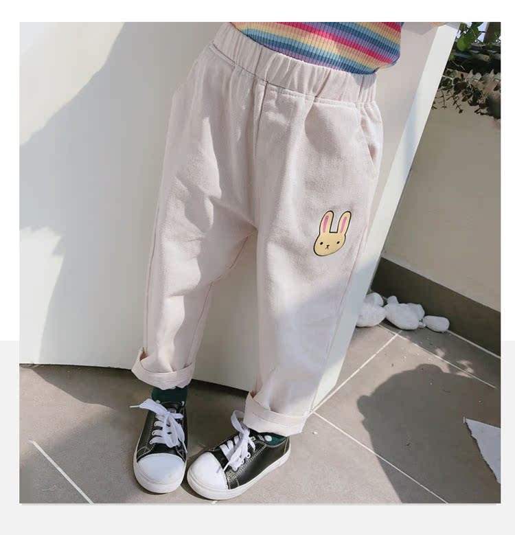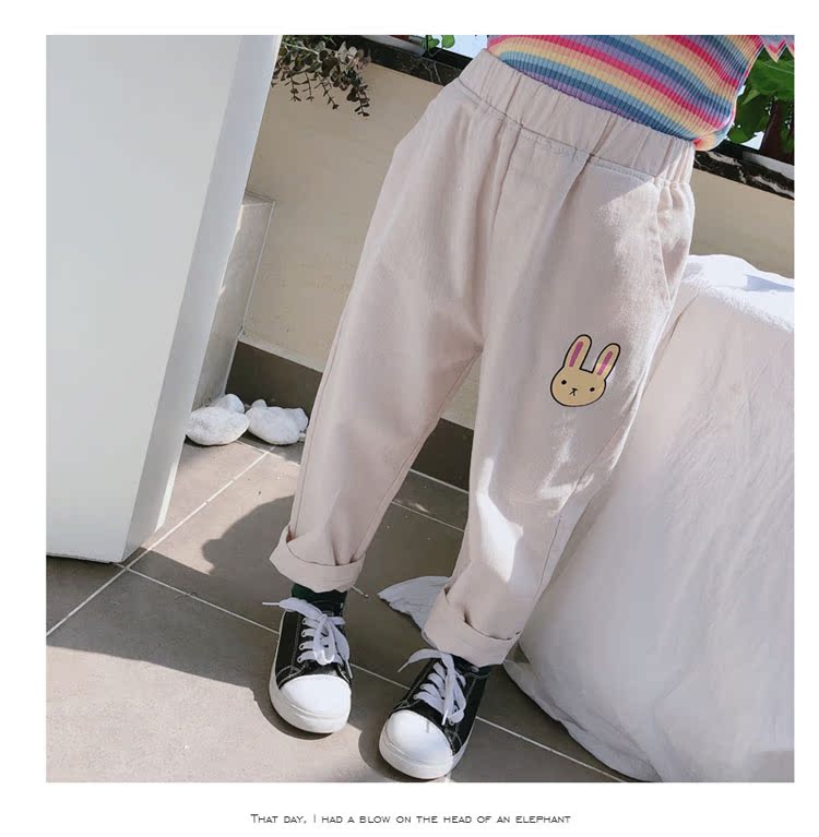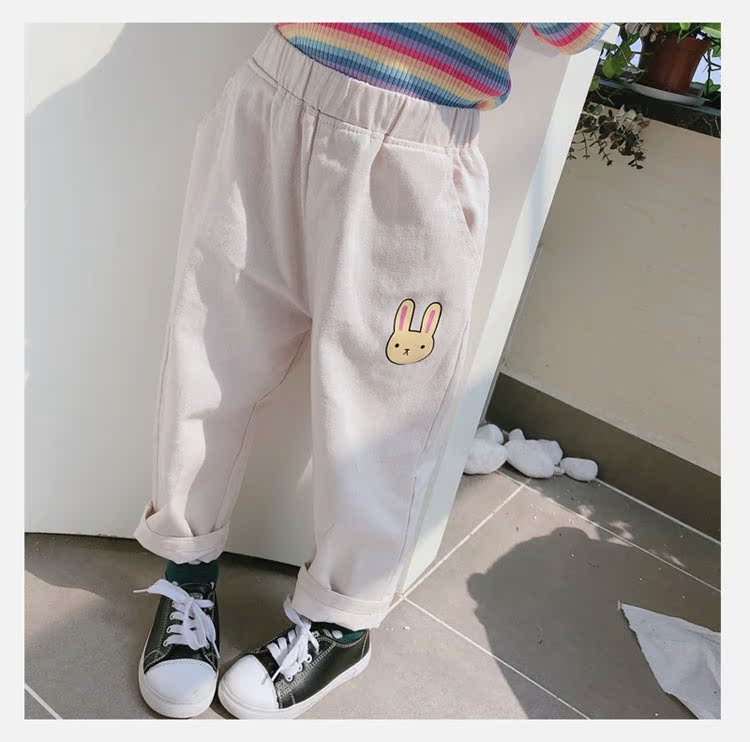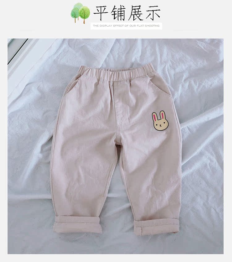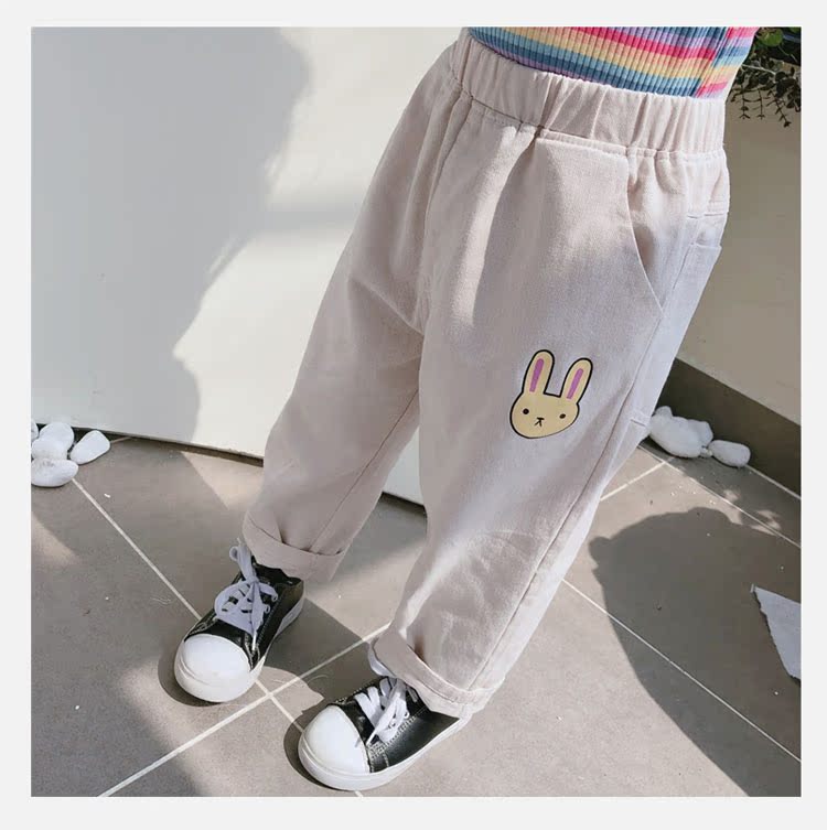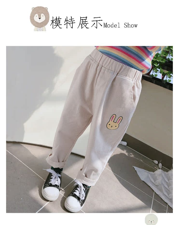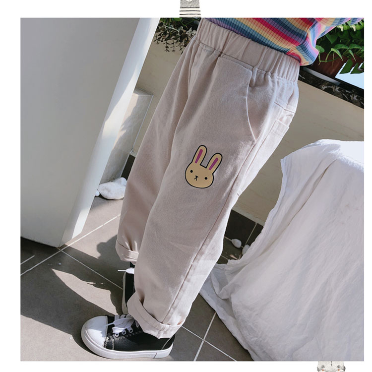 2019春秋新款 男女童可愛卡通圖案褲子 兒童舒適百搭松緊腰休閑褲1入
