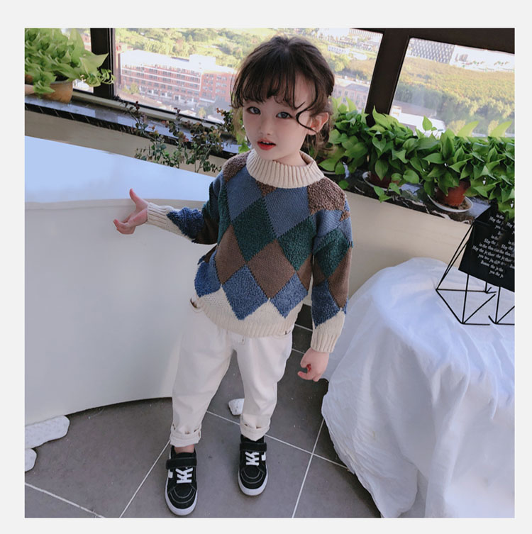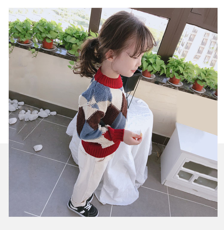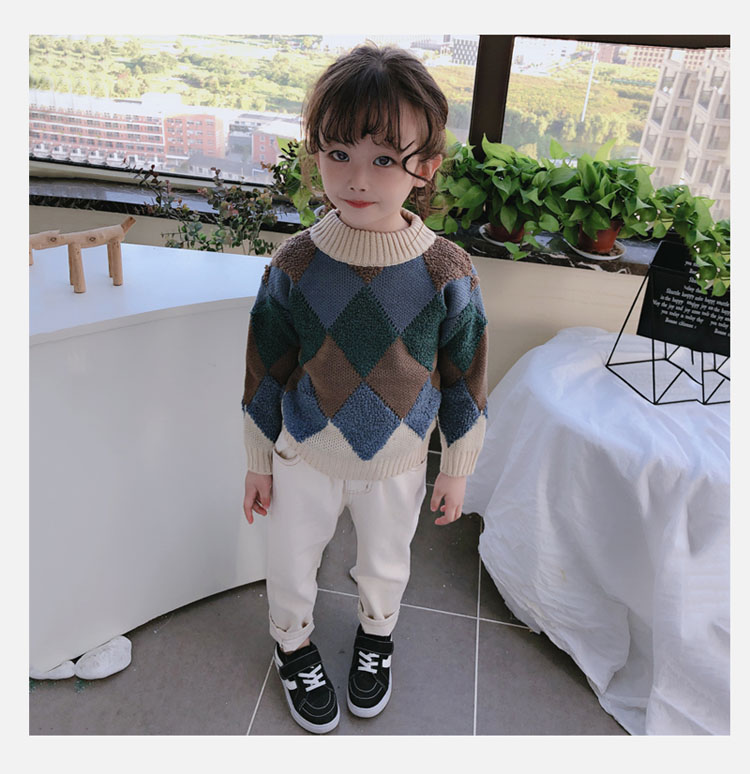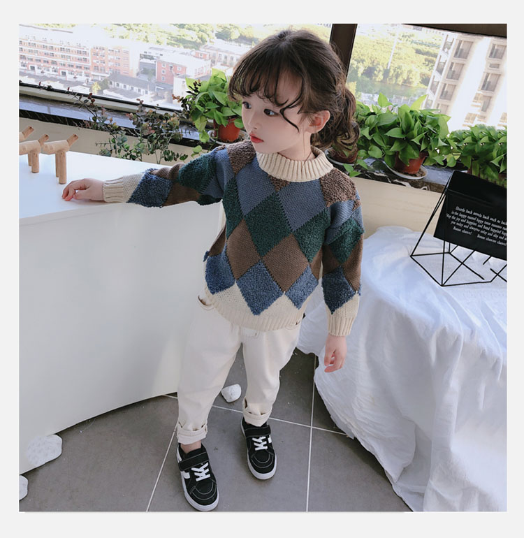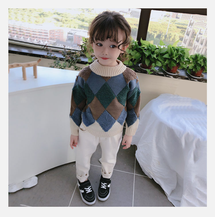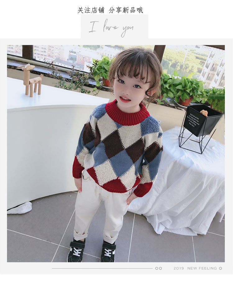 2019春秋季新款 中小童時尚舒適兒童毛衣 男女童寬松長袖套頭上衣1入