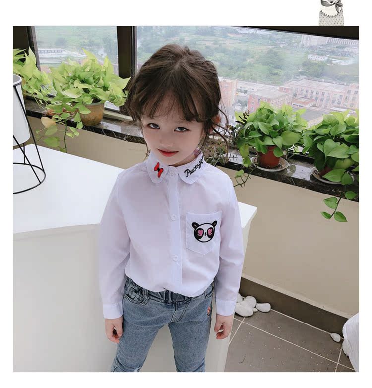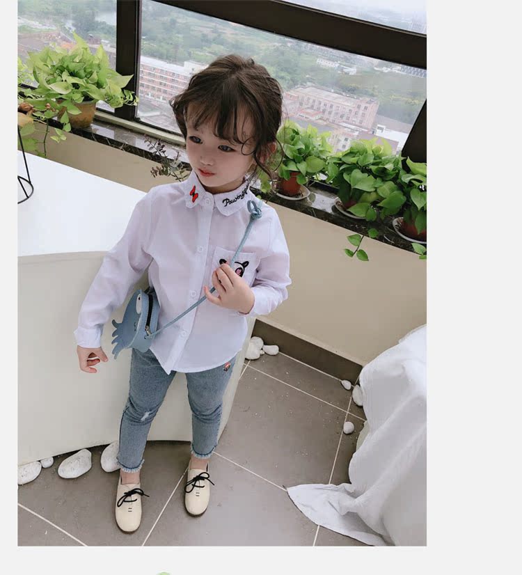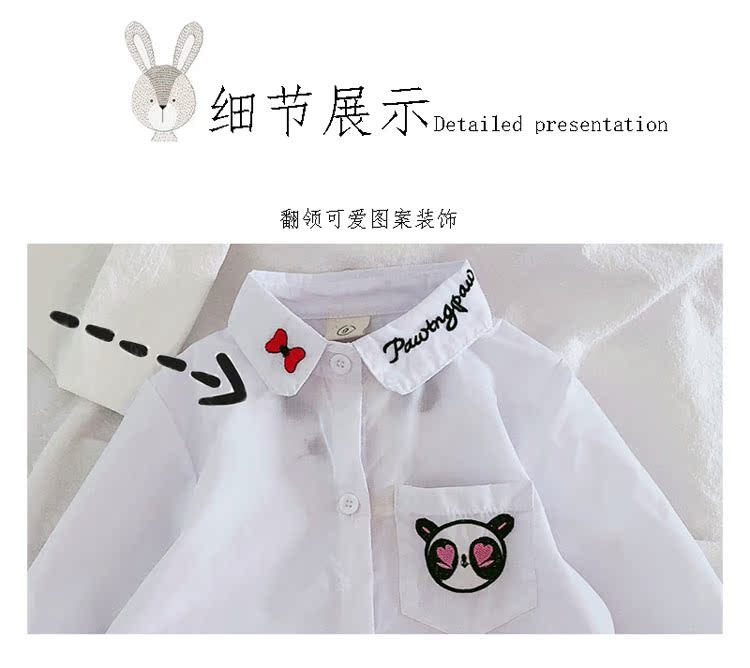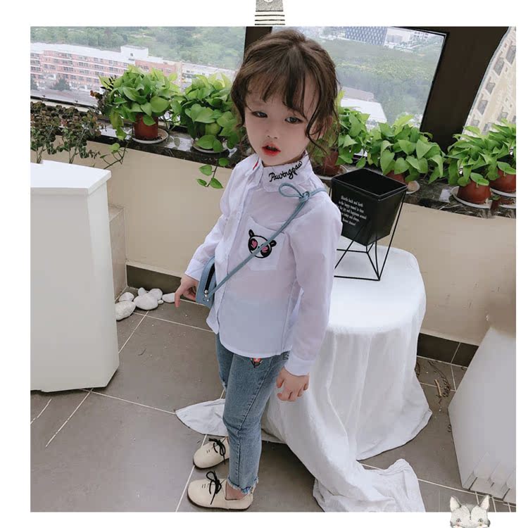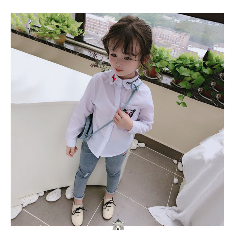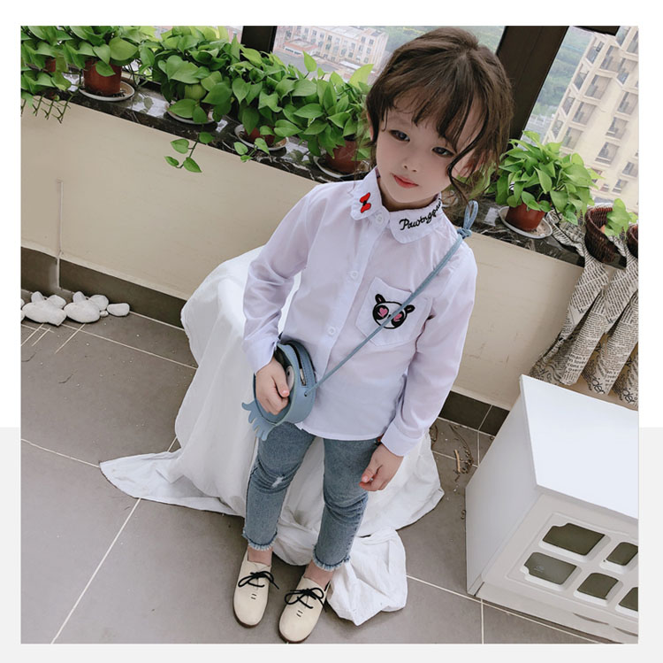 2019春秋季新款 女童氣質舒適翻領襯衫 兒童可愛甜美卡通圖案上衣1入