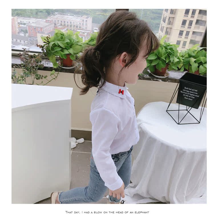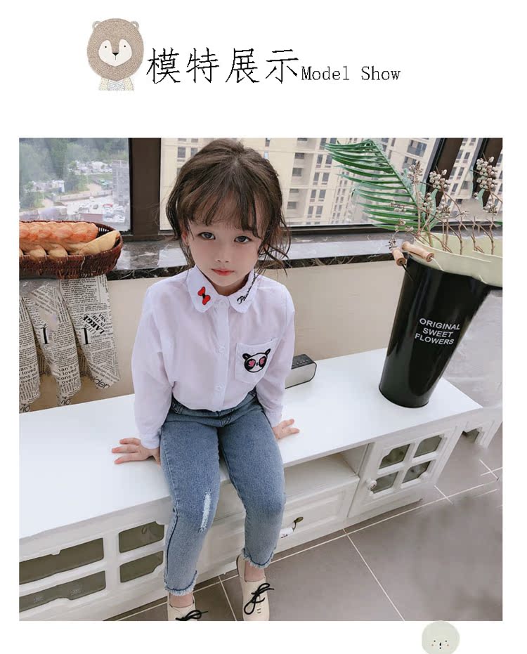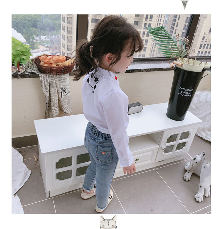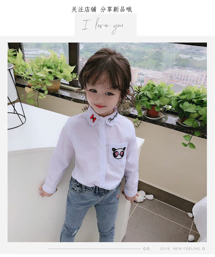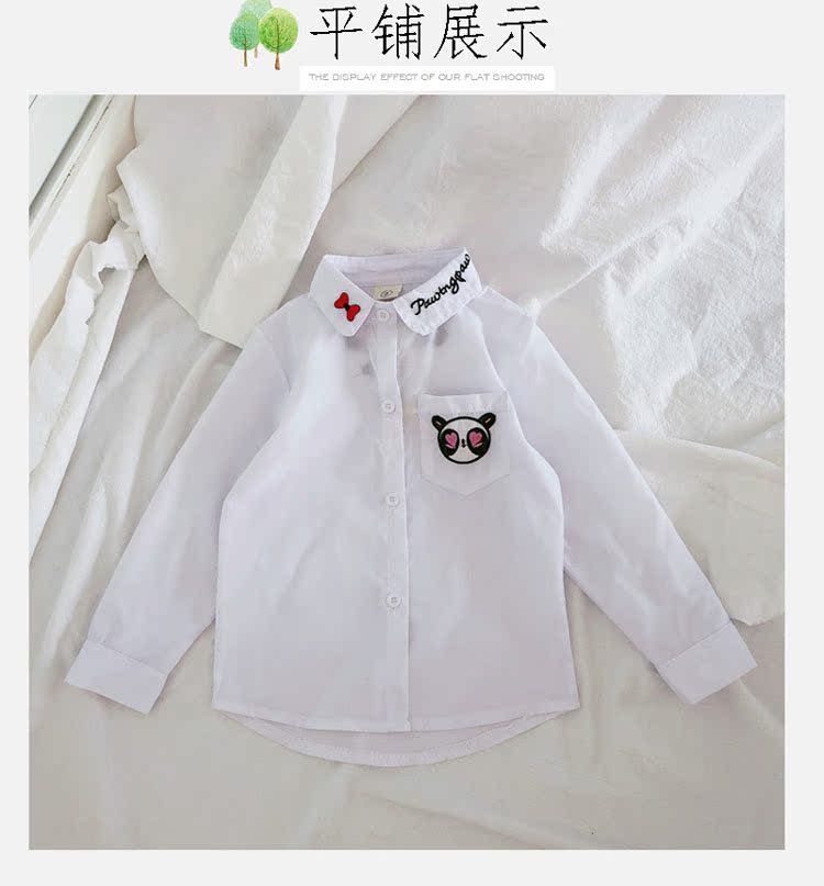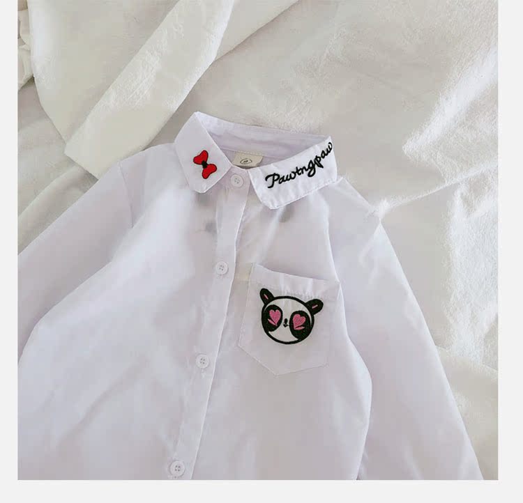 2019春秋季新款 女童氣質舒適翻領襯衫 兒童可愛甜美卡通圖案上衣1入