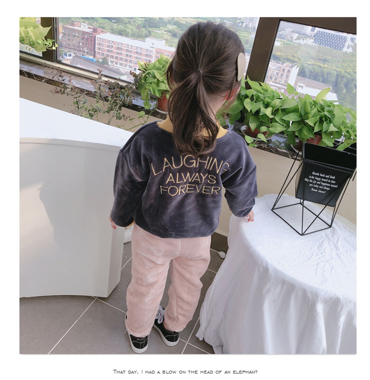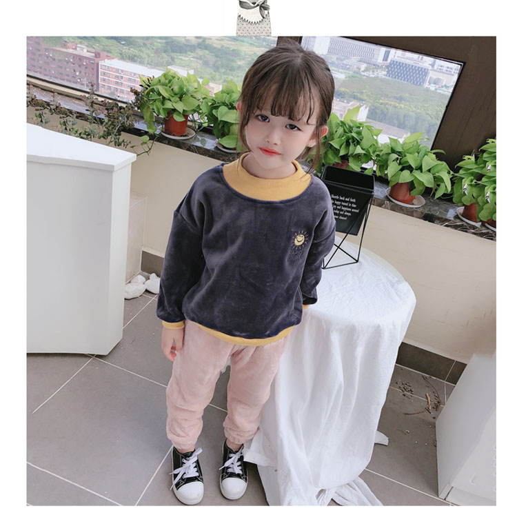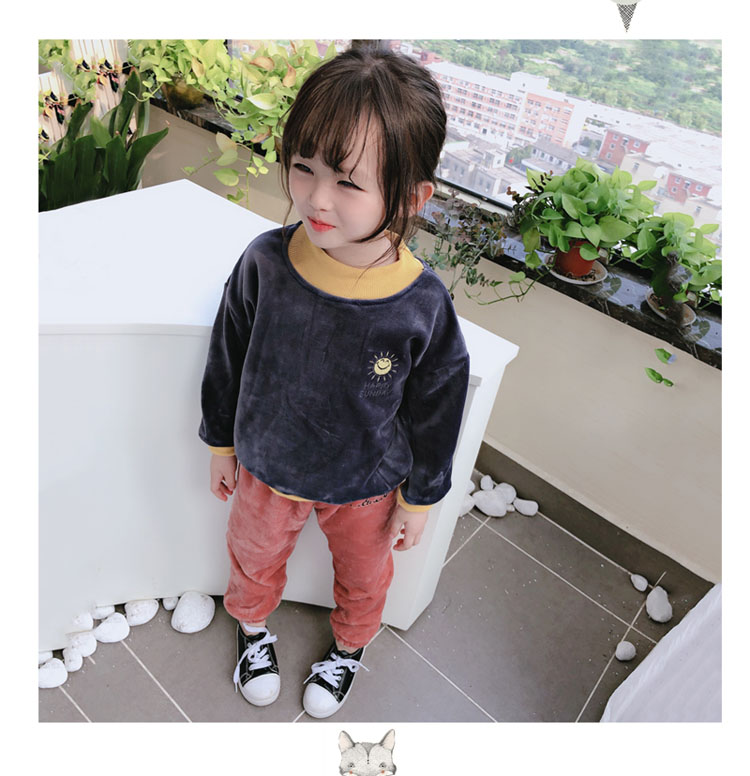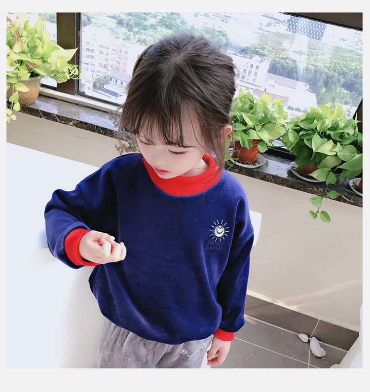 2019冬季新款寶寶撞色衛衣兒童T恤衫 太陽字母刺繡男女童加絨衛衣1入