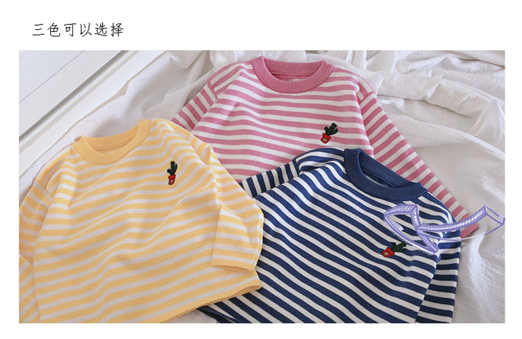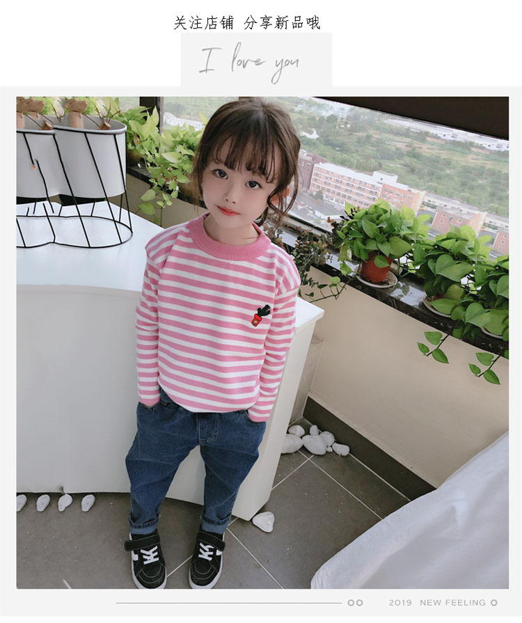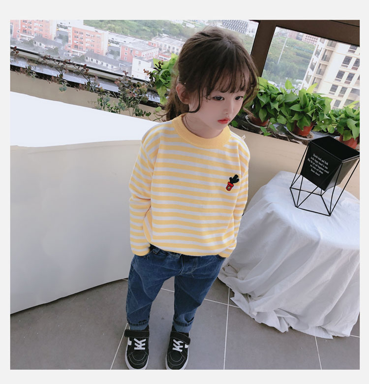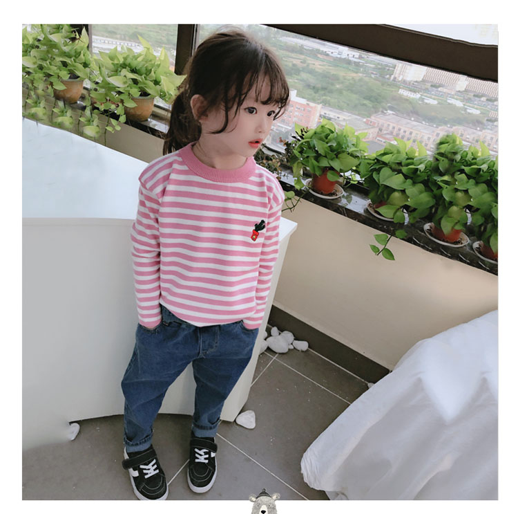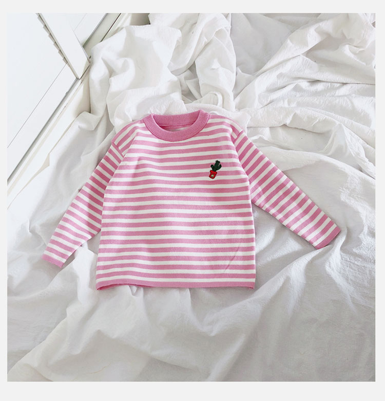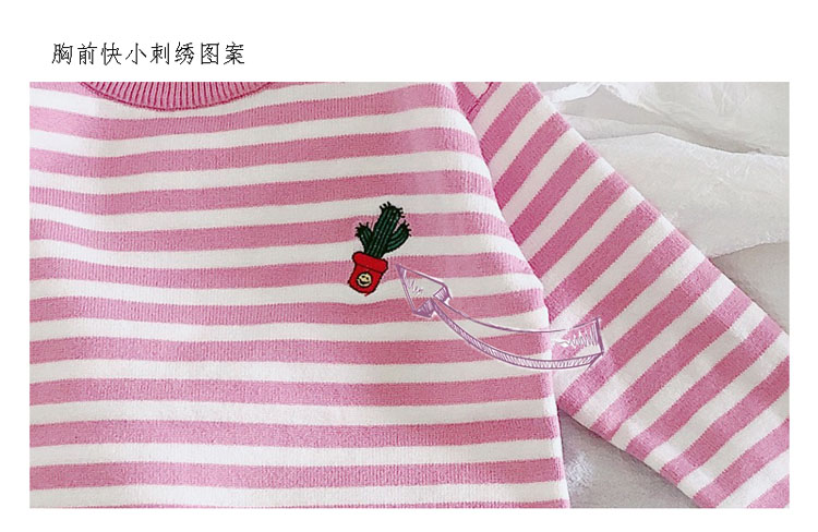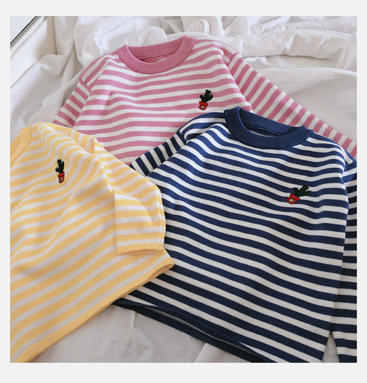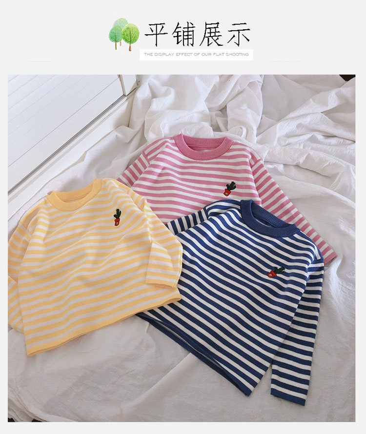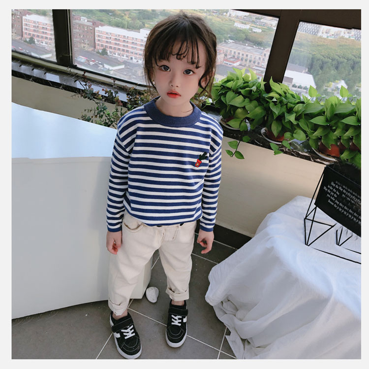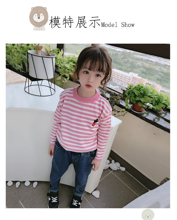 2019春秋季新款 兒童舒適條紋針織衫 男女童可愛甜美刺繡長袖毛衣1入