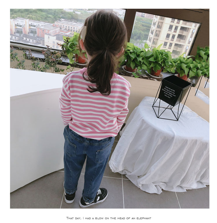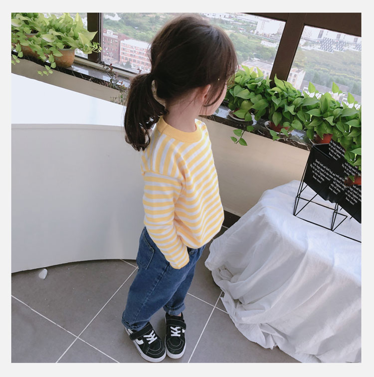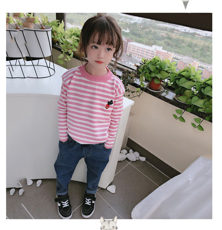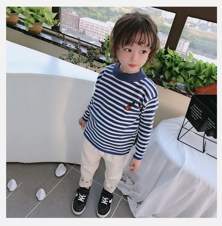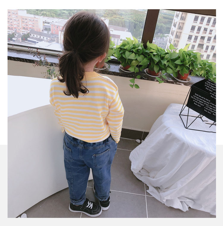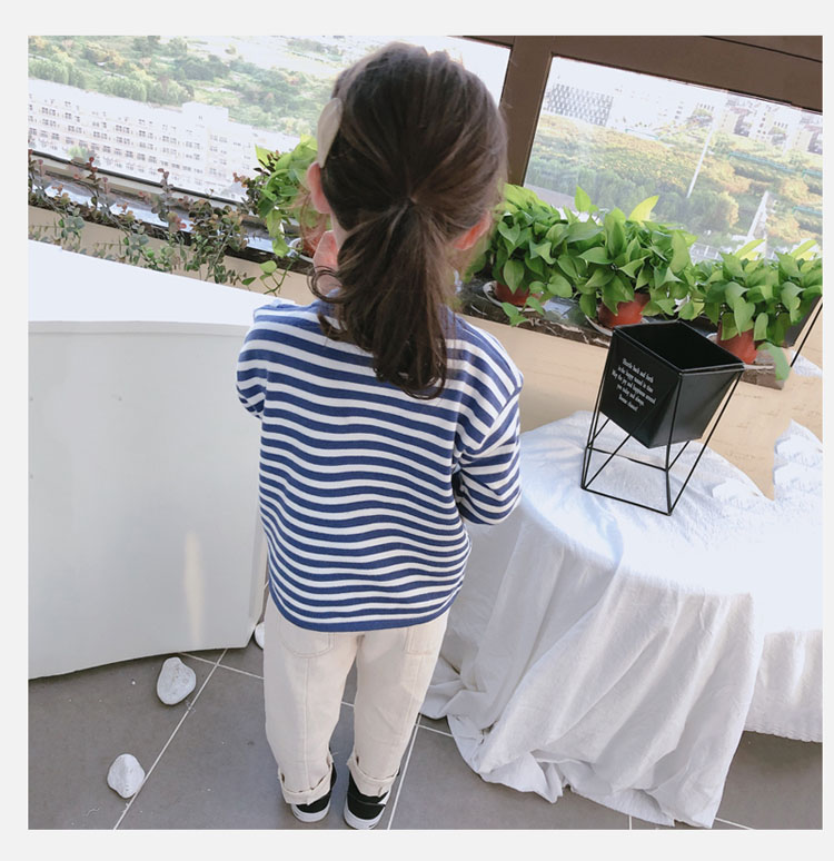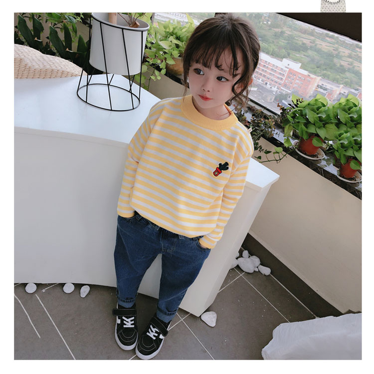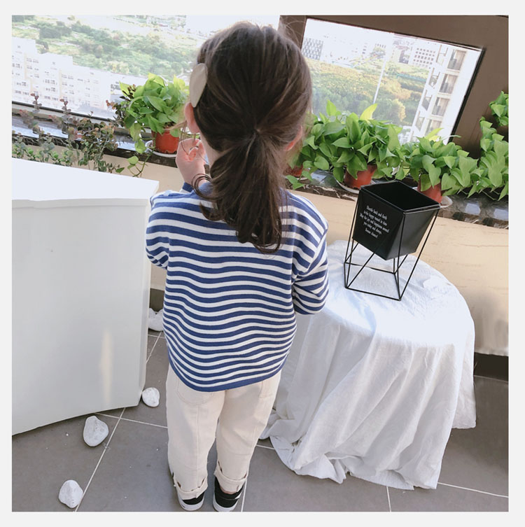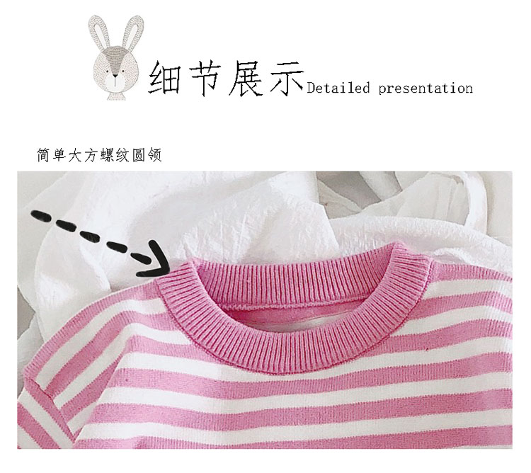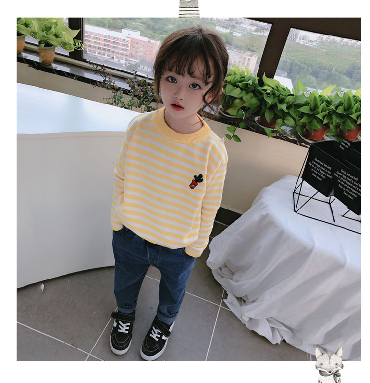 2019春秋季新款 兒童舒適條紋針織衫 男女童可愛甜美刺繡長袖毛衣1入