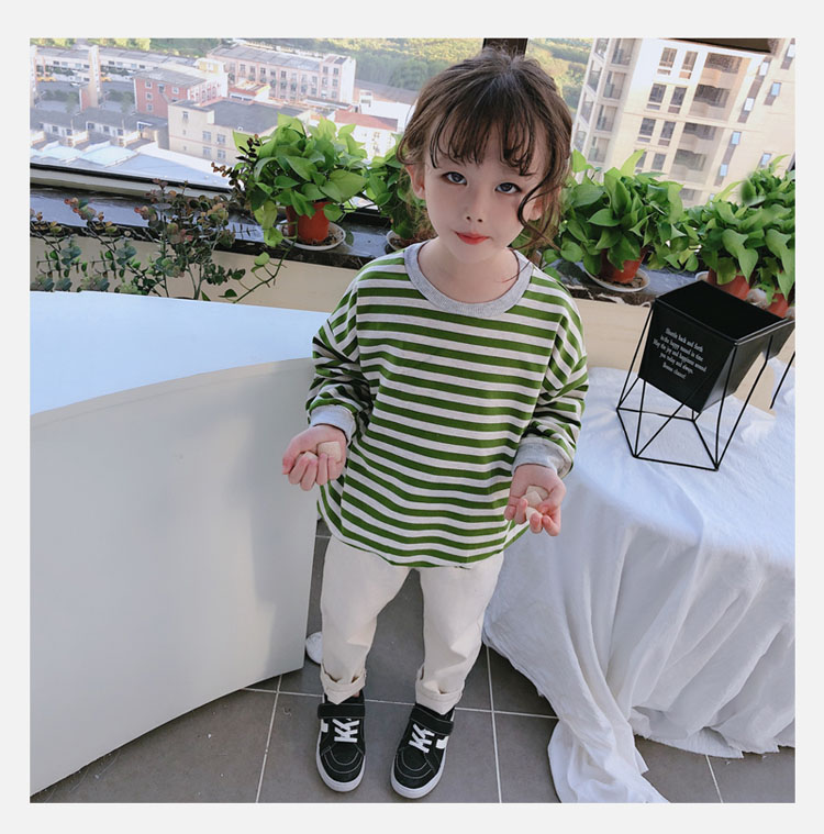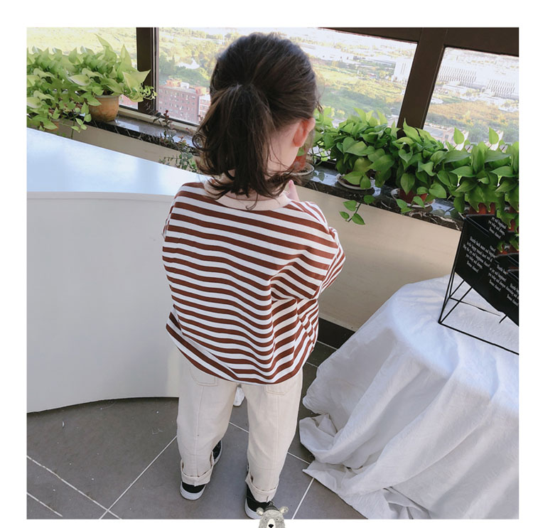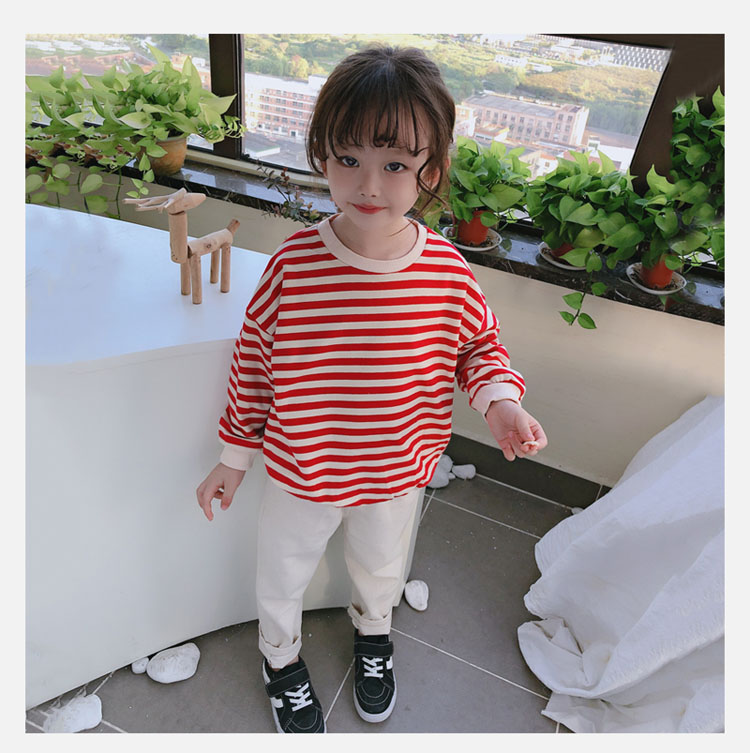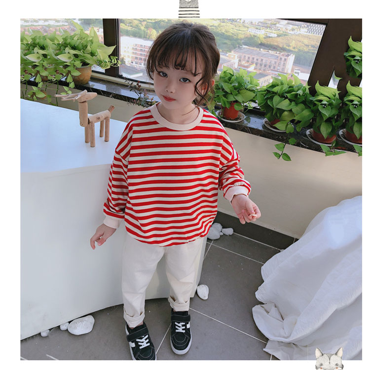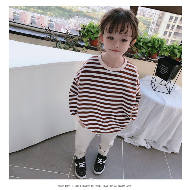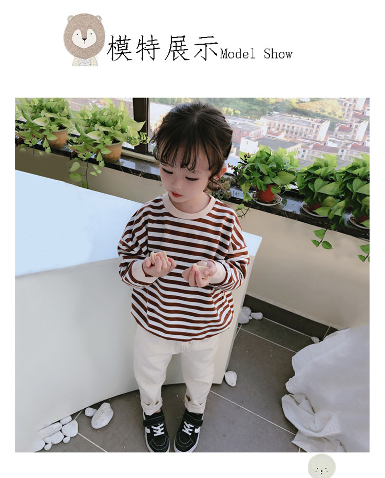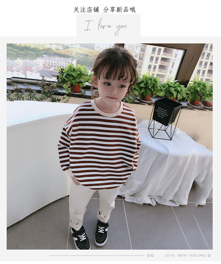 2019春秋季新款 男女童可愛條紋T恤 中小童寬松大方圓領套頭上衣1入