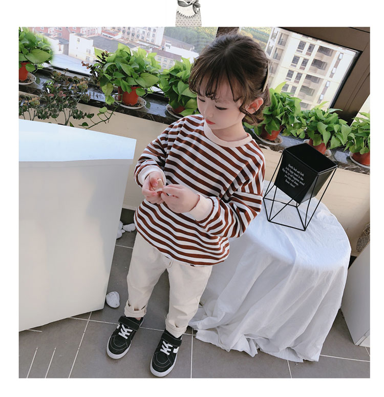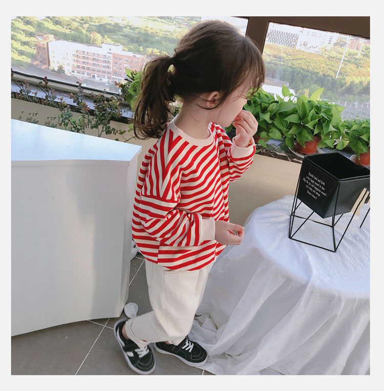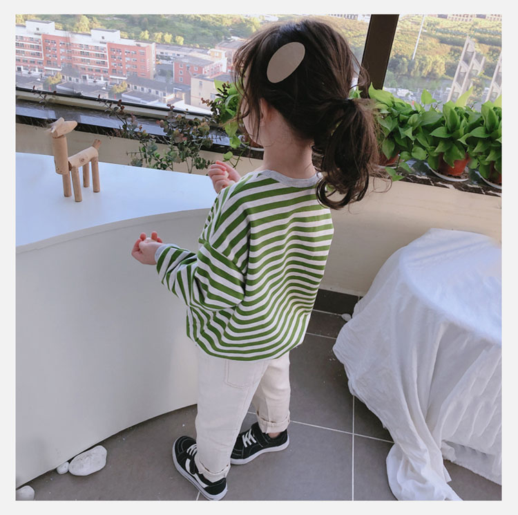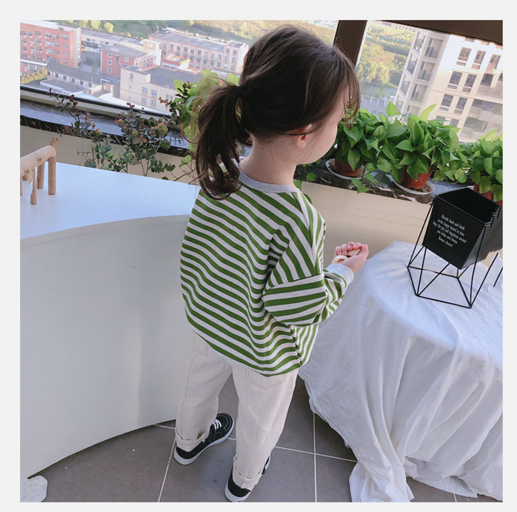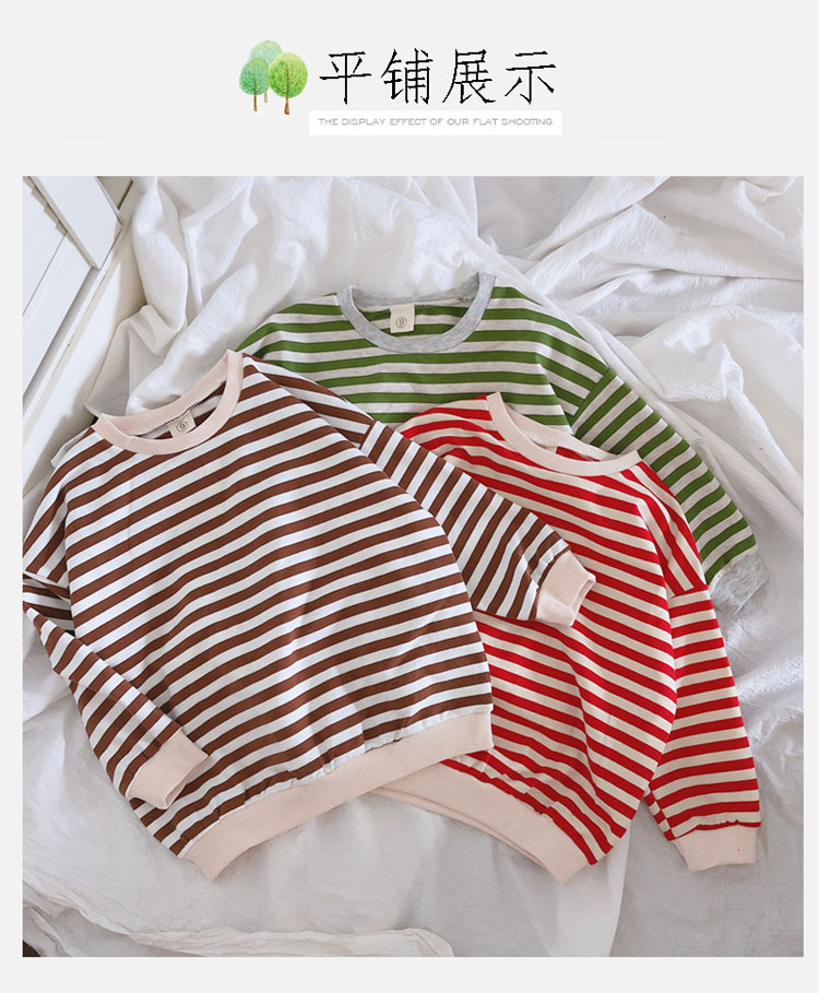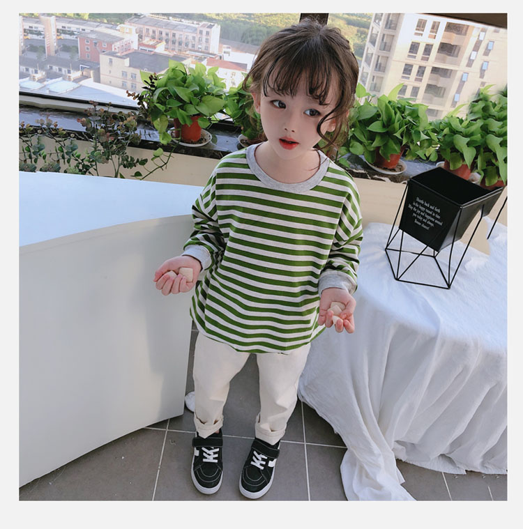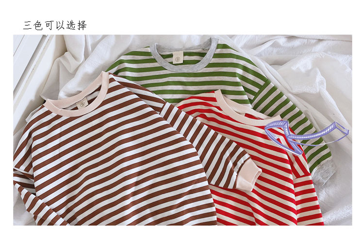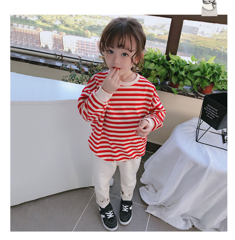 2019春秋季新款 男女童可愛條紋T恤 中小童寬松大方圓領套頭上衣1入