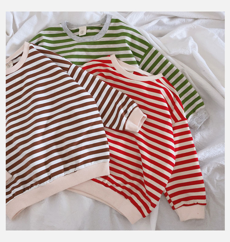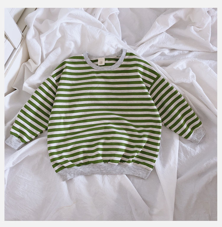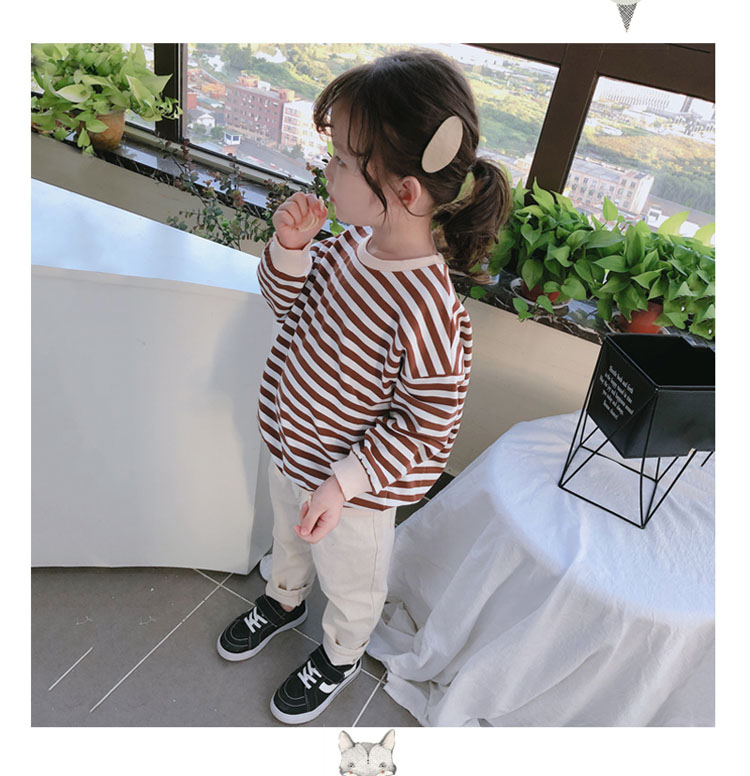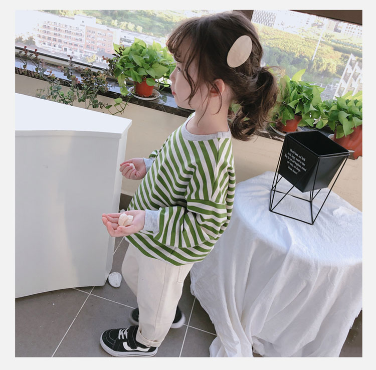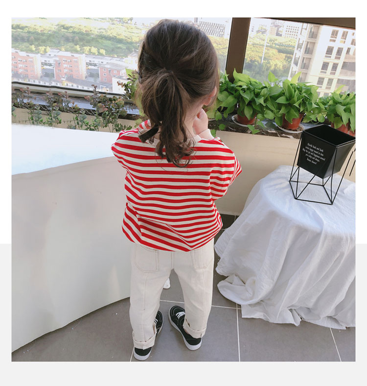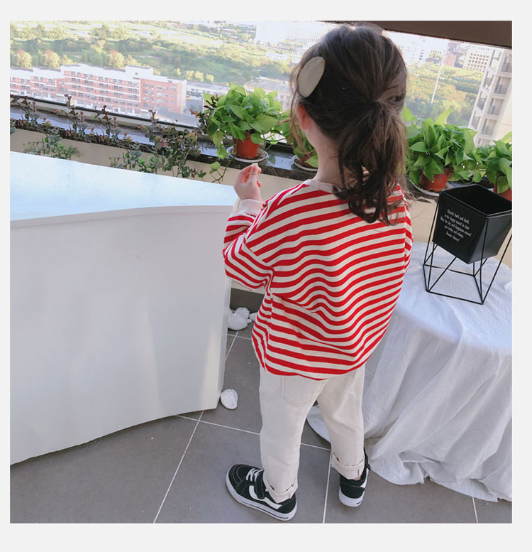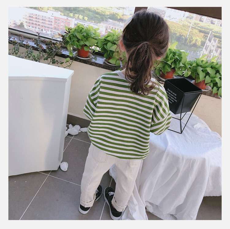 2019春秋季新款 男女童可愛條紋T恤 中小童寬松大方圓領套頭上衣1入