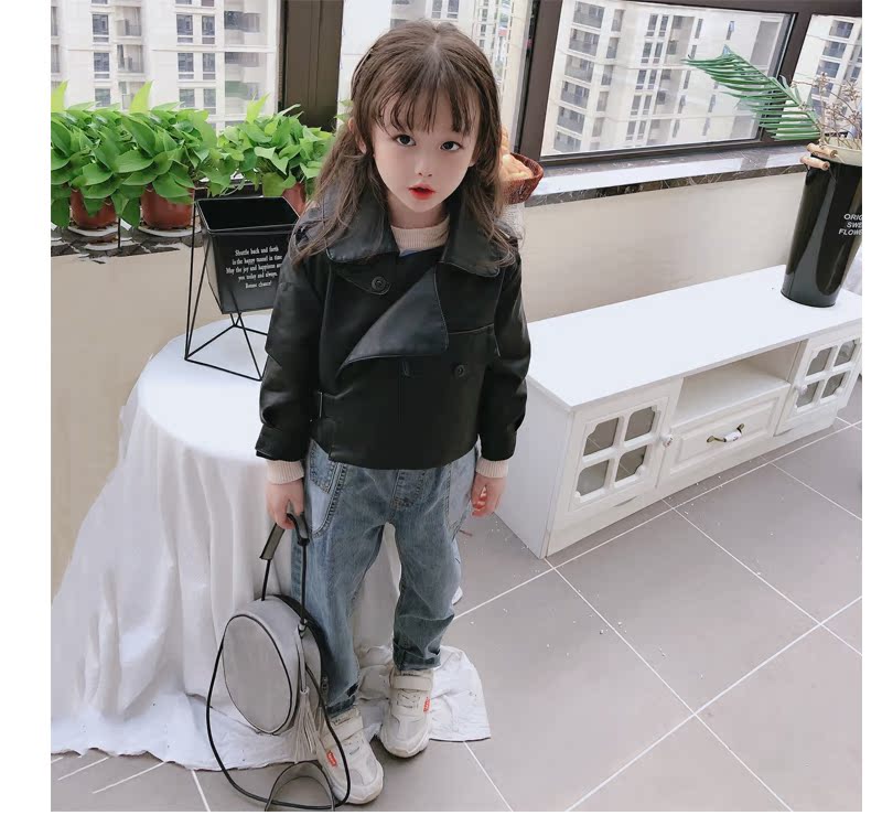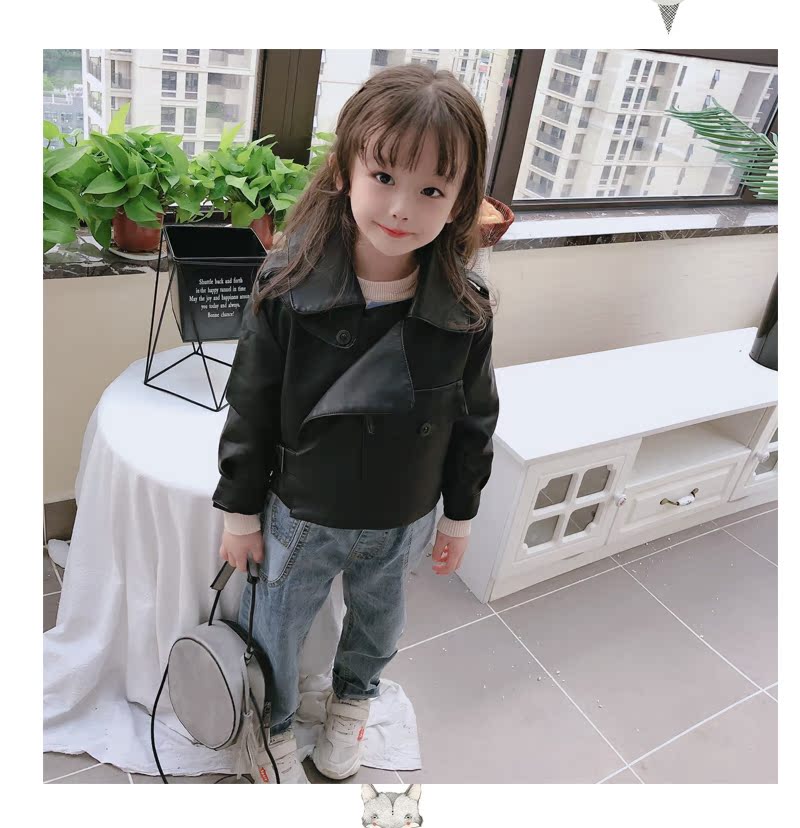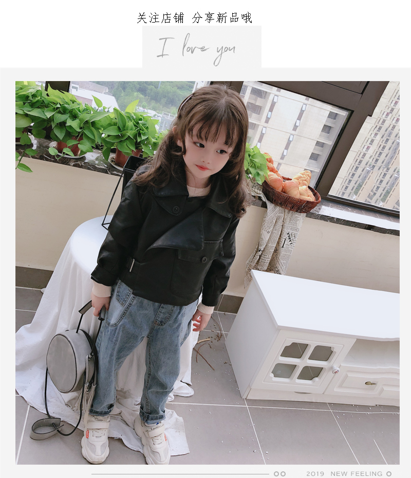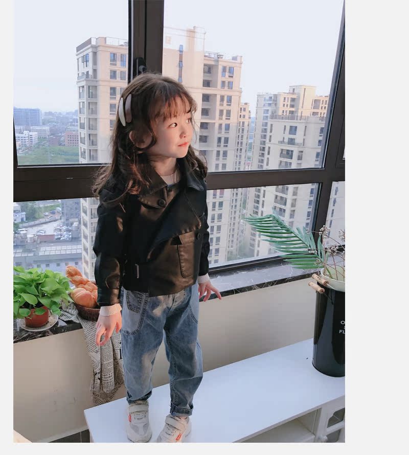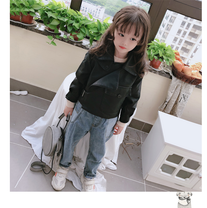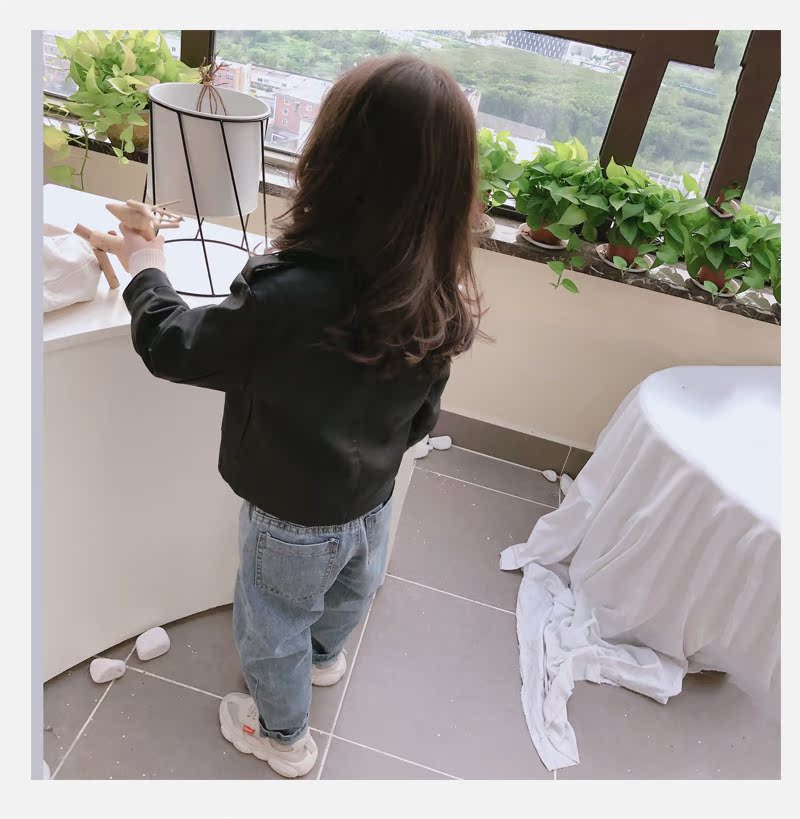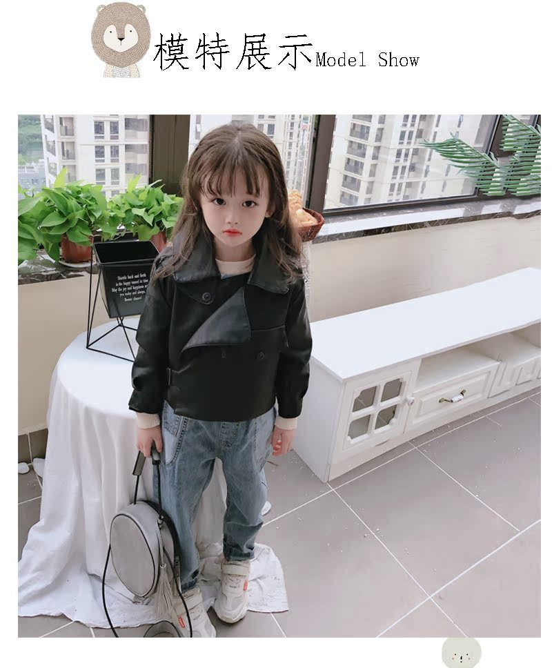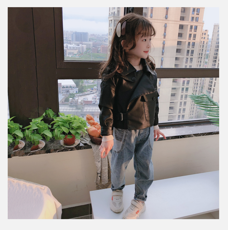 2019春秋季新款 男女童帥氣百搭皮衣外套 中小童舒適寬松翻領上衣1入