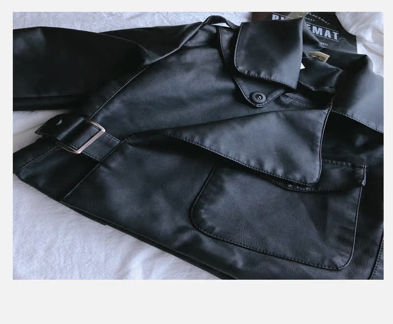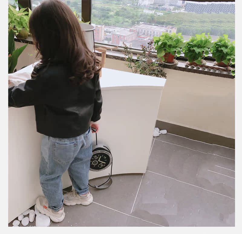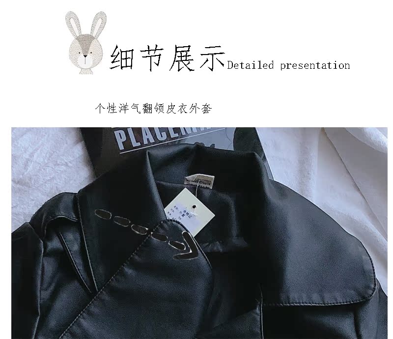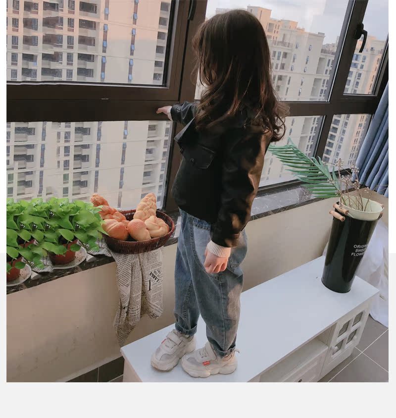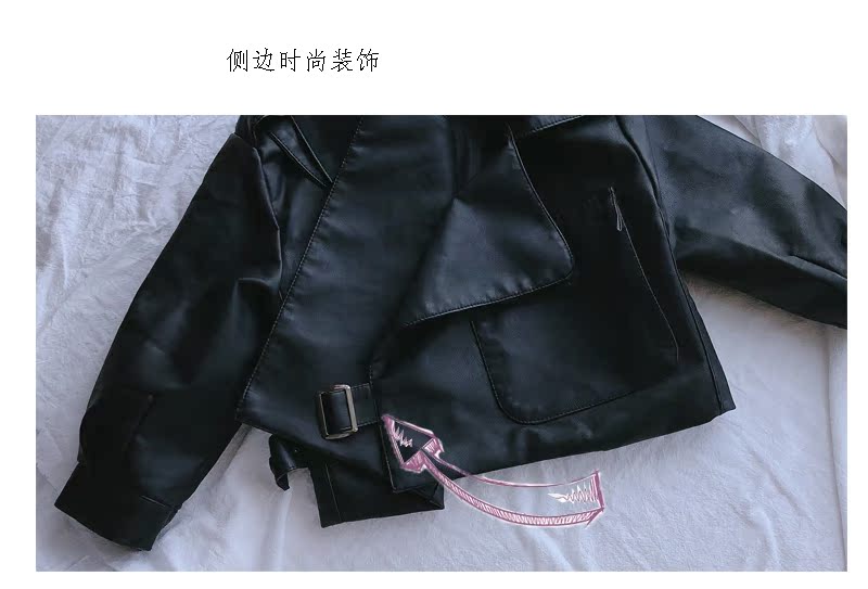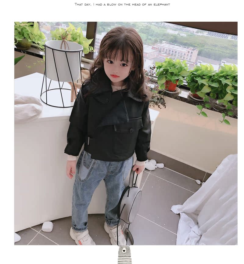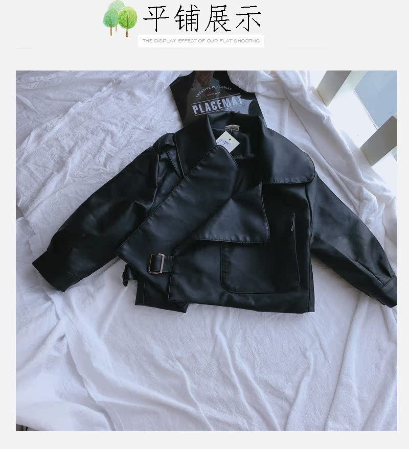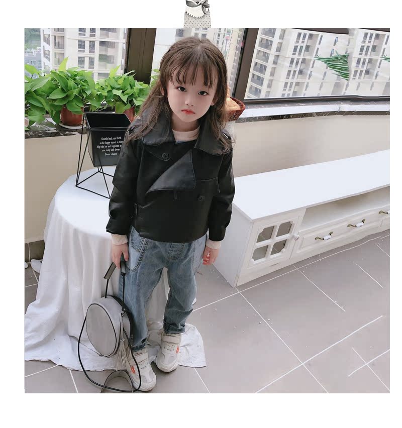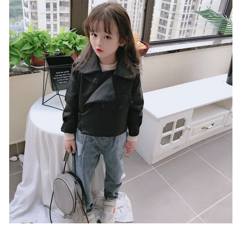 2019春秋季新款 男女童帥氣百搭皮衣外套 中小童舒適寬松翻領上衣1入