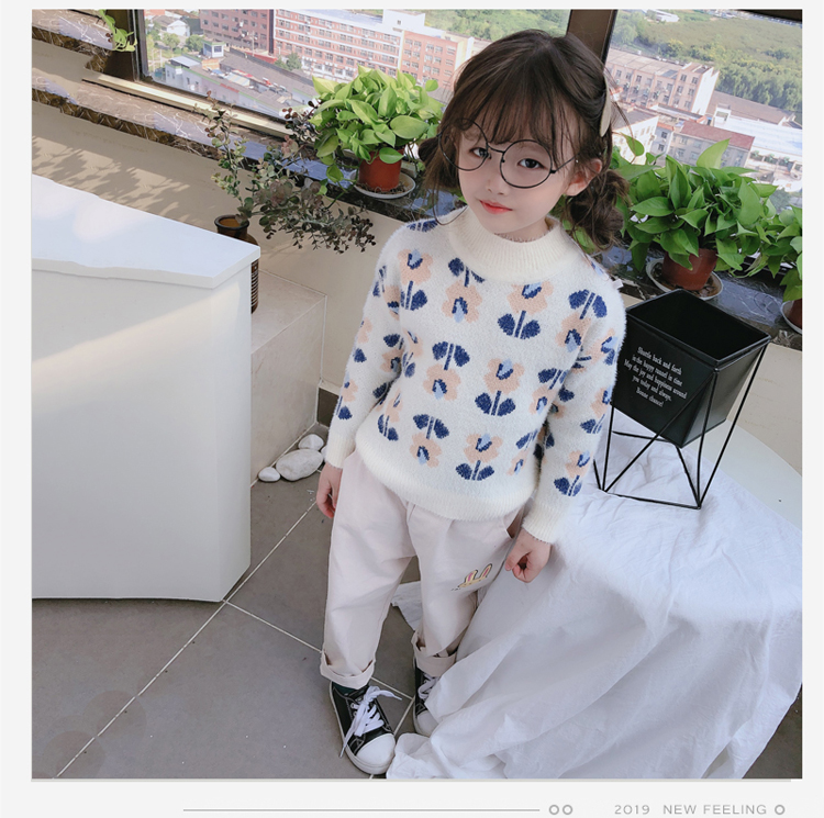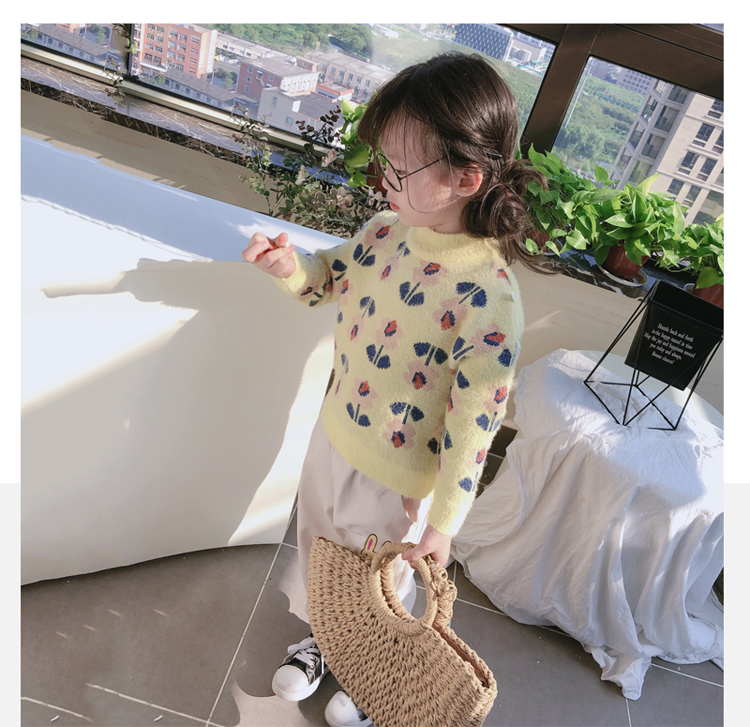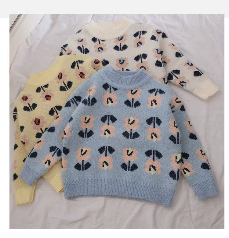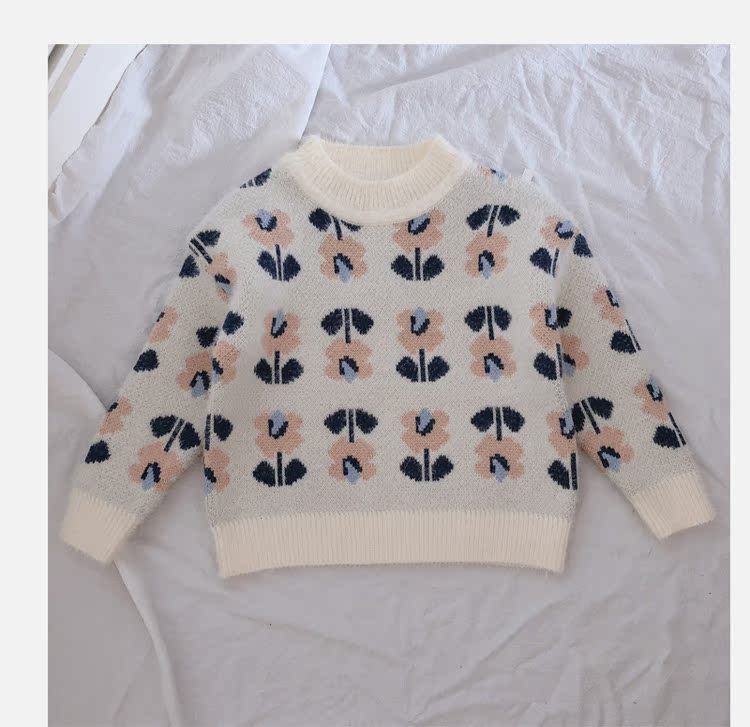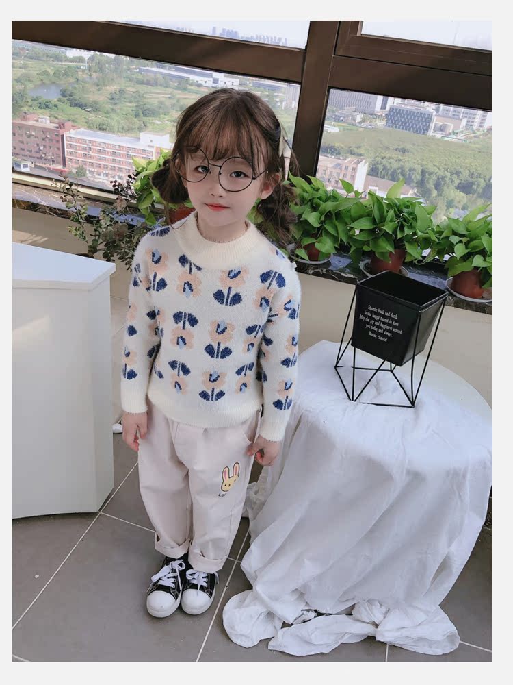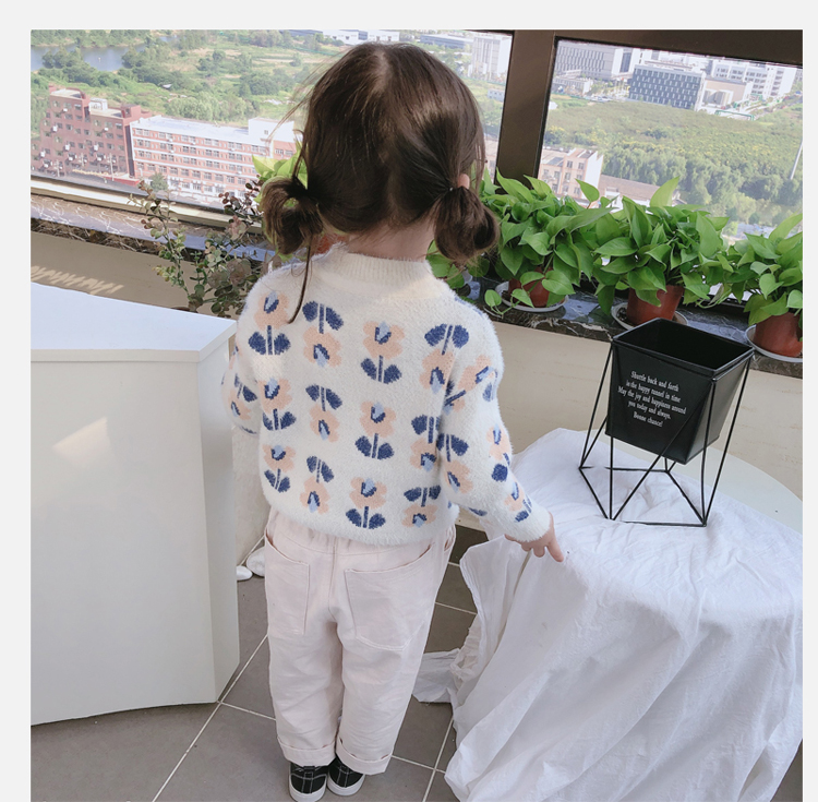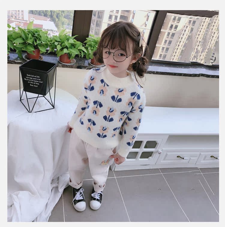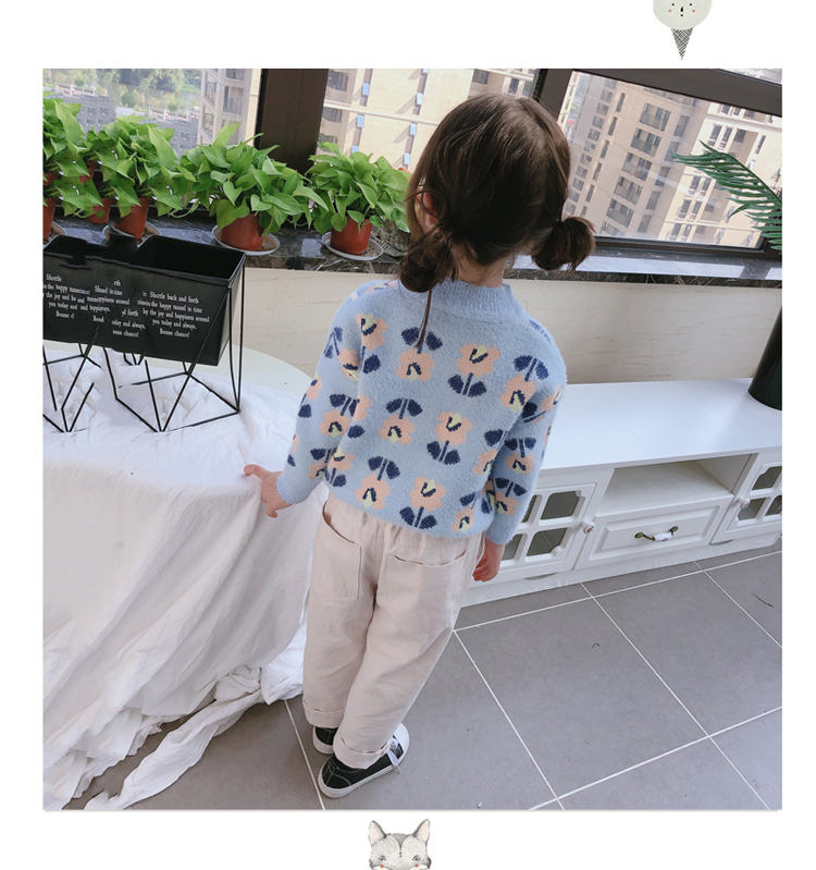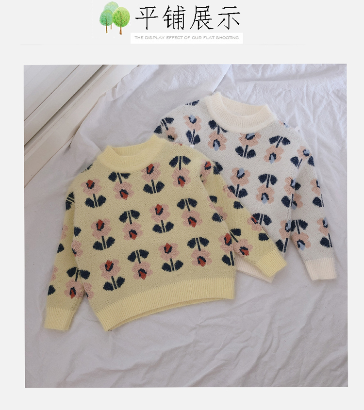 2019春秋季新款 女童可愛花朵圖案百搭針織衫 中小童氣質舒適毛衣1入