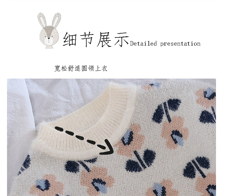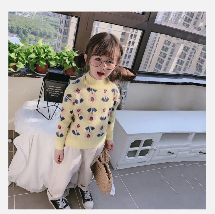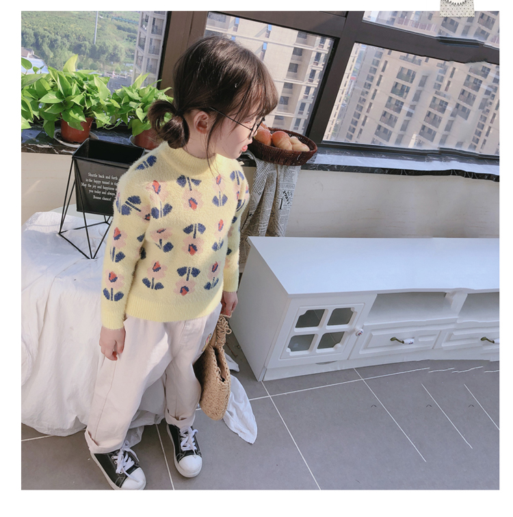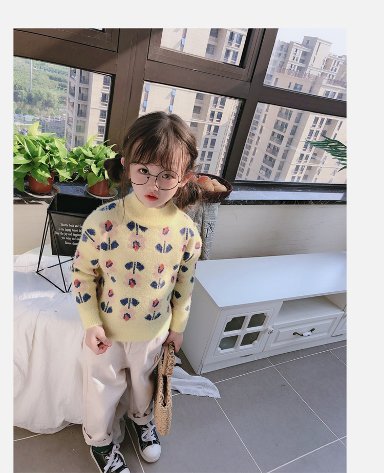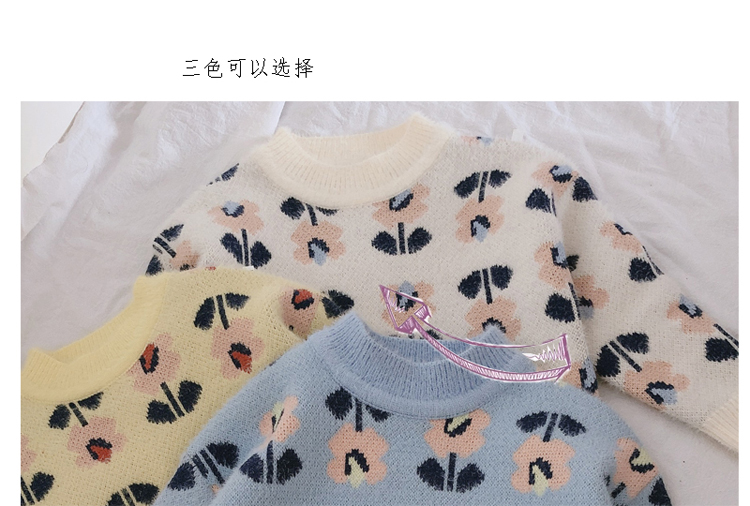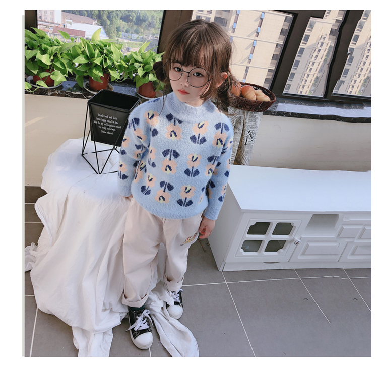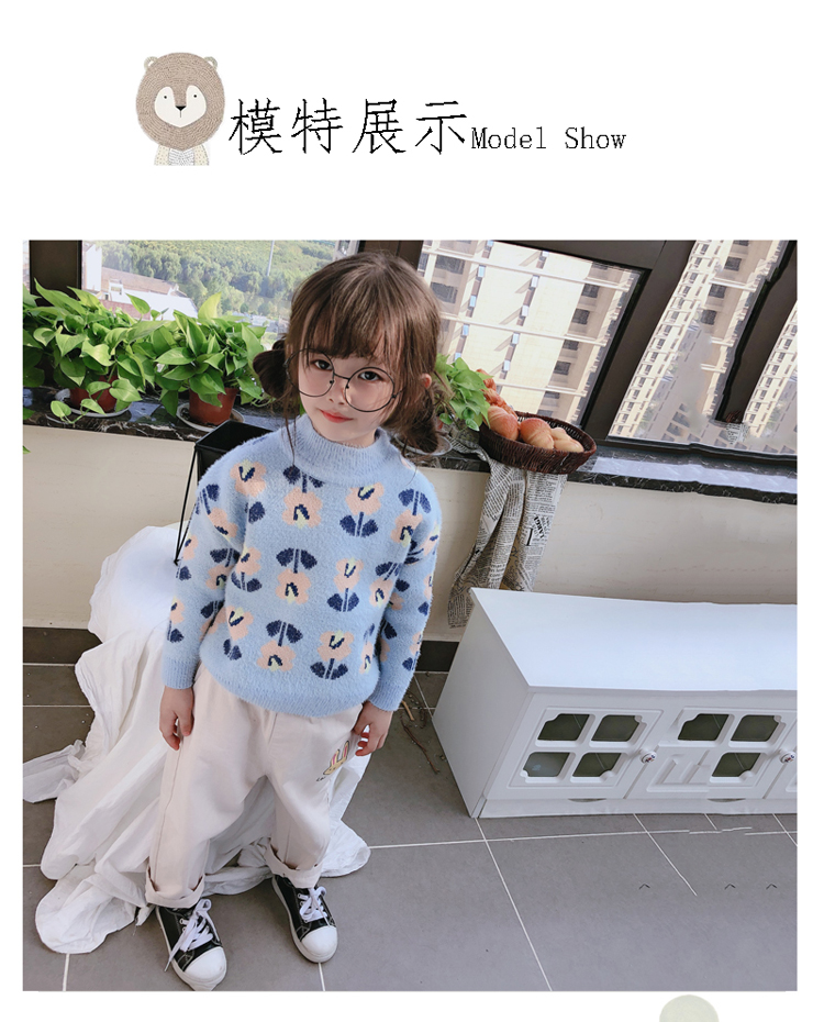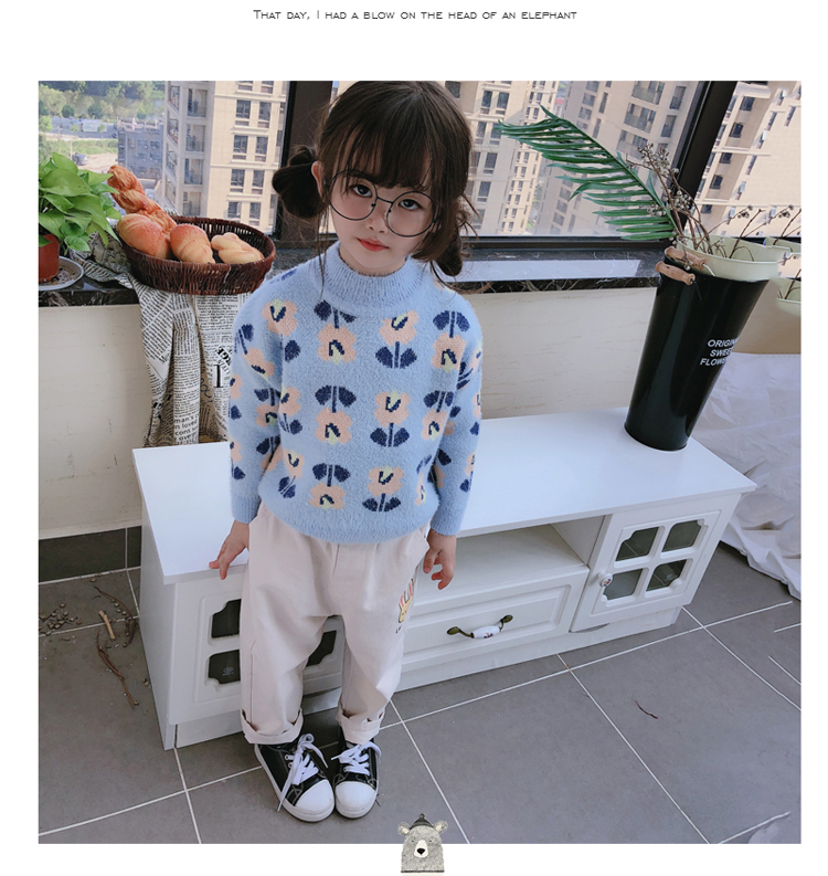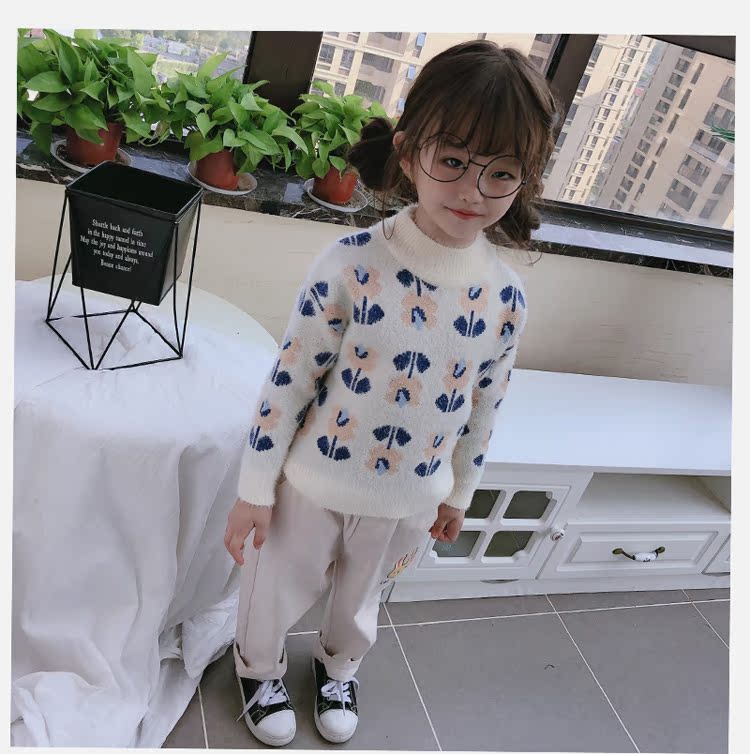 2019春秋季新款 女童可愛花朵圖案百搭針織衫 中小童氣質舒適毛衣1入