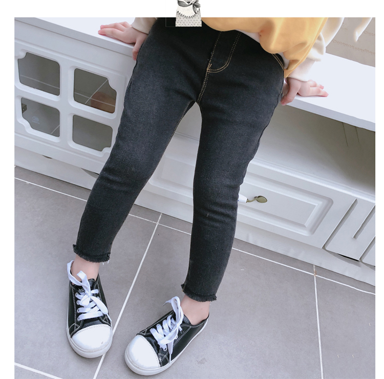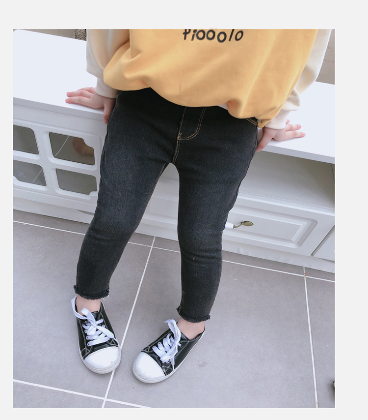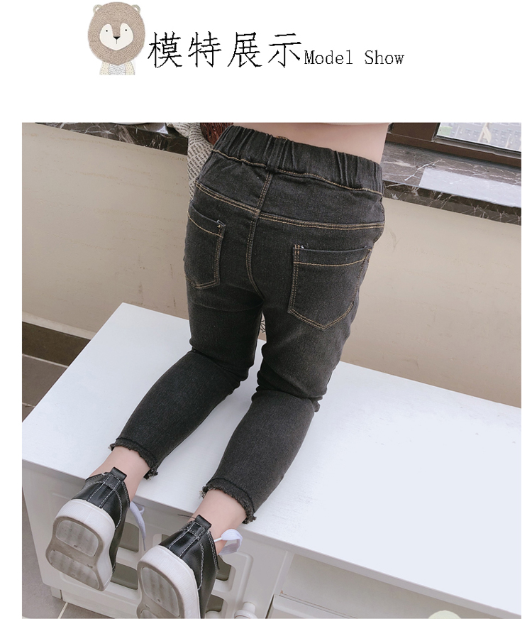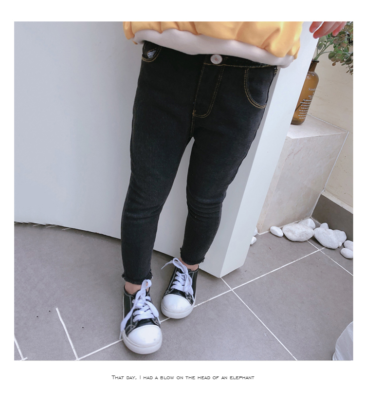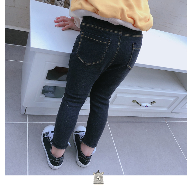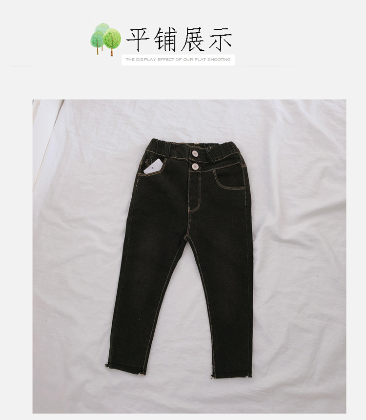 2019春秋季新款 女童舒適純色松緊腰褲子 中小童簡約修身牛仔褲1入