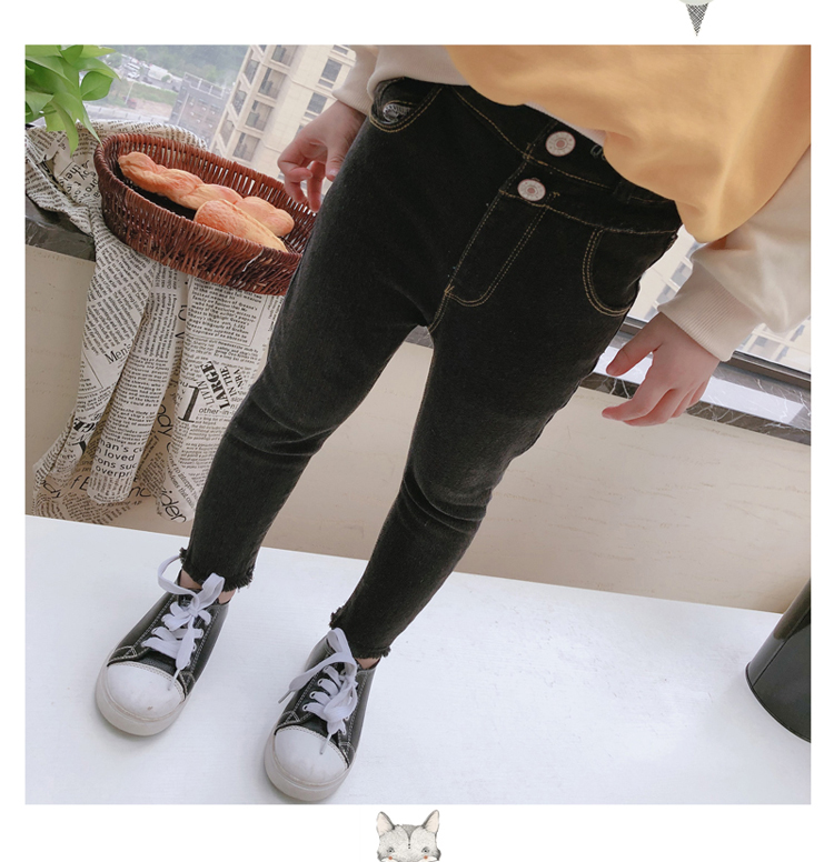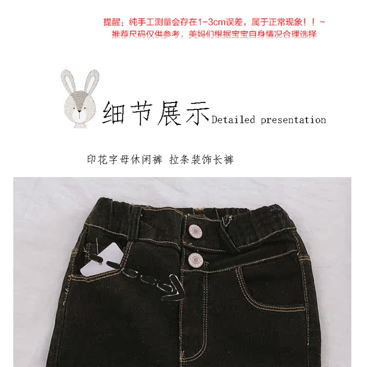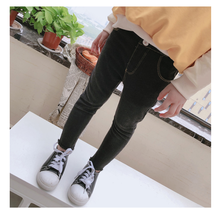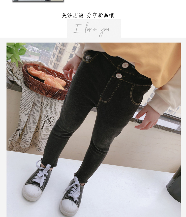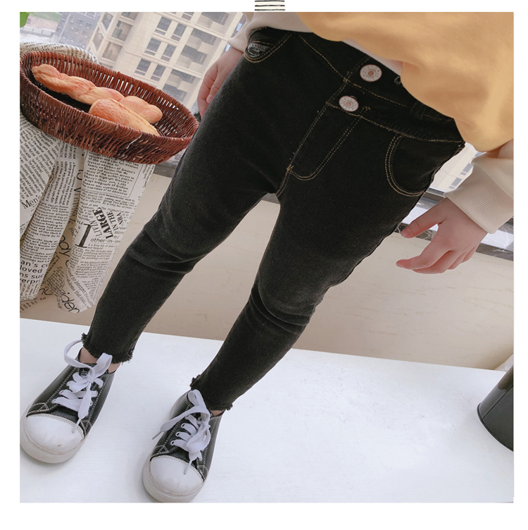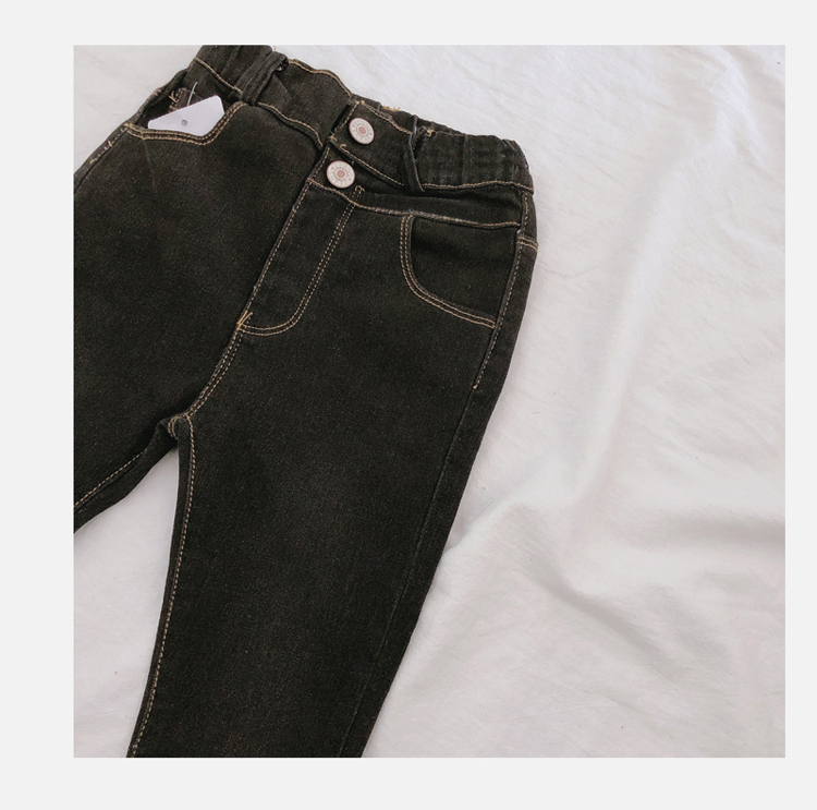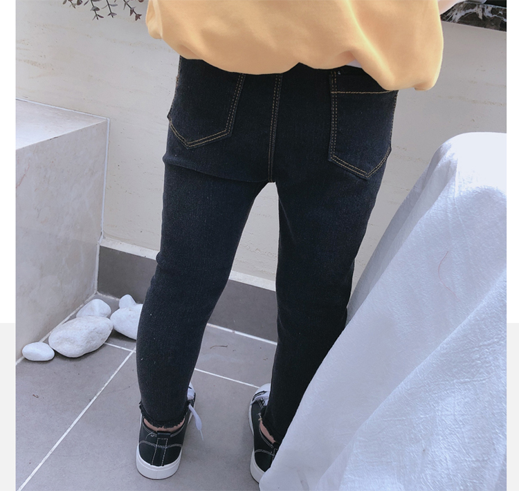 2019春秋季新款 女童舒適純色松緊腰褲子 中小童簡約修身牛仔褲1入