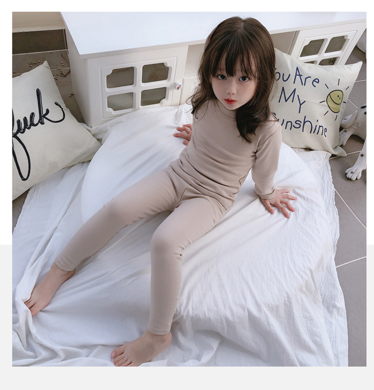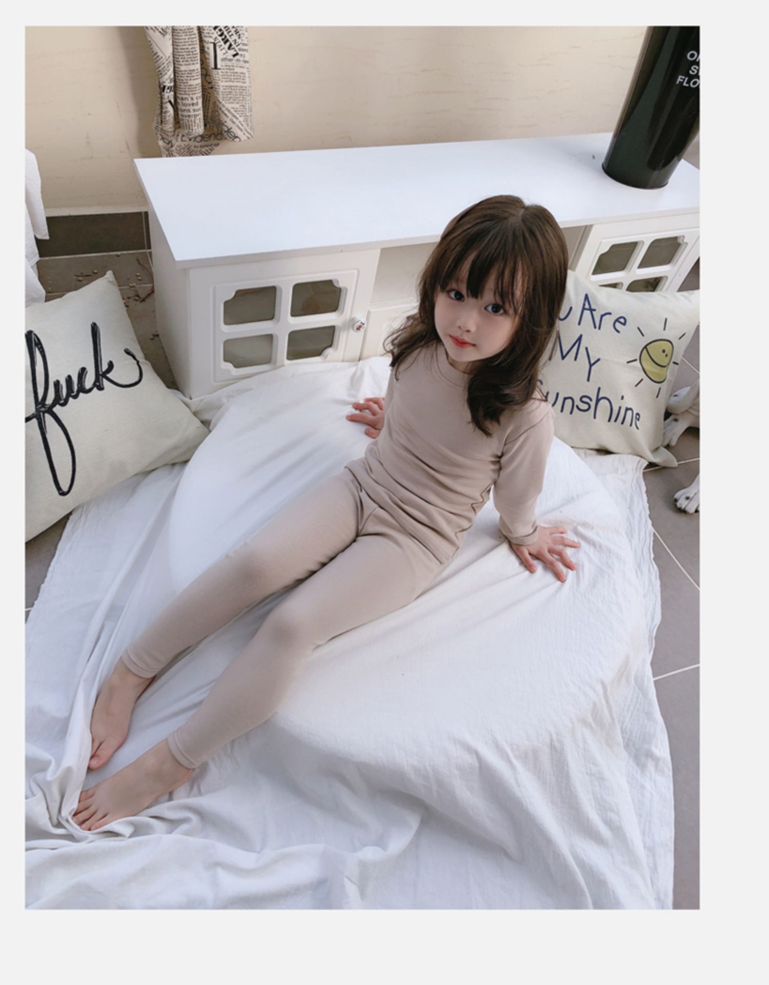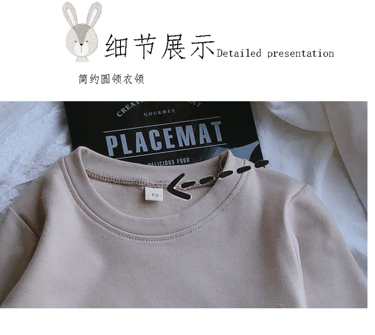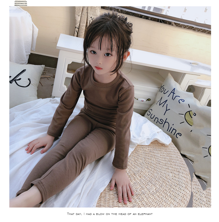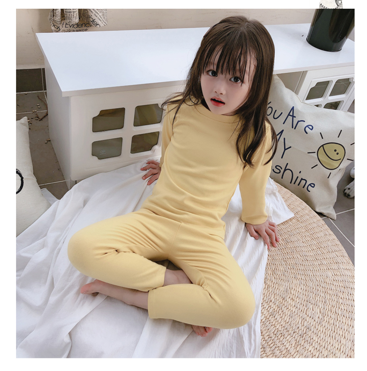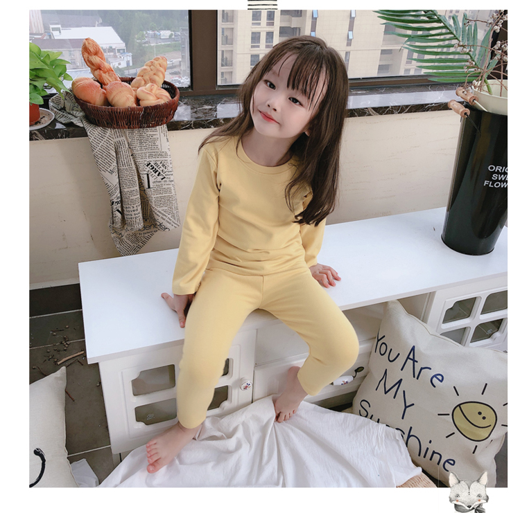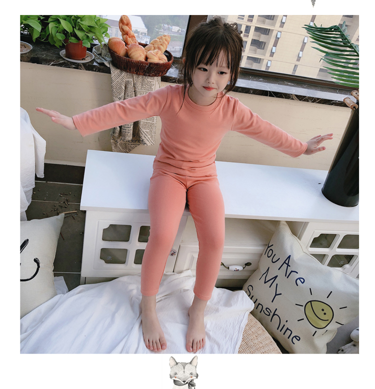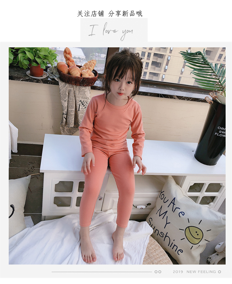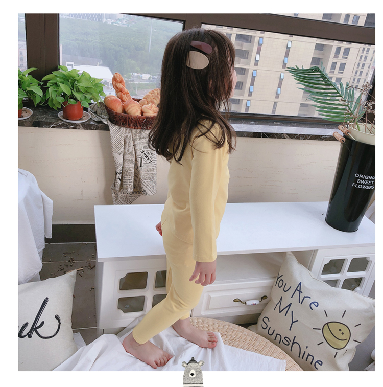 2019春秋季新款 兒童睡衣舒適圓領純色上衣+褲子女童家居服套裝1入