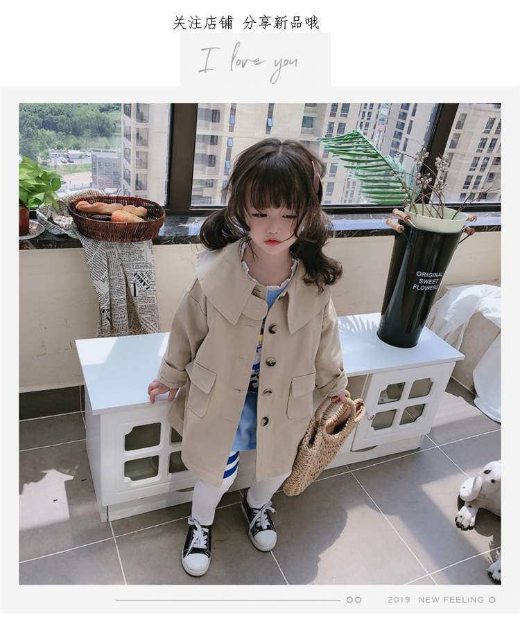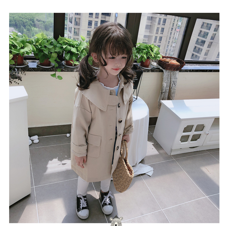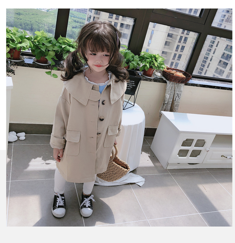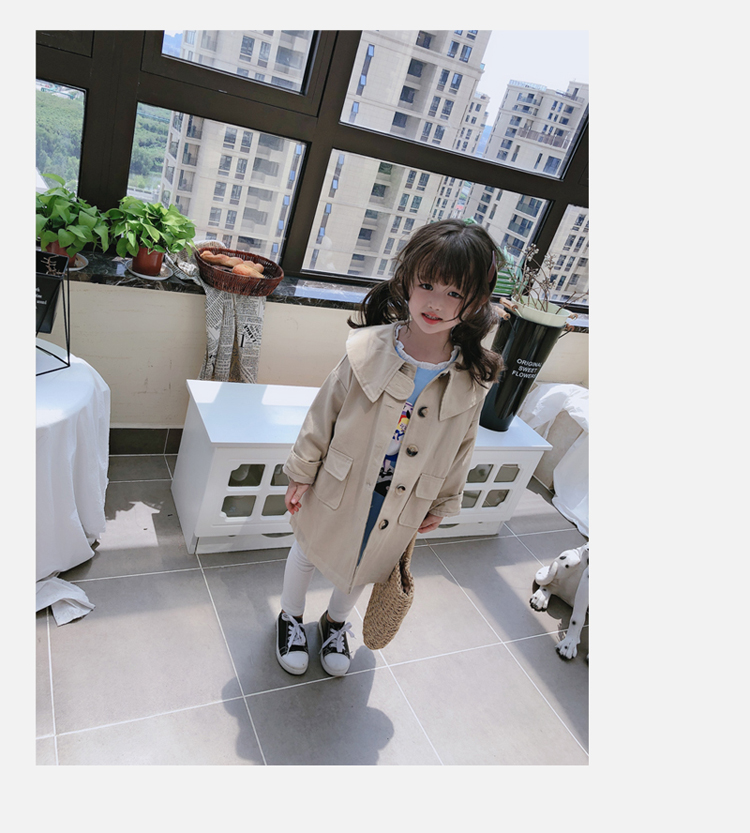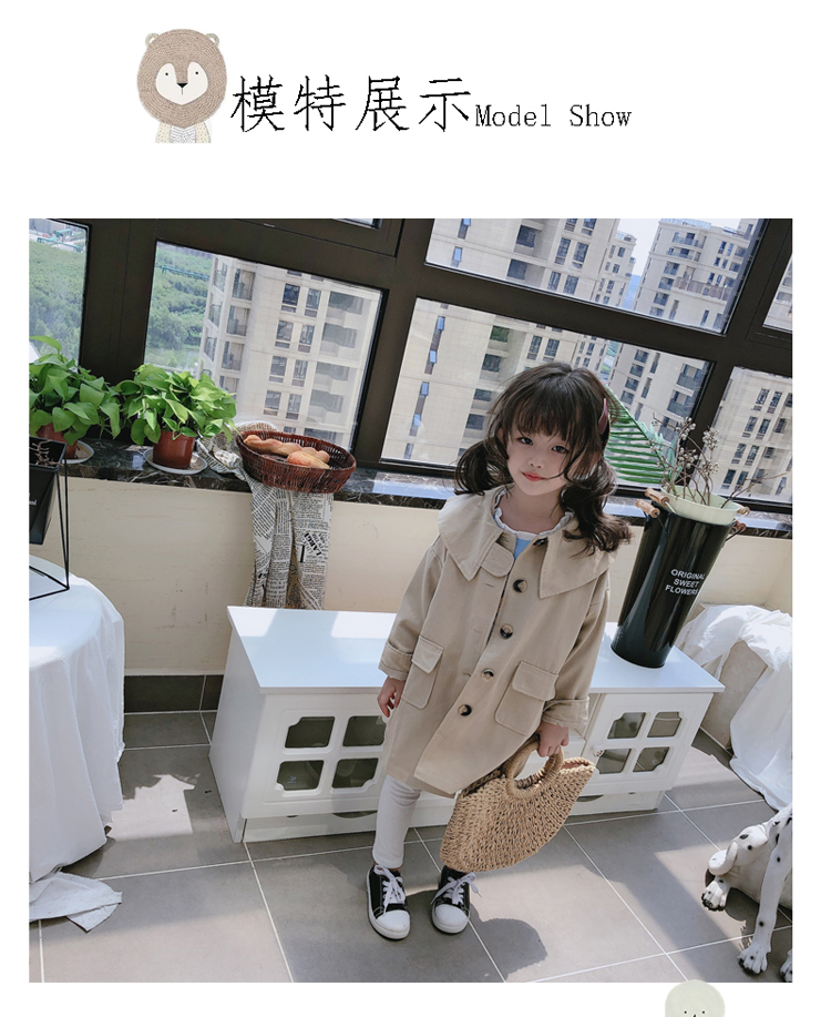 2019春秋季新款 女童簡約口袋氣質外套中小童舒適寬松中長款風衣1入