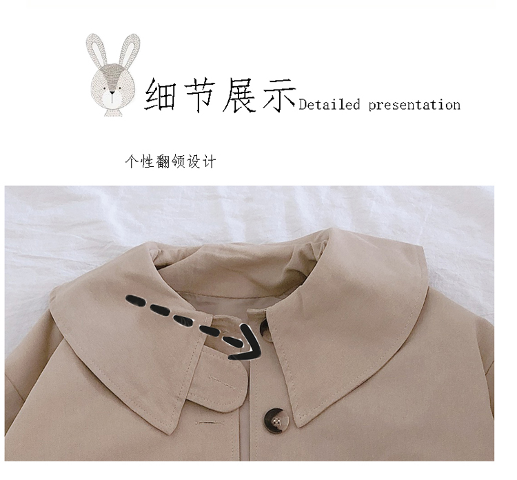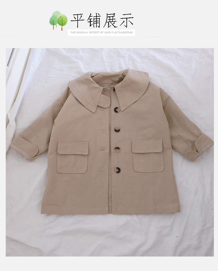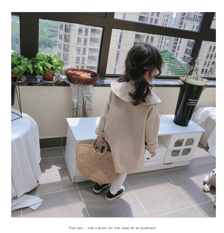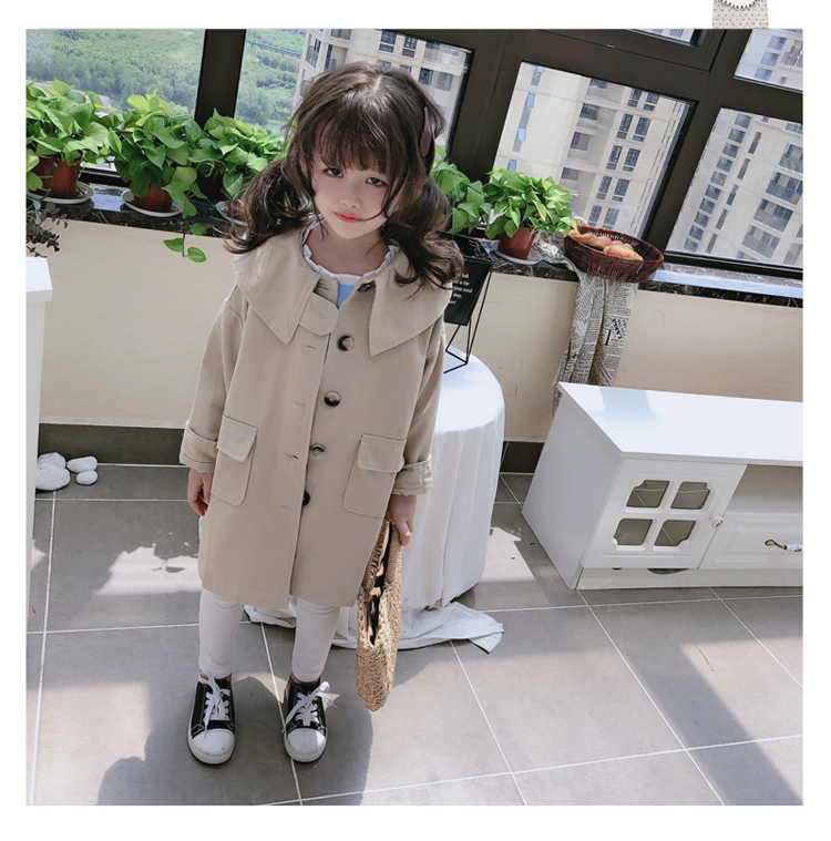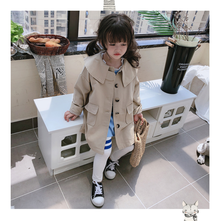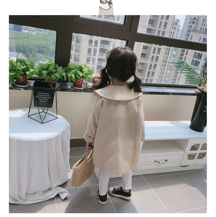 2019春秋季新款 女童簡約口袋氣質外套中小童舒適寬松中長款風衣1入