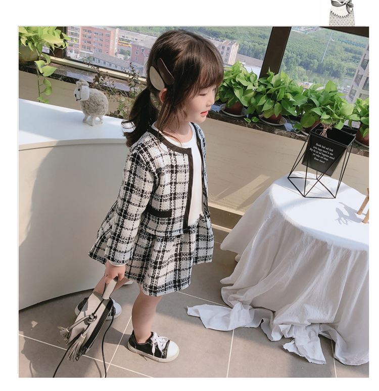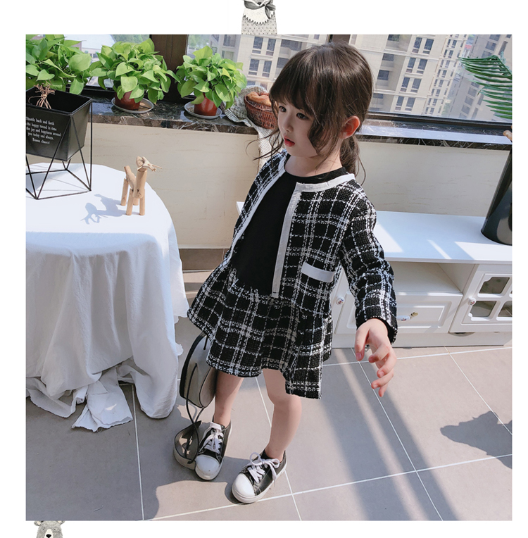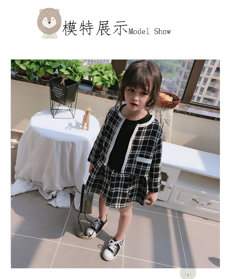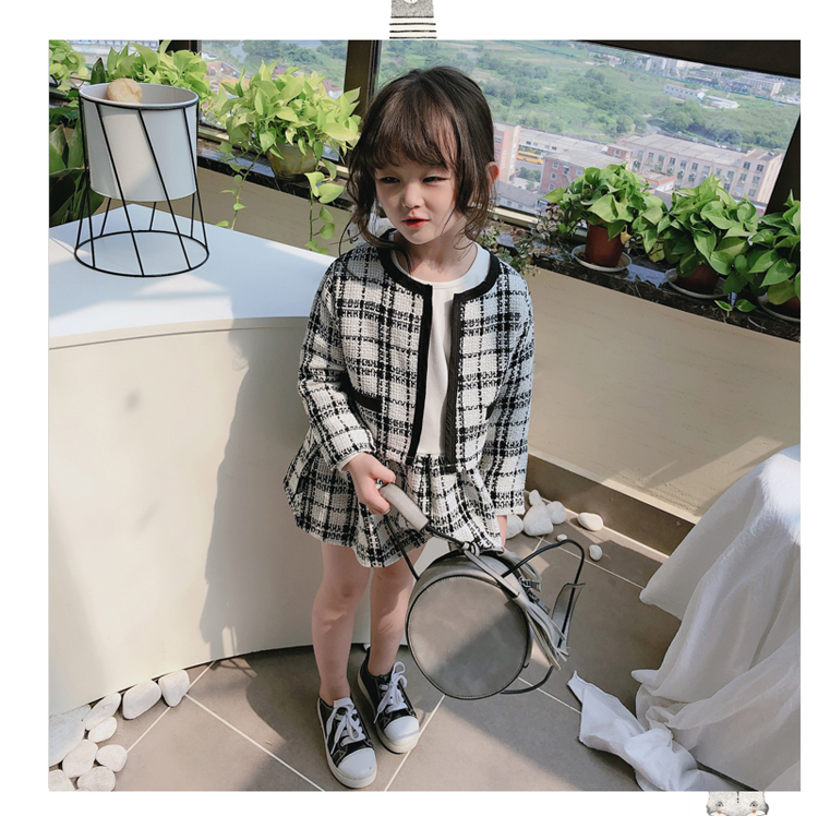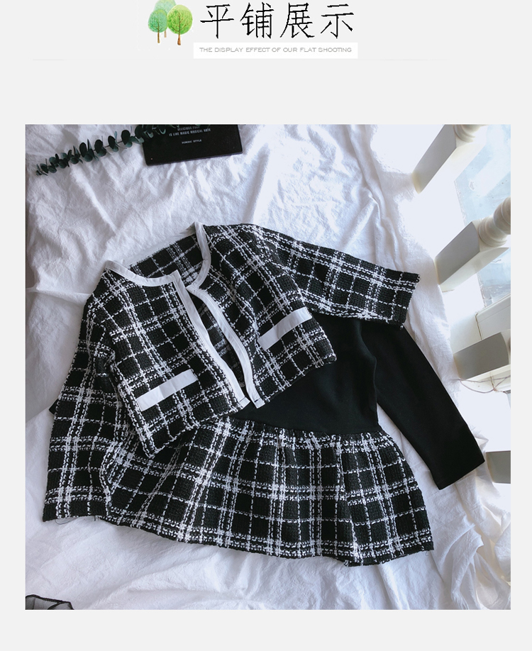 2019秋季新款 兒童舒適格子外套+拼接打底裙兩件套 女童洋氣套裝1入