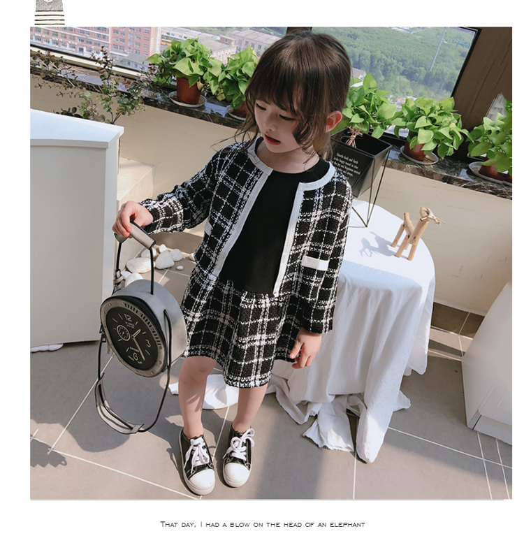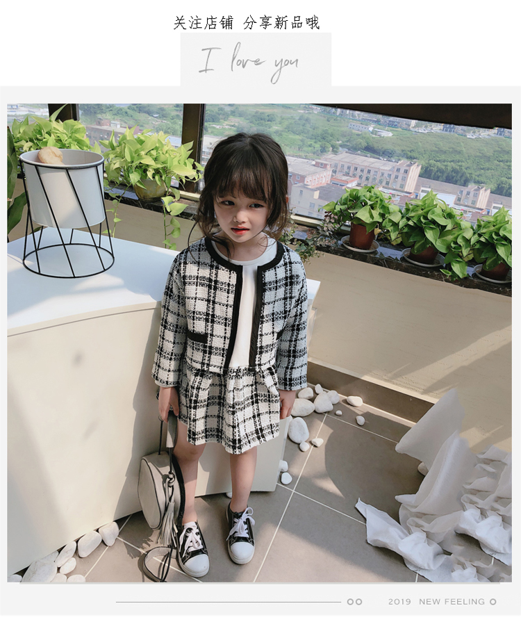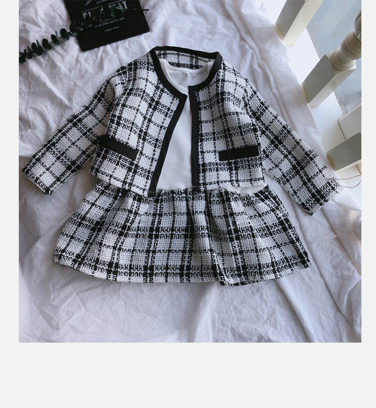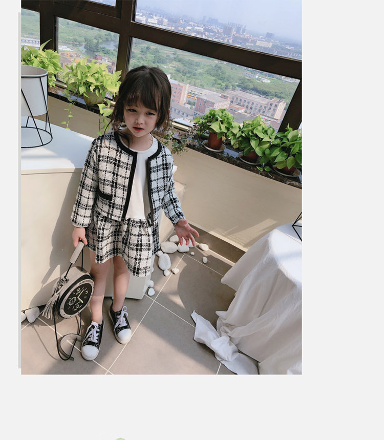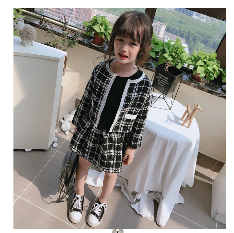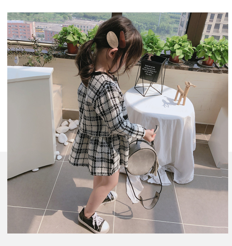 2019秋季新款 兒童舒適格子外套+拼接打底裙兩件套 女童洋氣套裝1入