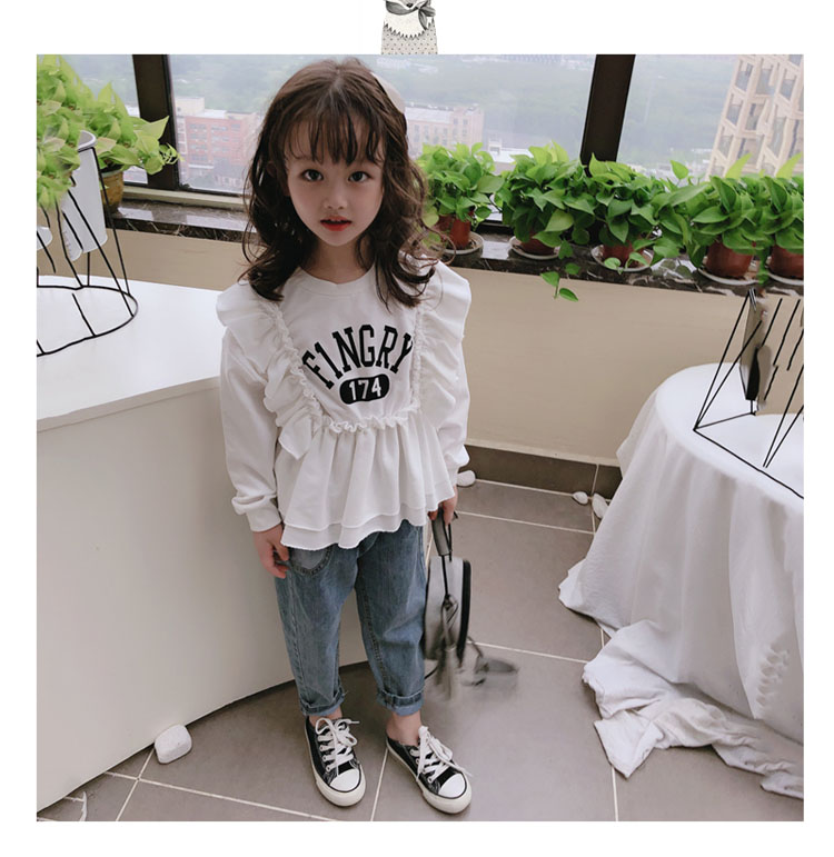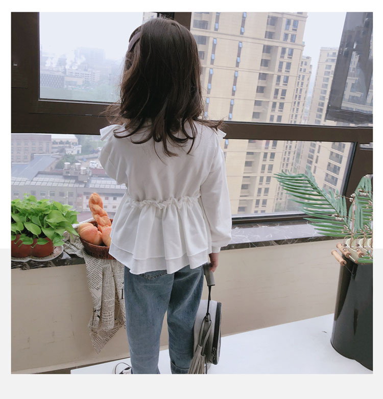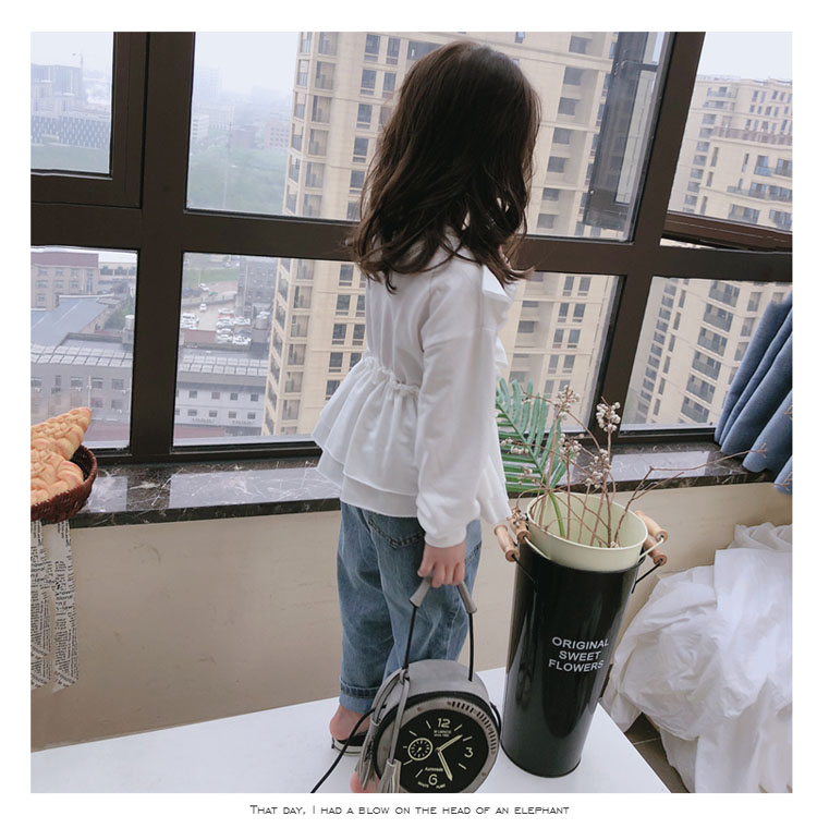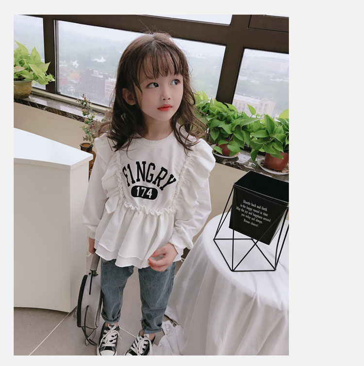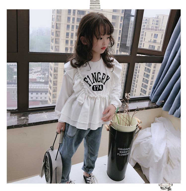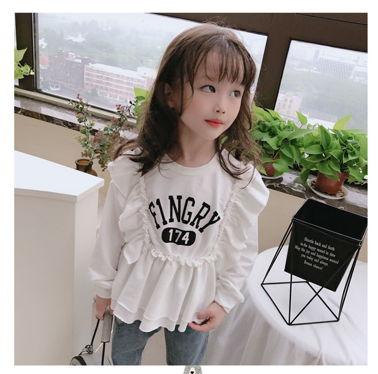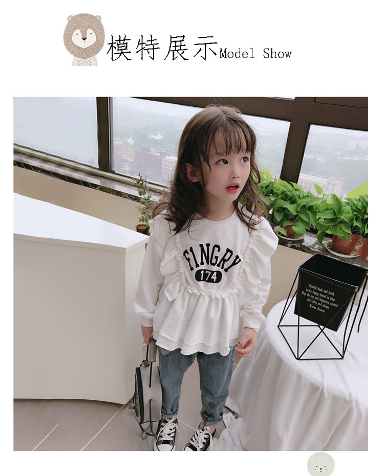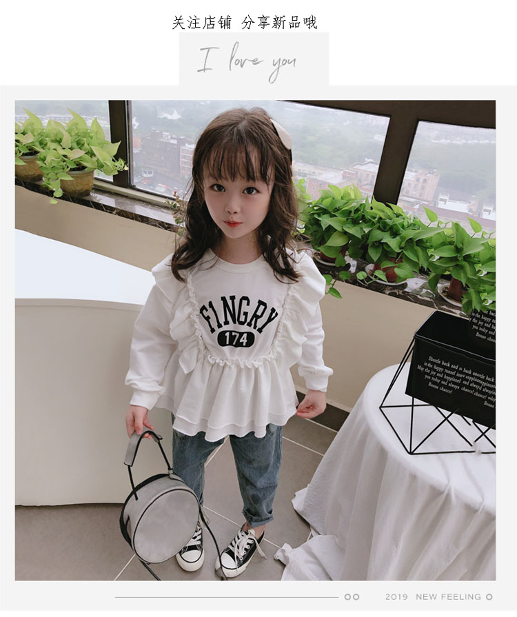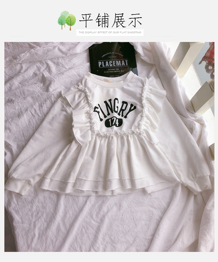 2019春秋季新款 女童小清新花邊T恤 兒童可愛帥氣小飛袖上衣潮1入