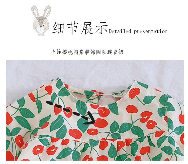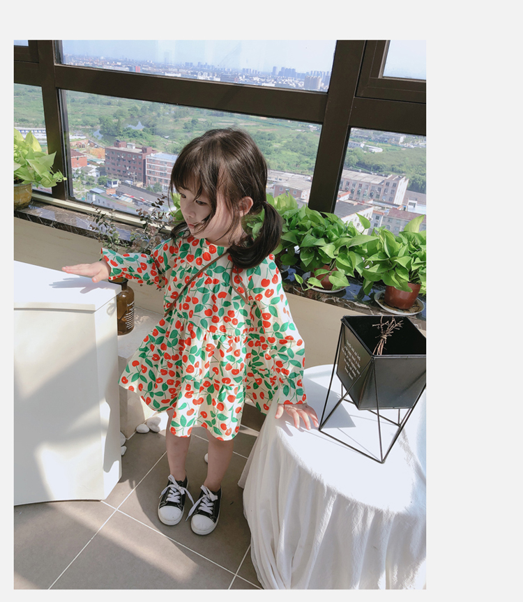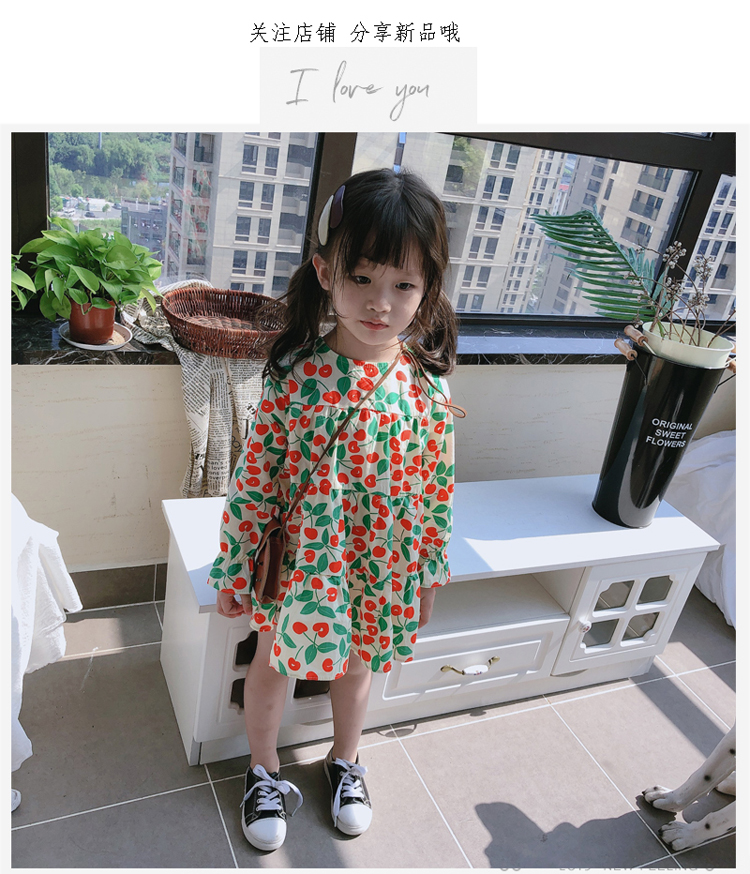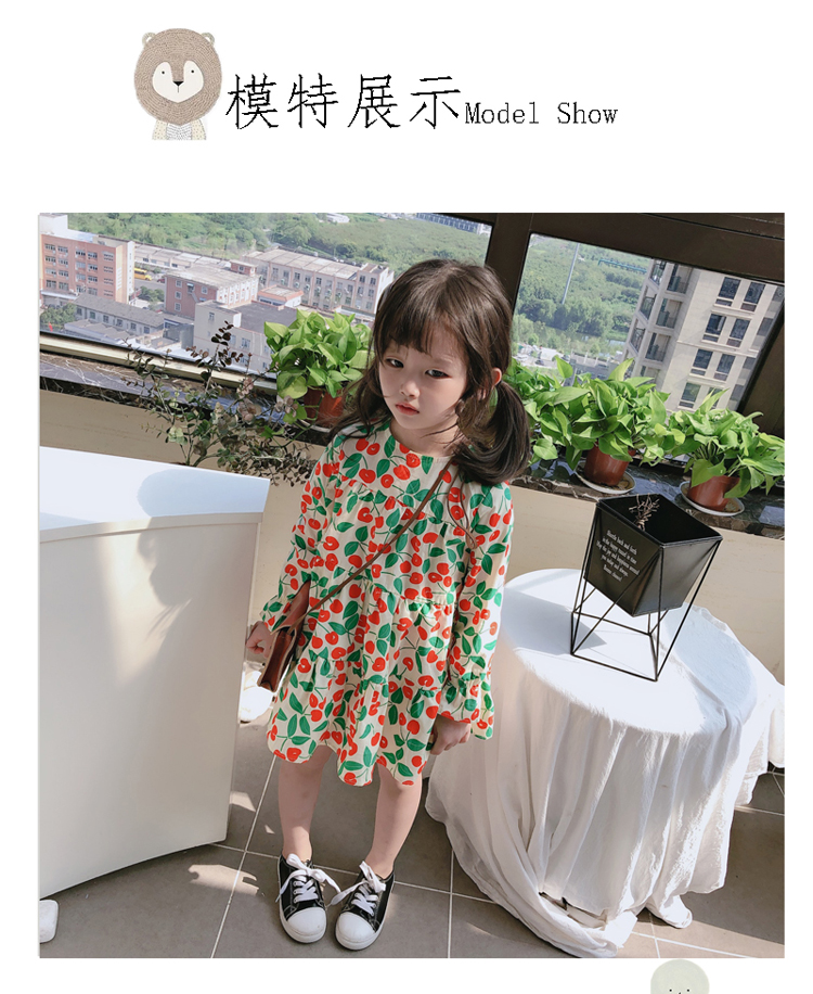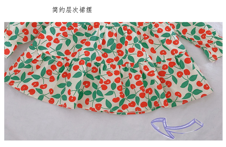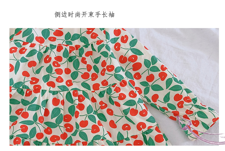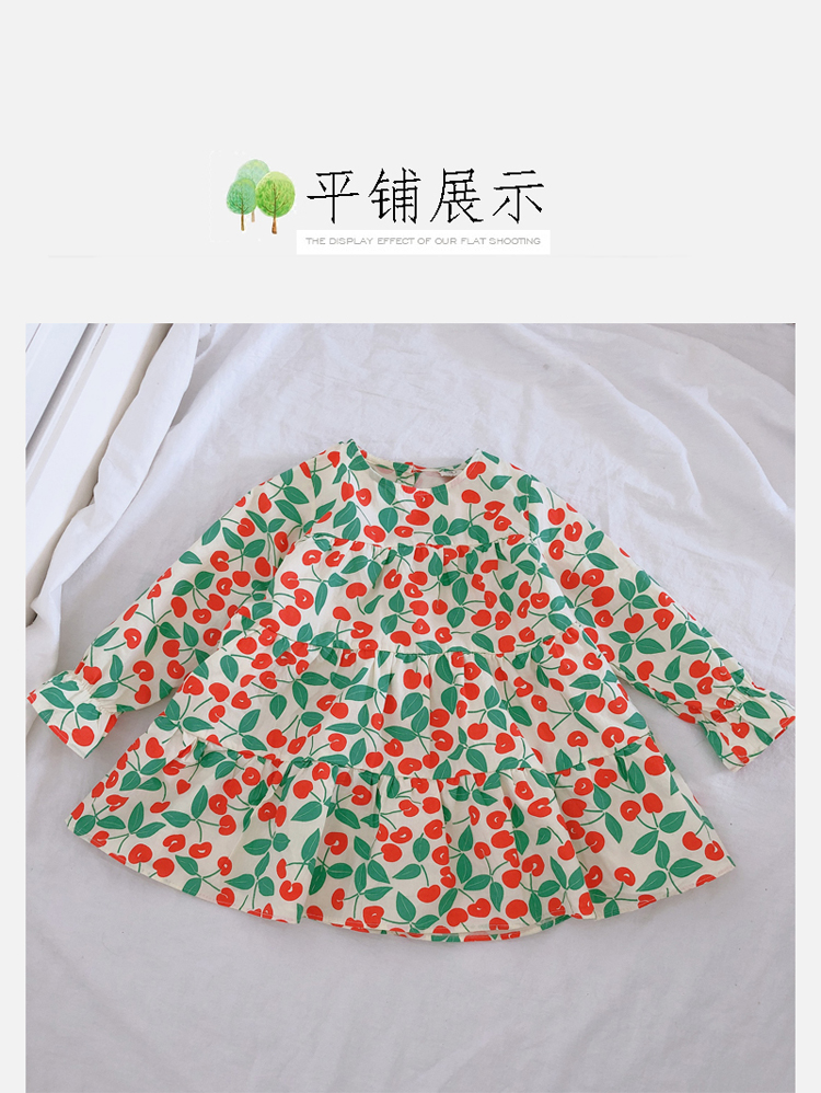 2019春秋季新款 女童小清新甜美連衣裙 兒童可愛櫻桃圖案圓領裙子1入