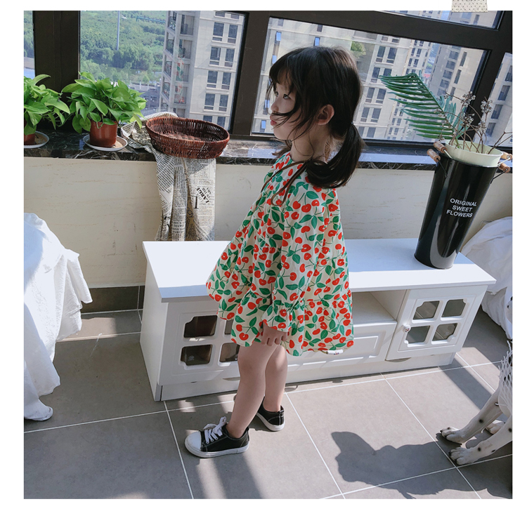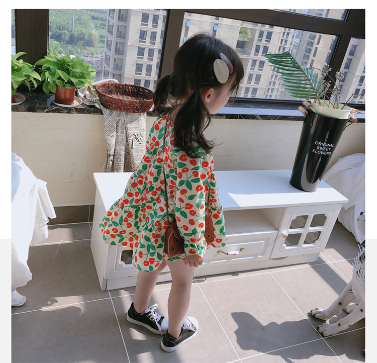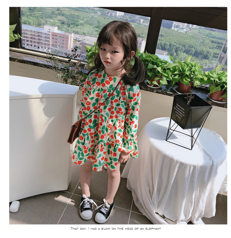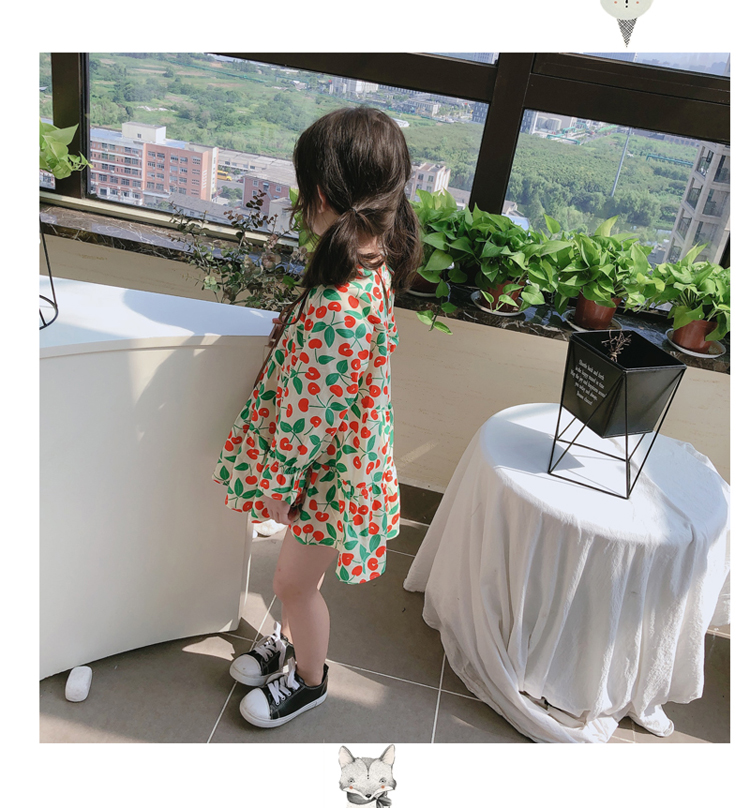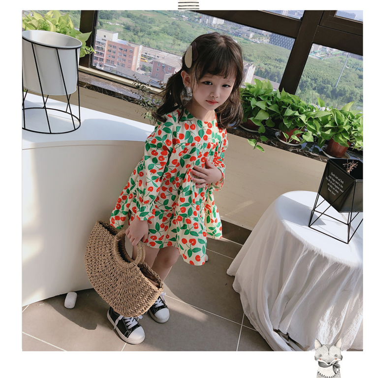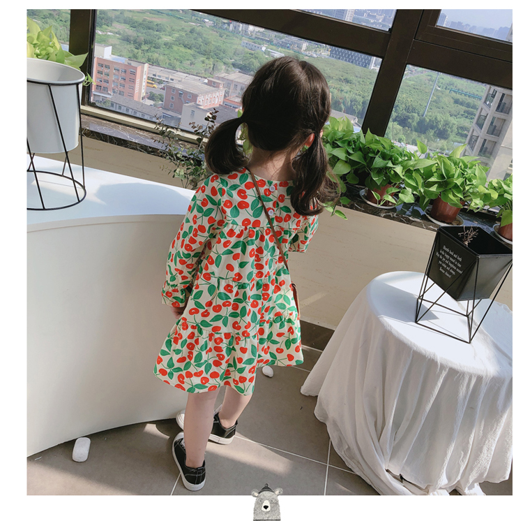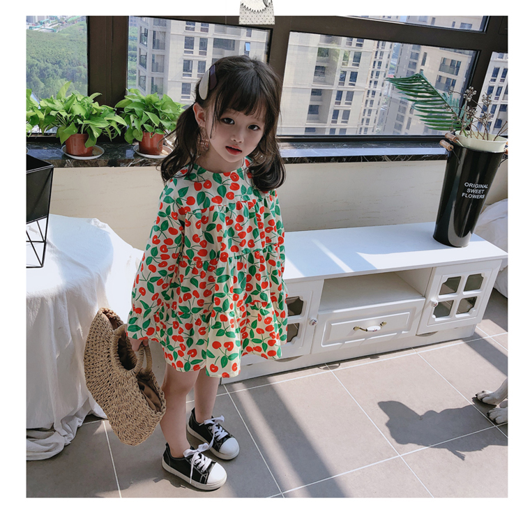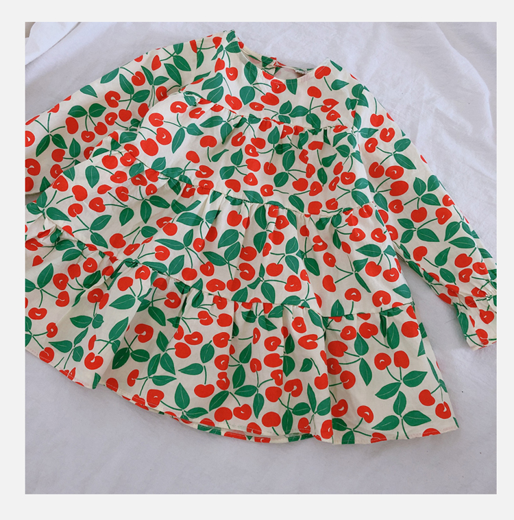 2019春秋季新款 女童小清新甜美連衣裙 兒童可愛櫻桃圖案圓領裙子1入