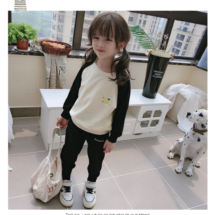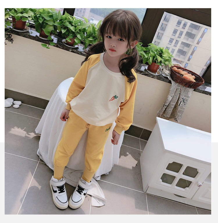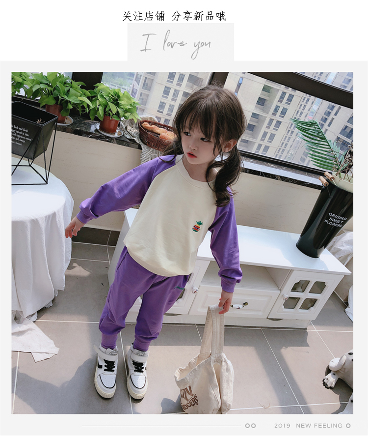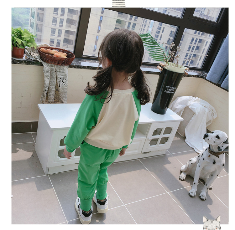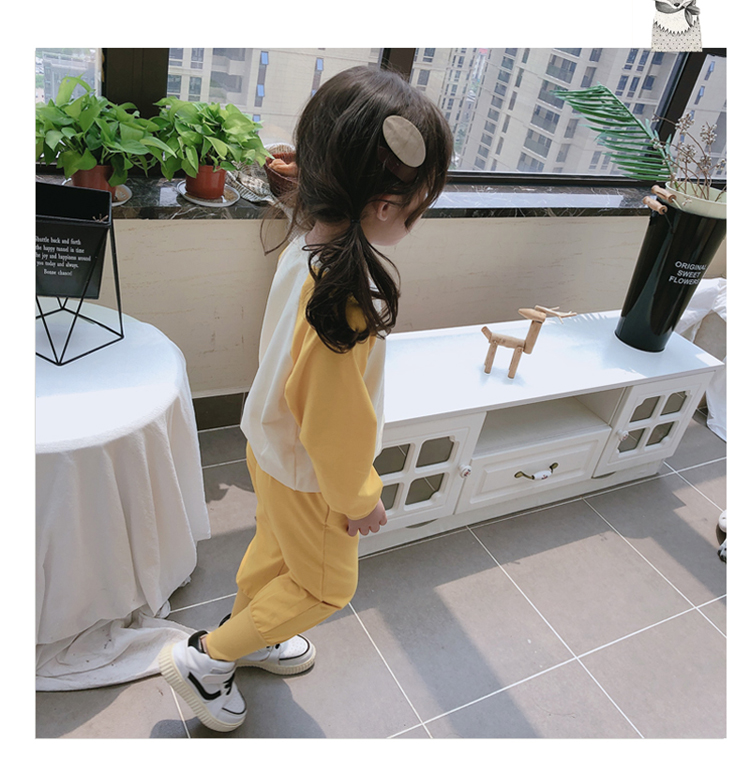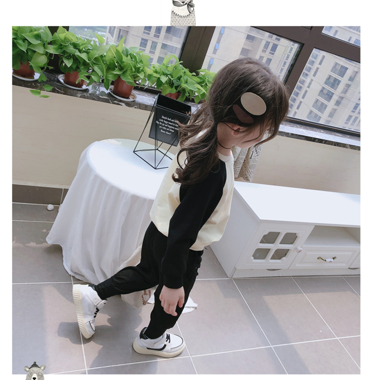 2019春秋季新款 男女童撞色套裝 兒童可愛圓領T恤+收口褲子兩件套1入