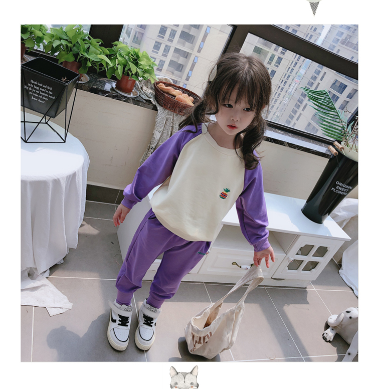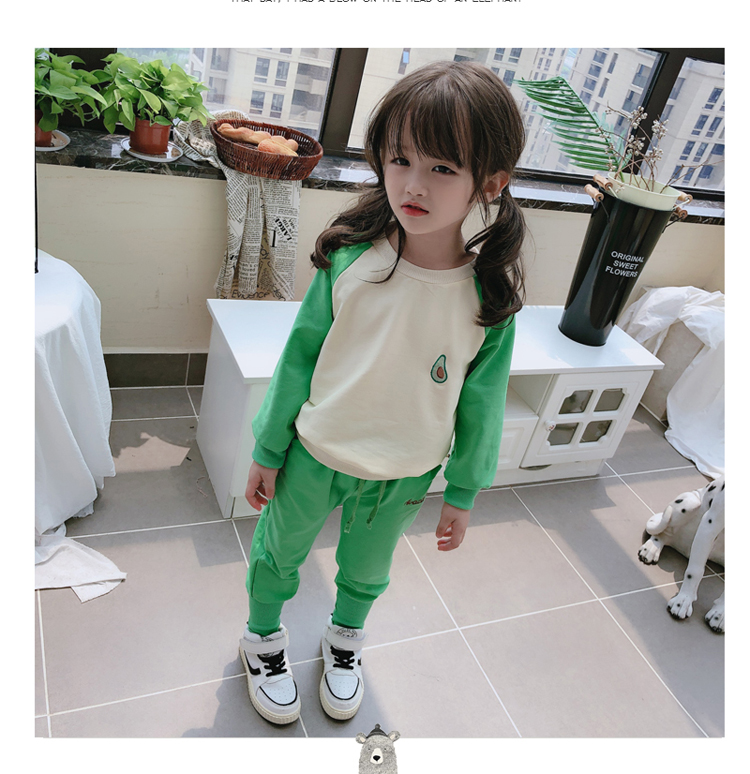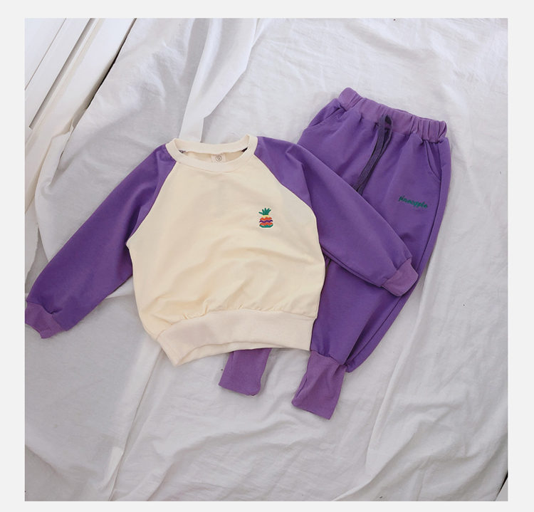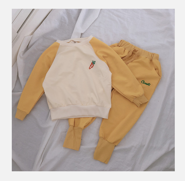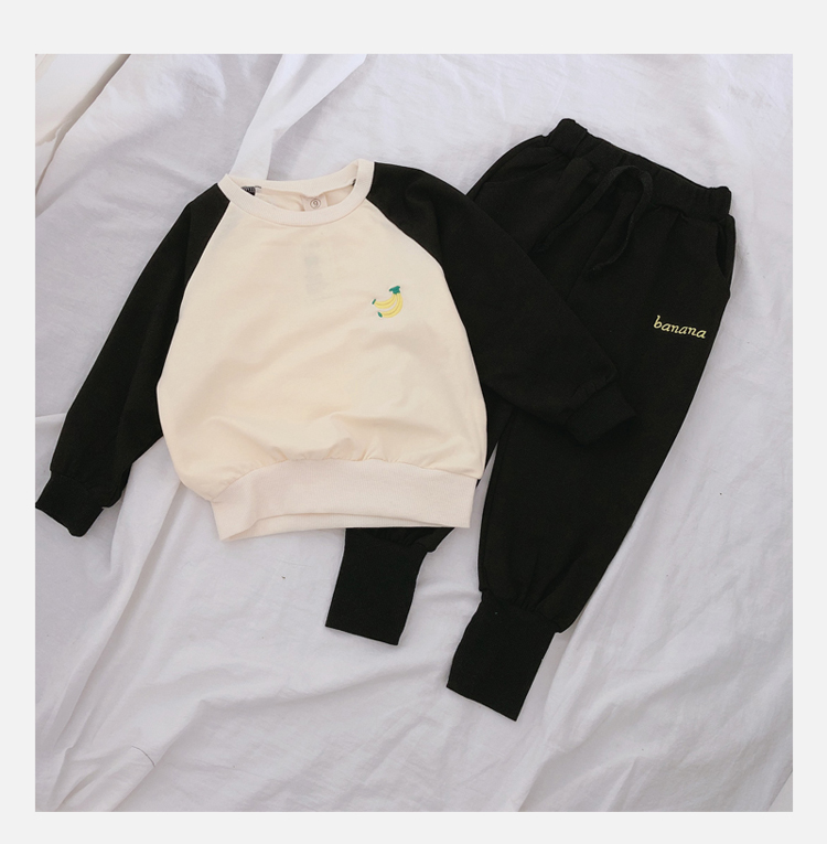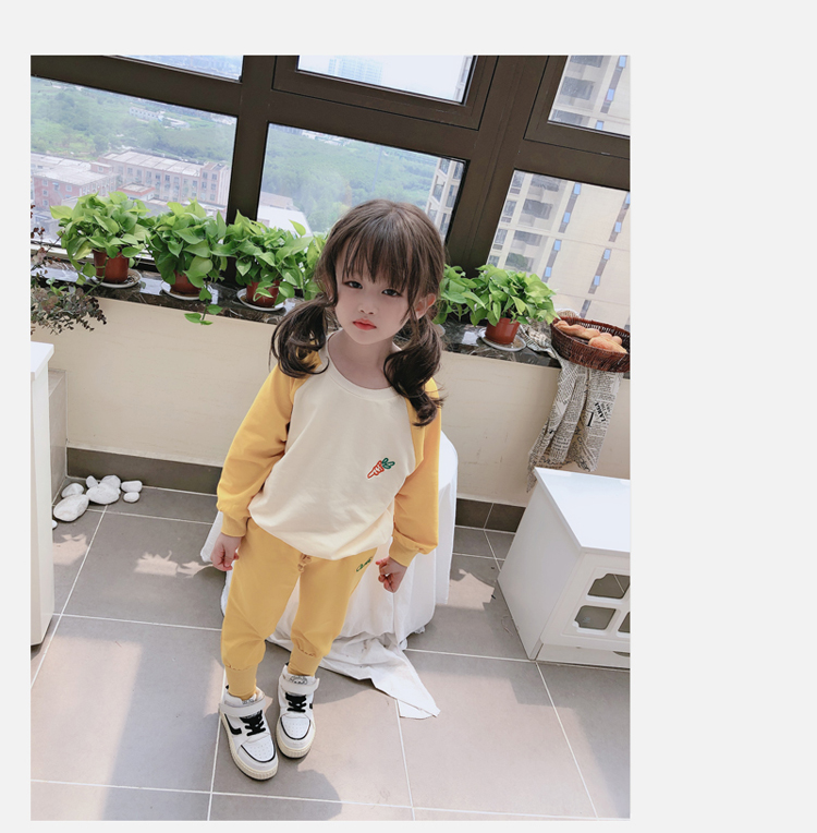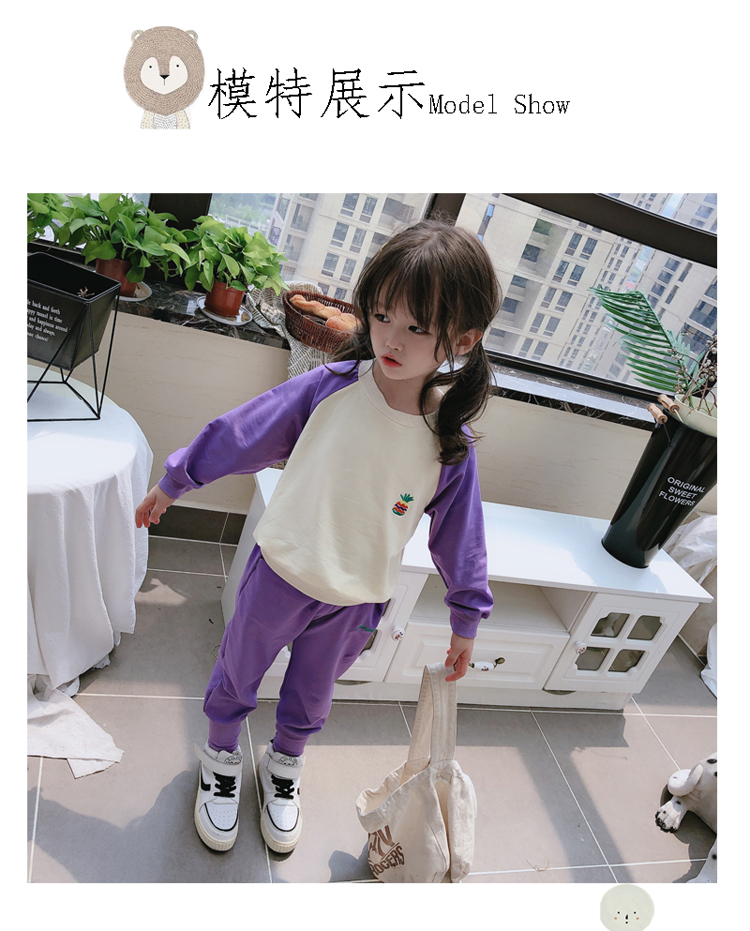 2019春秋季新款 男女童撞色套裝 兒童可愛圓領T恤+收口褲子兩件套1入