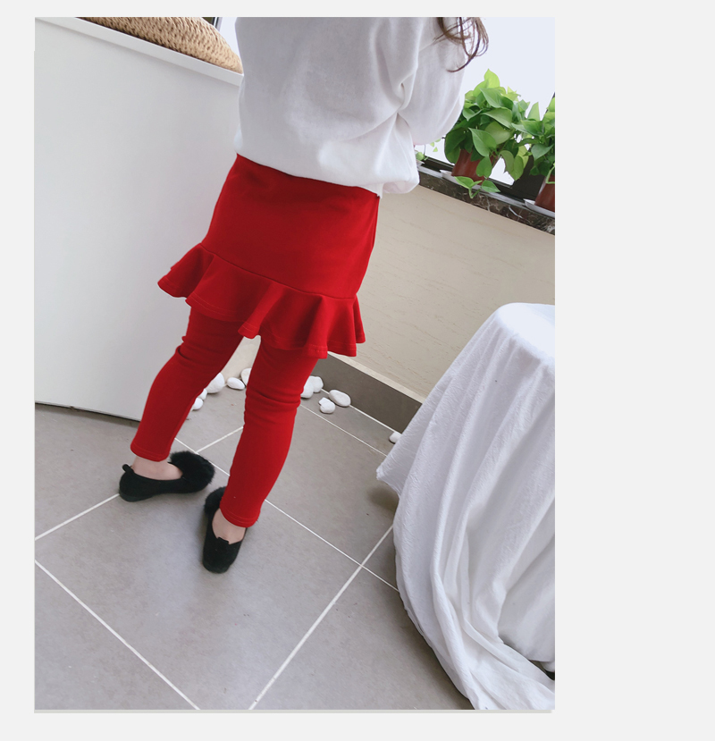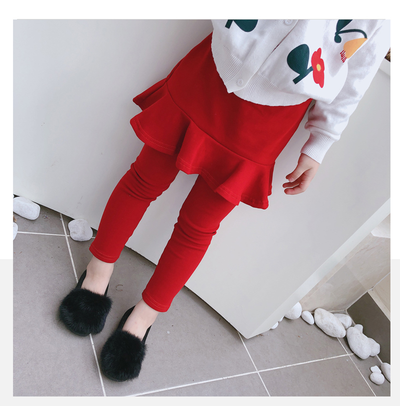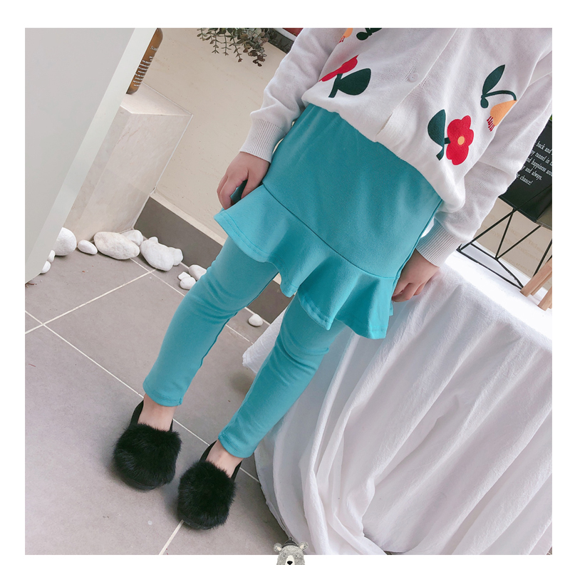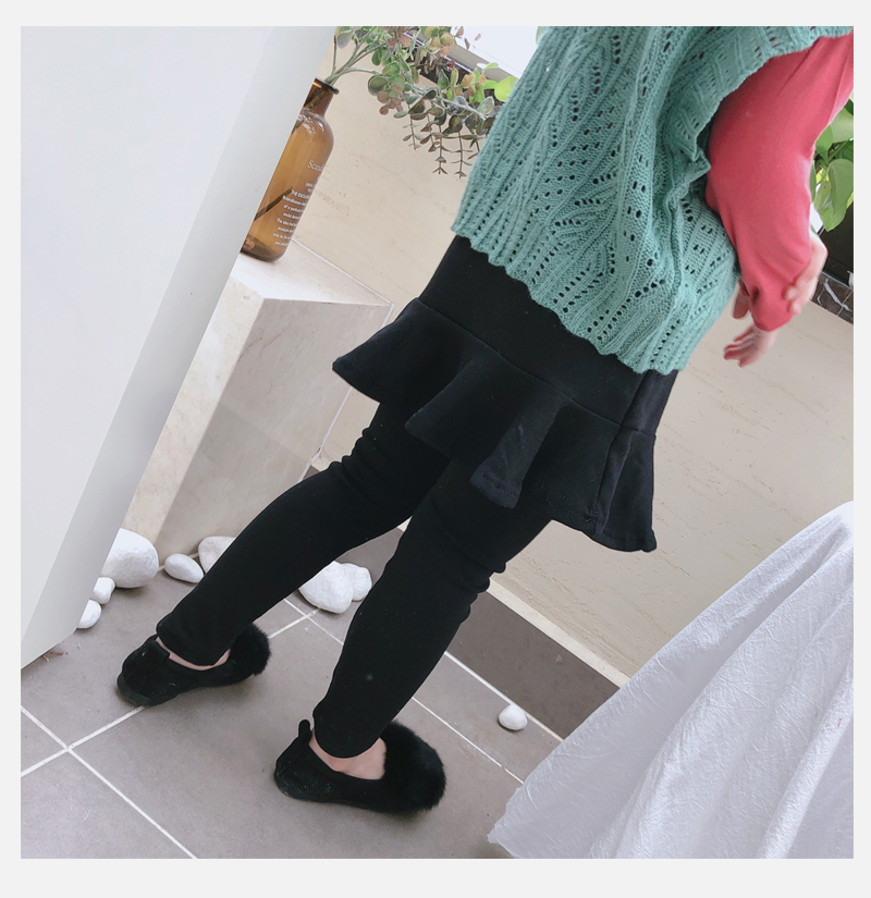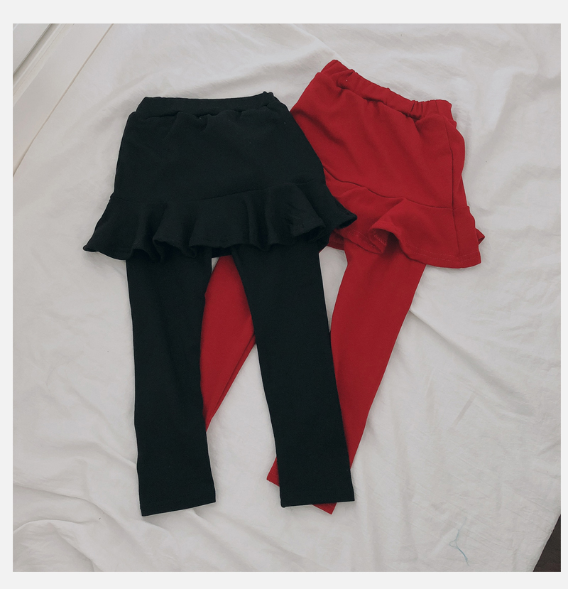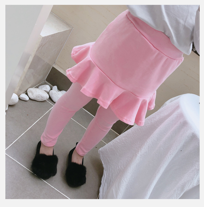 2019春秋季新款 兒童個性洋氣假兩件裙褲 女童可愛舒適純色打底褲1入