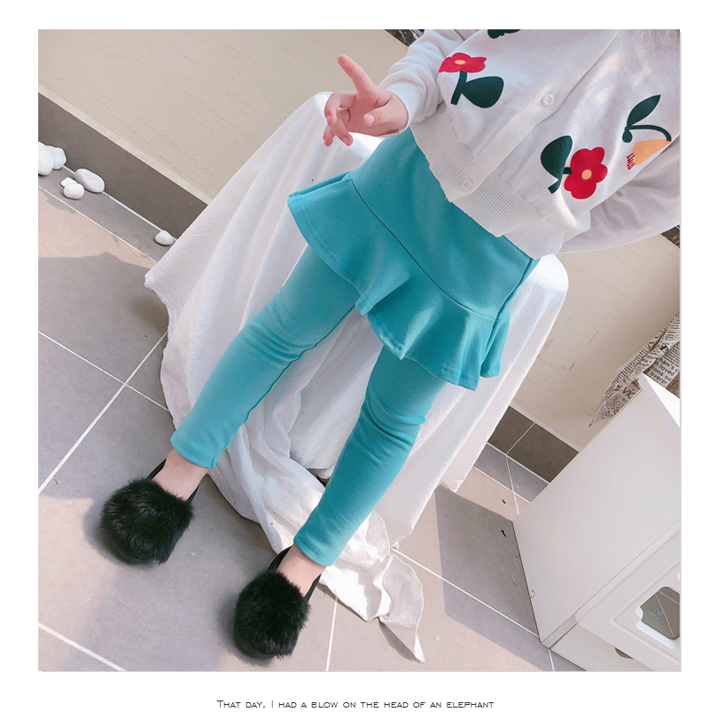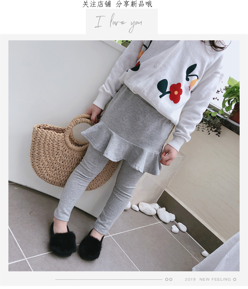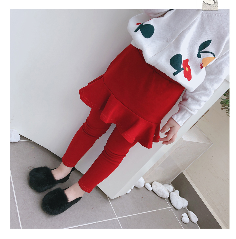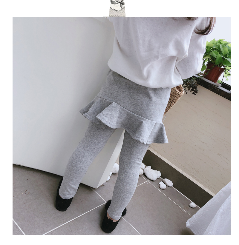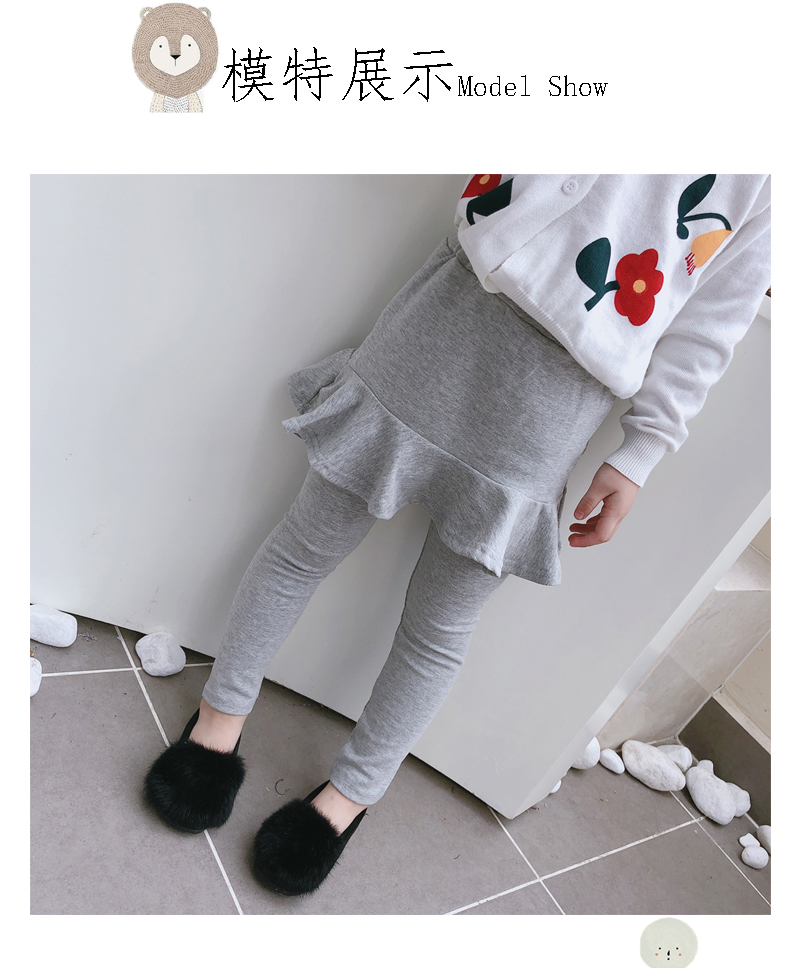 2019春秋季新款 兒童個性洋氣假兩件裙褲 女童可愛舒適純色打底褲1入