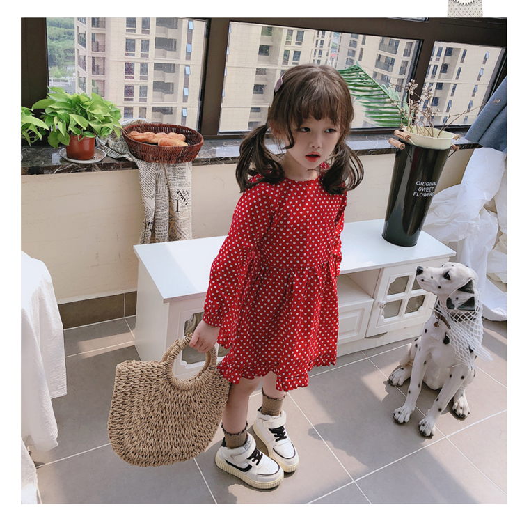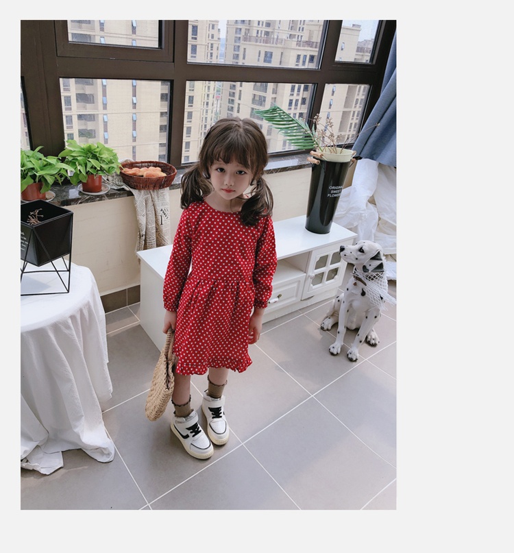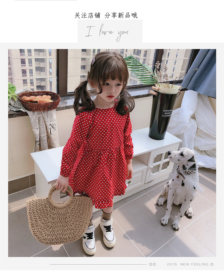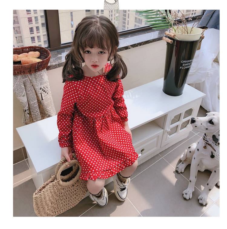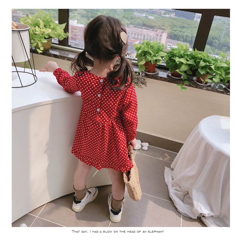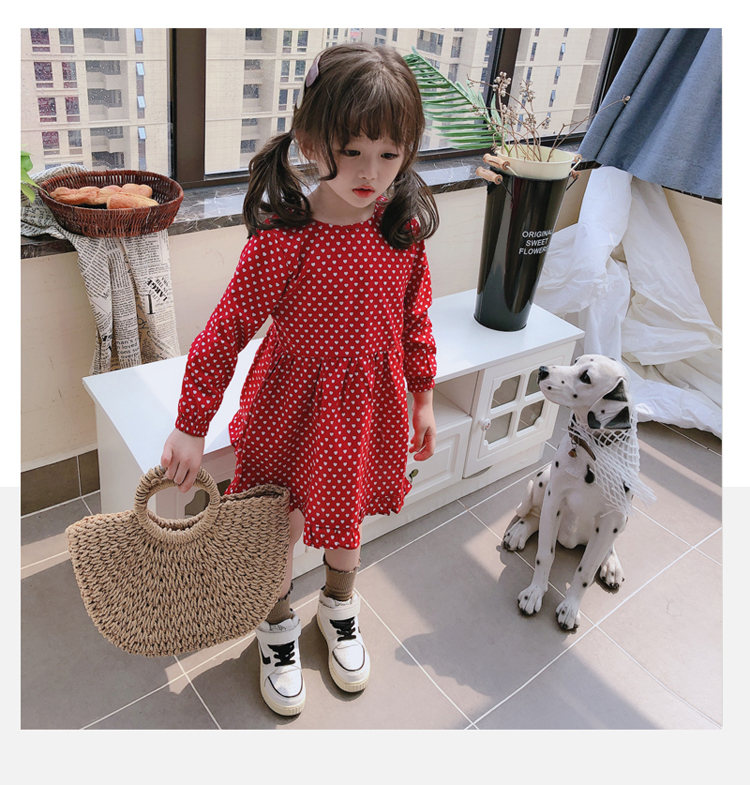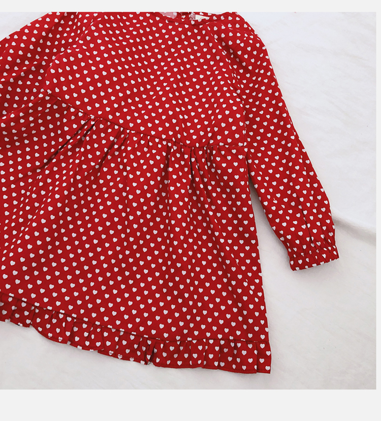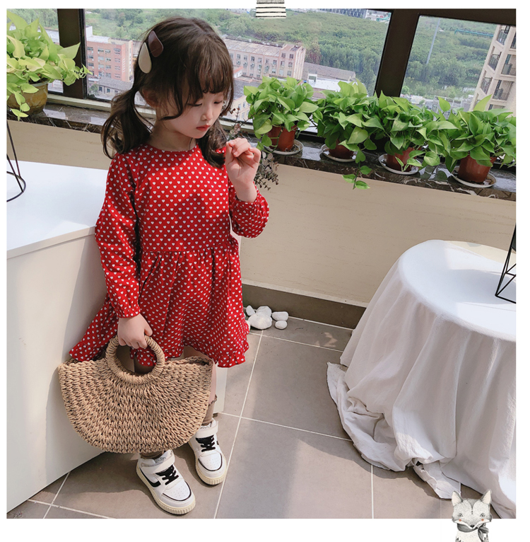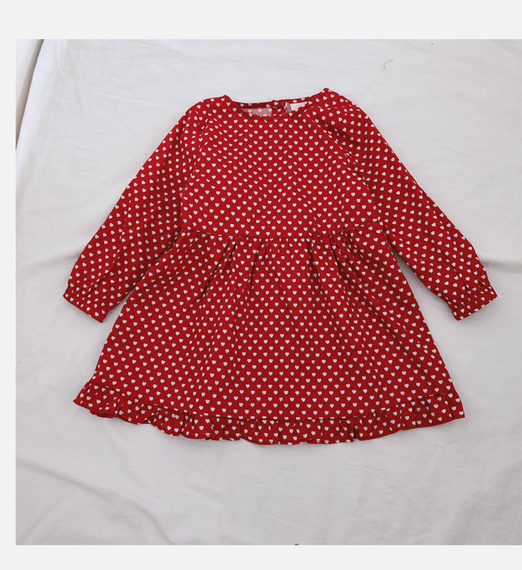 2019春秋季新款 中小童甜美可愛連衣裙 兒童可愛舒適愛心圖案裙子1入