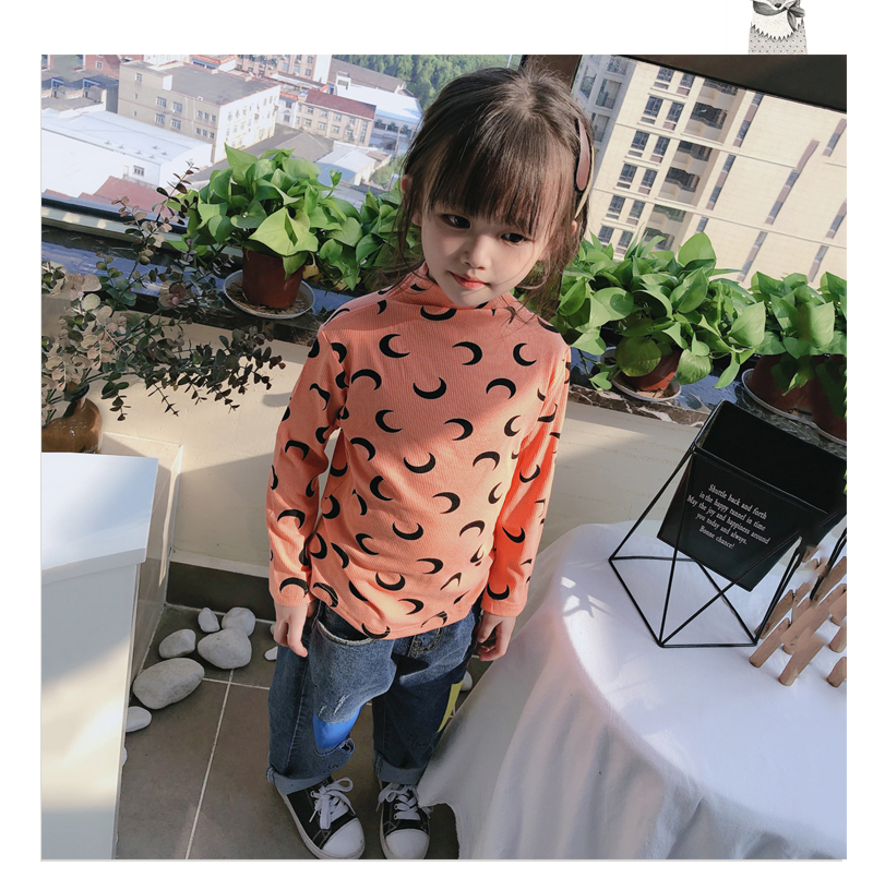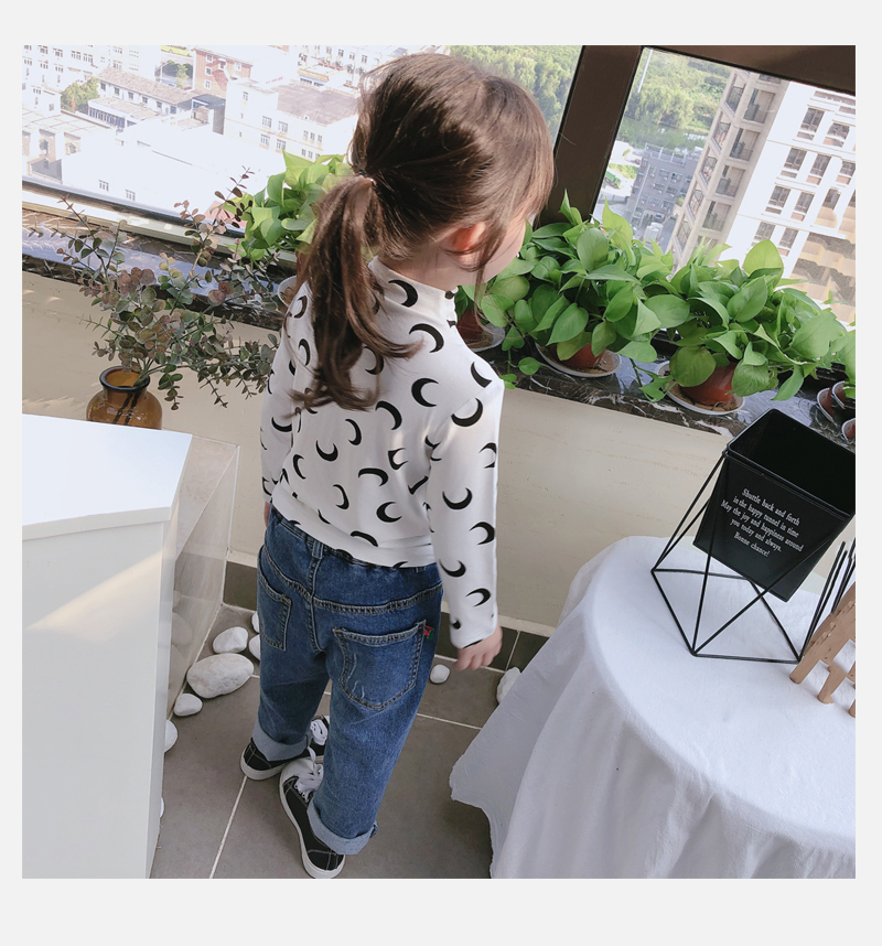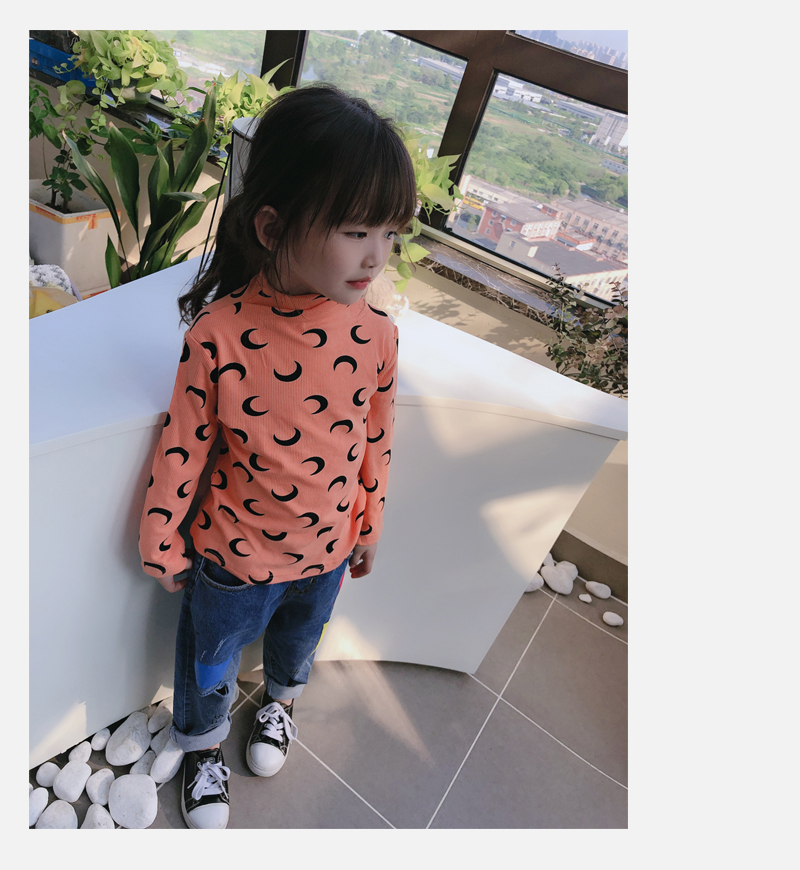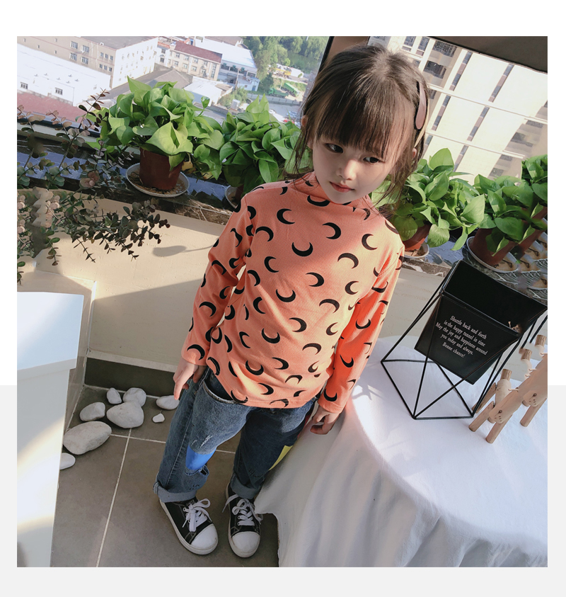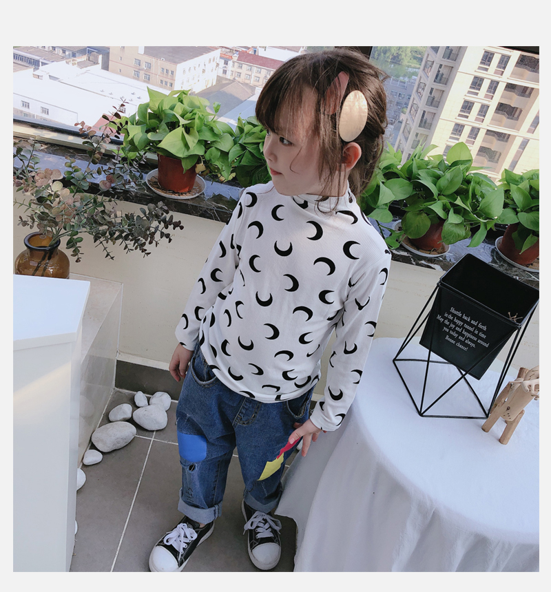 2019春秋季新款童裝 男女童寶寶舒適百搭T恤 兒童月亮印花打底衫1入