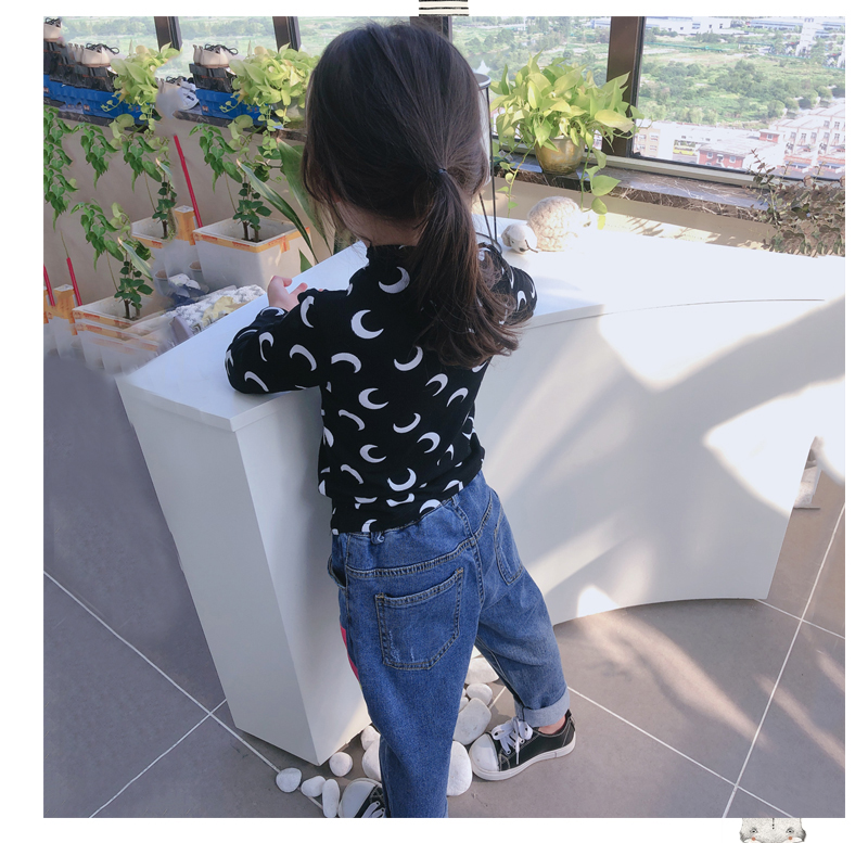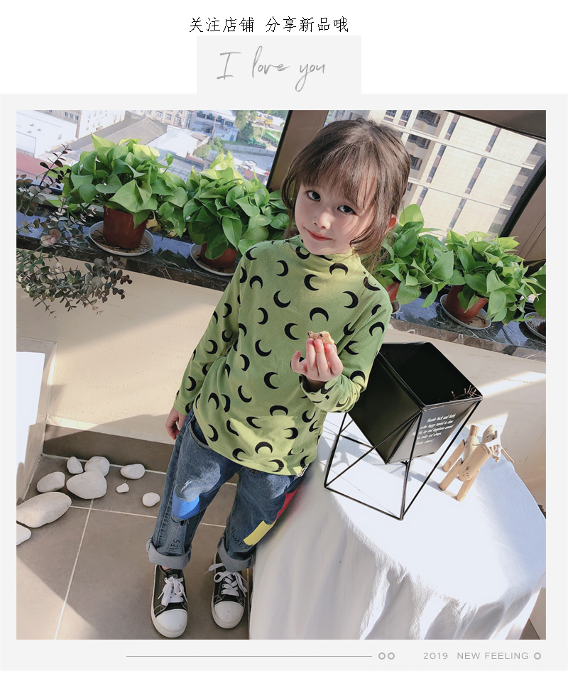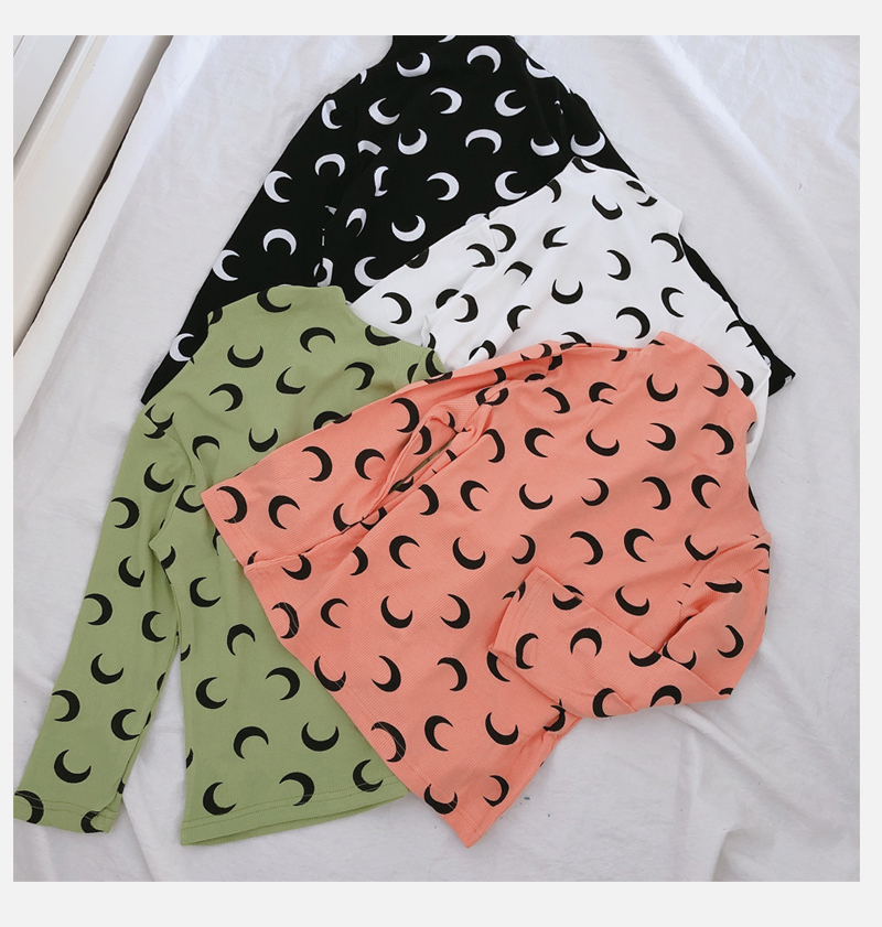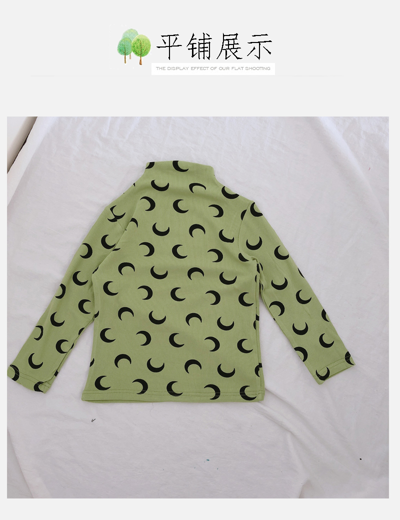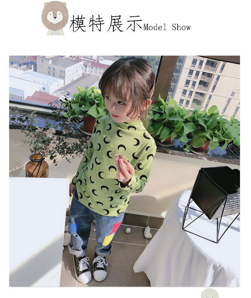 2019春秋季新款童裝 男女童寶寶舒適百搭T恤 兒童月亮印花打底衫1入