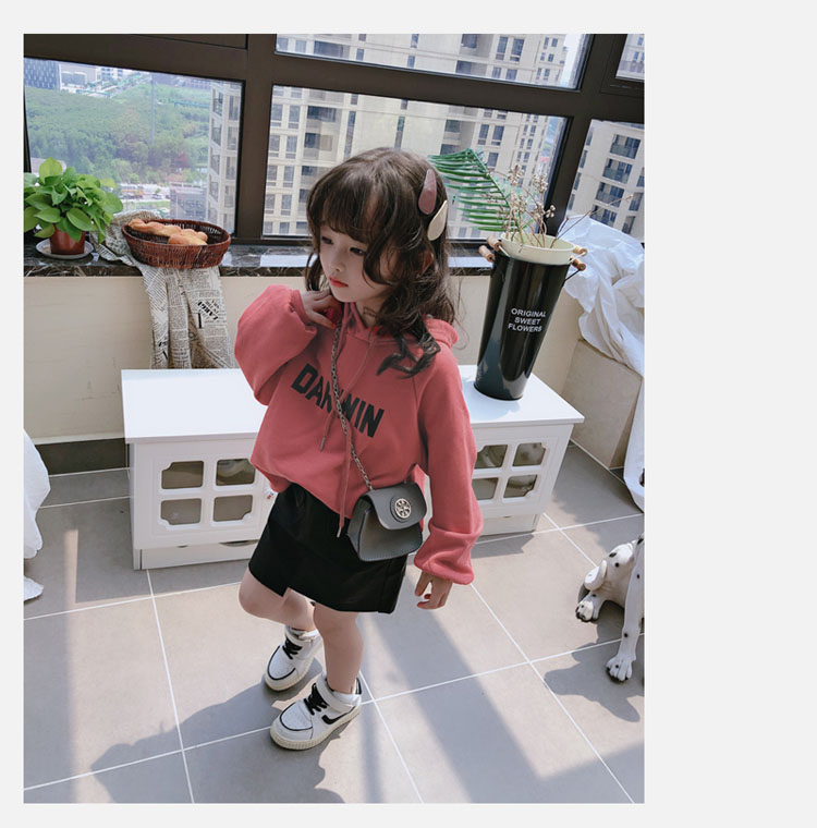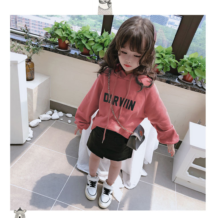 2019春秋季新款 女童舒適套裝 兒童連帽衛衣+不規則半身裙兩件套1入