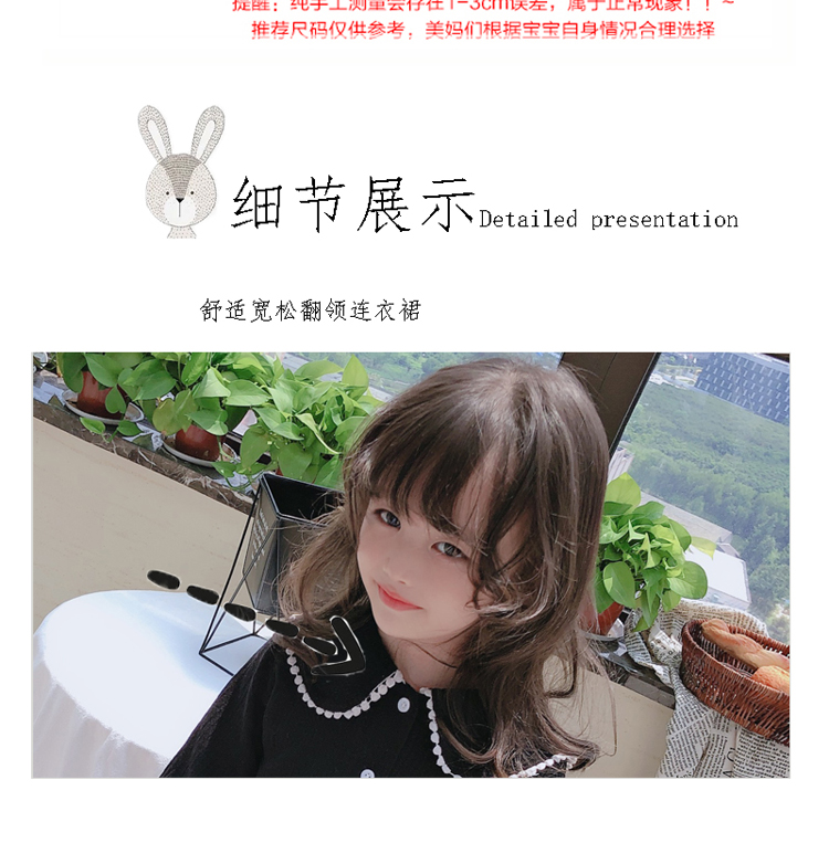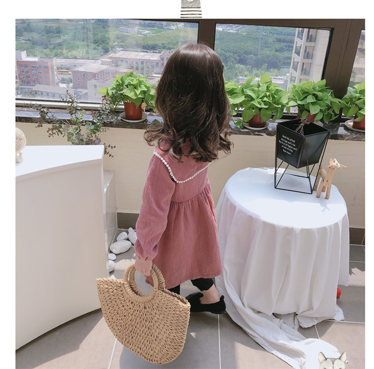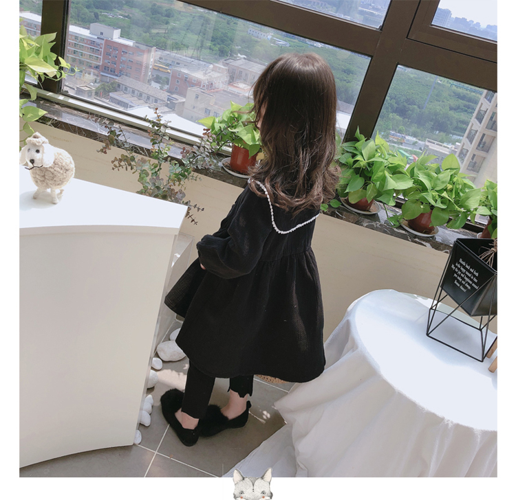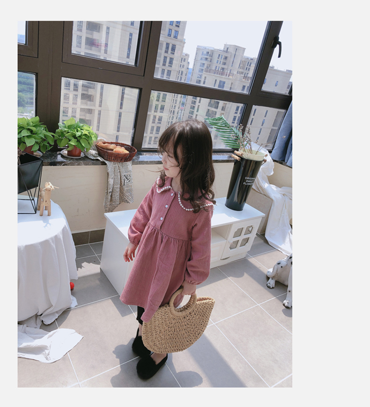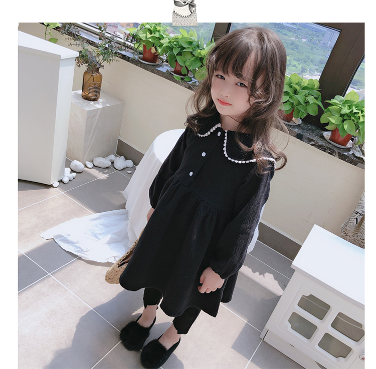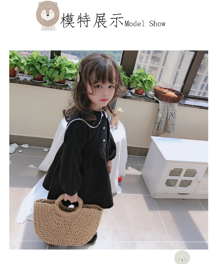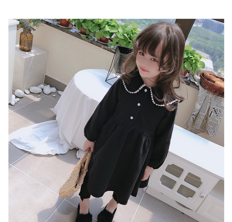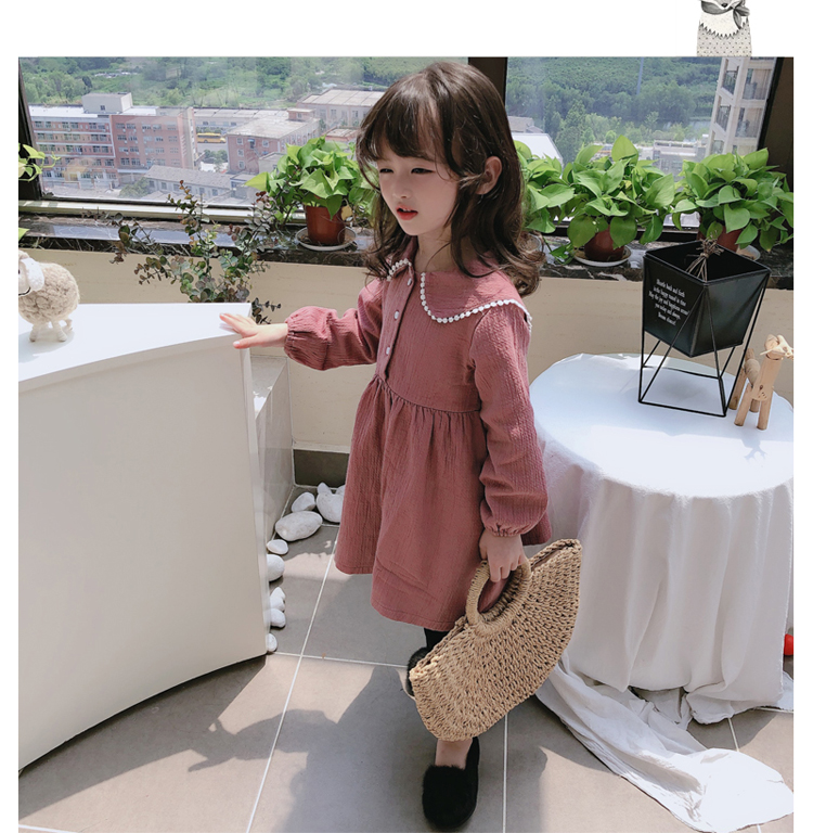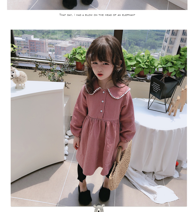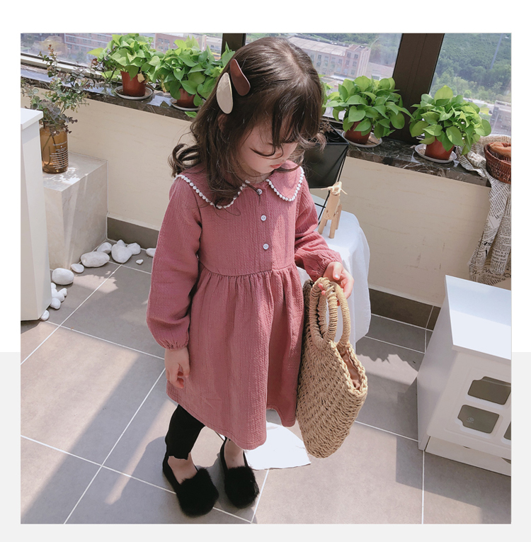 2019春秋季新款 女童個性洋氣長袖裙子 中小童寬松花邊翻領連衣裙1入