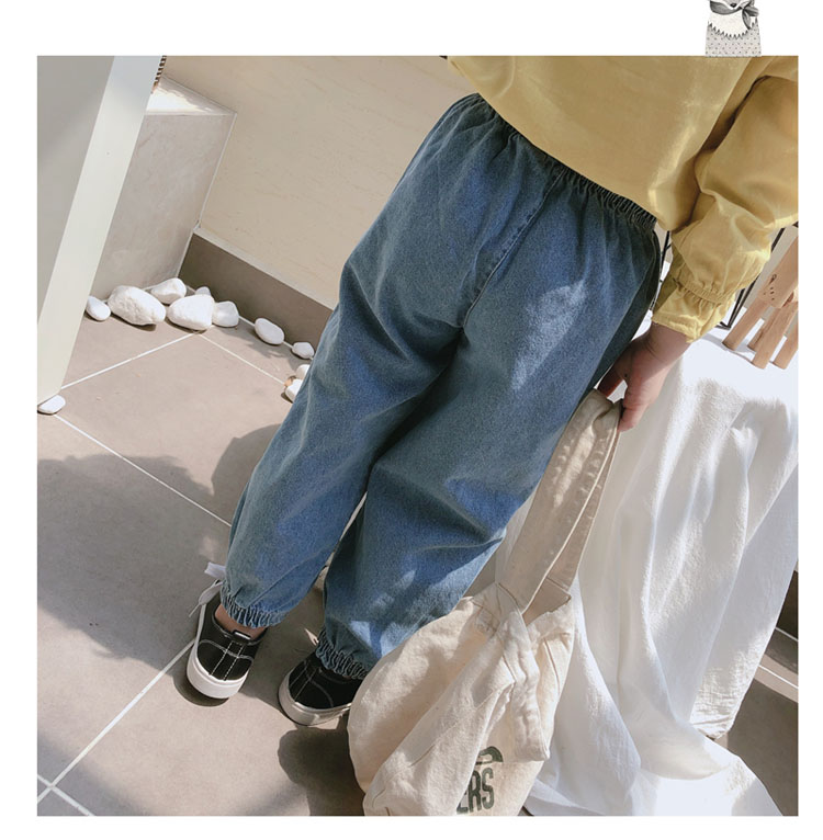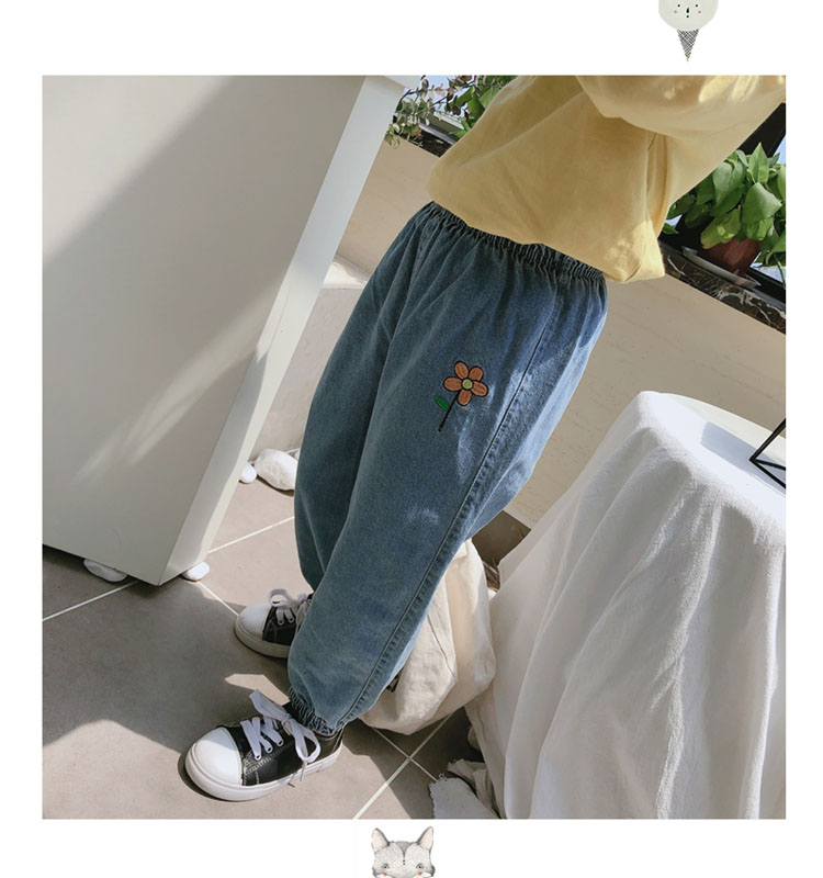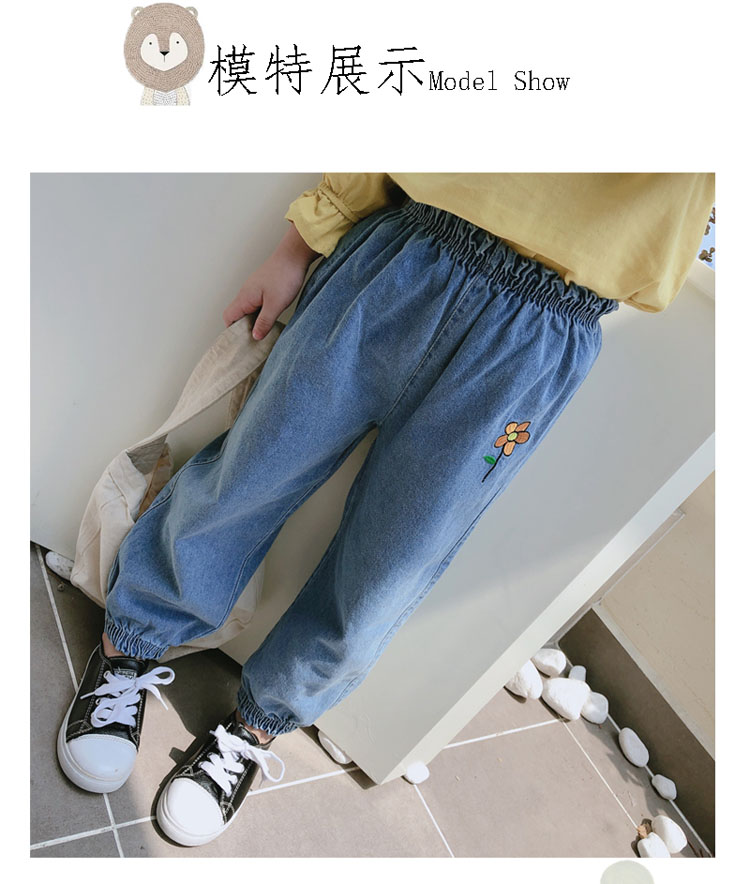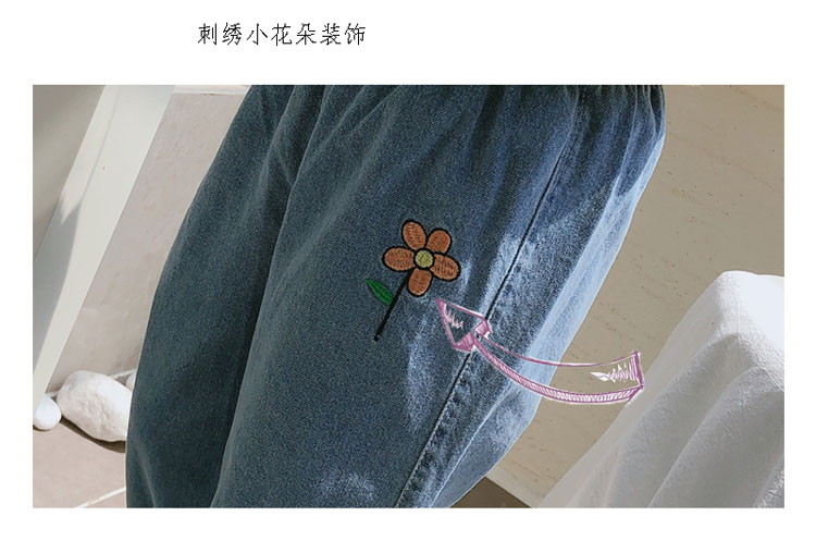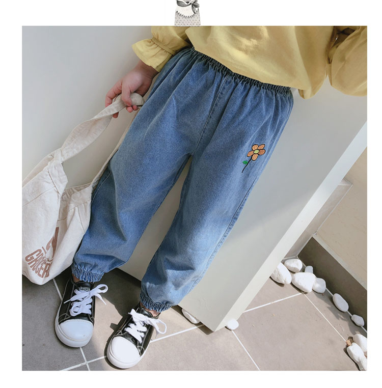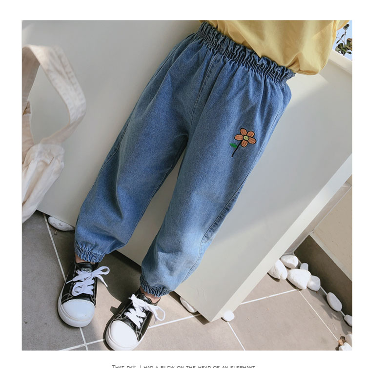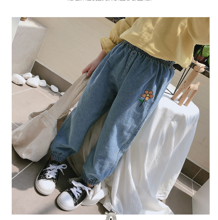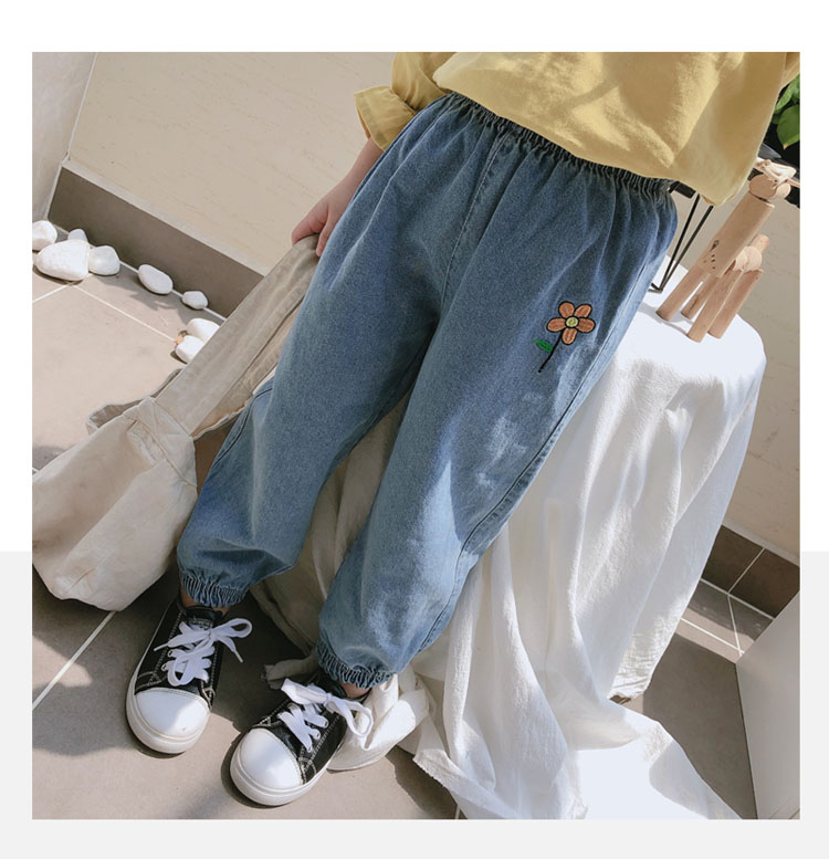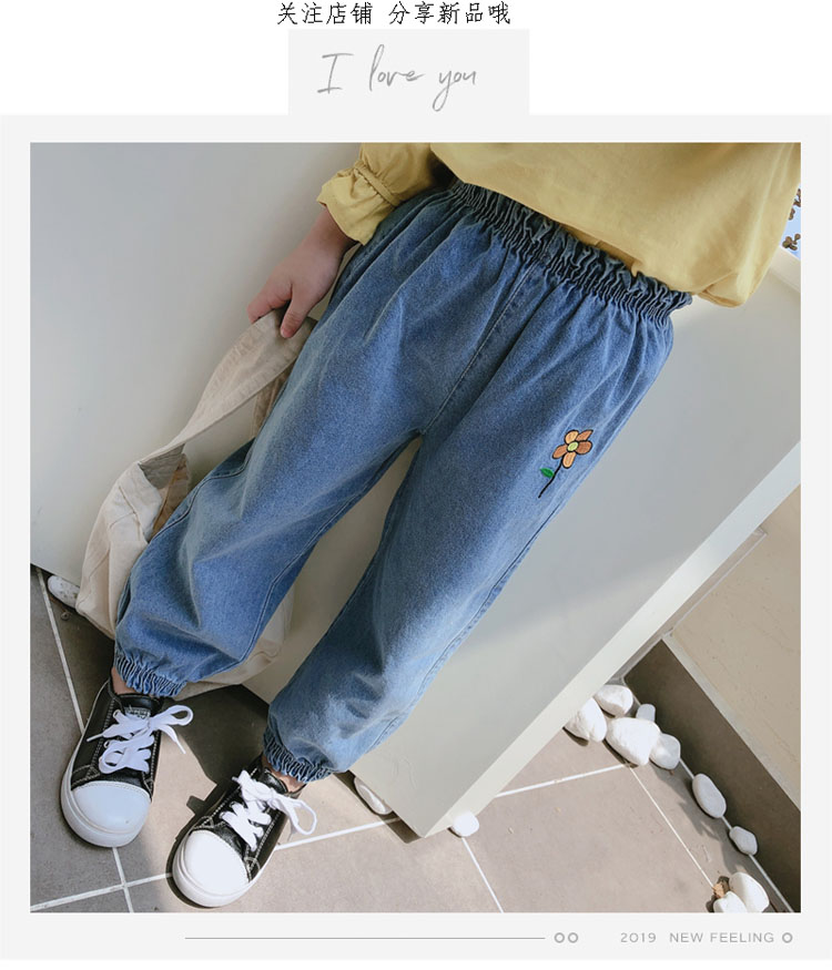 2019春秋季新款 女童寶寶寬松牛仔褲長褲 中小童舒適花朵收口褲子1入