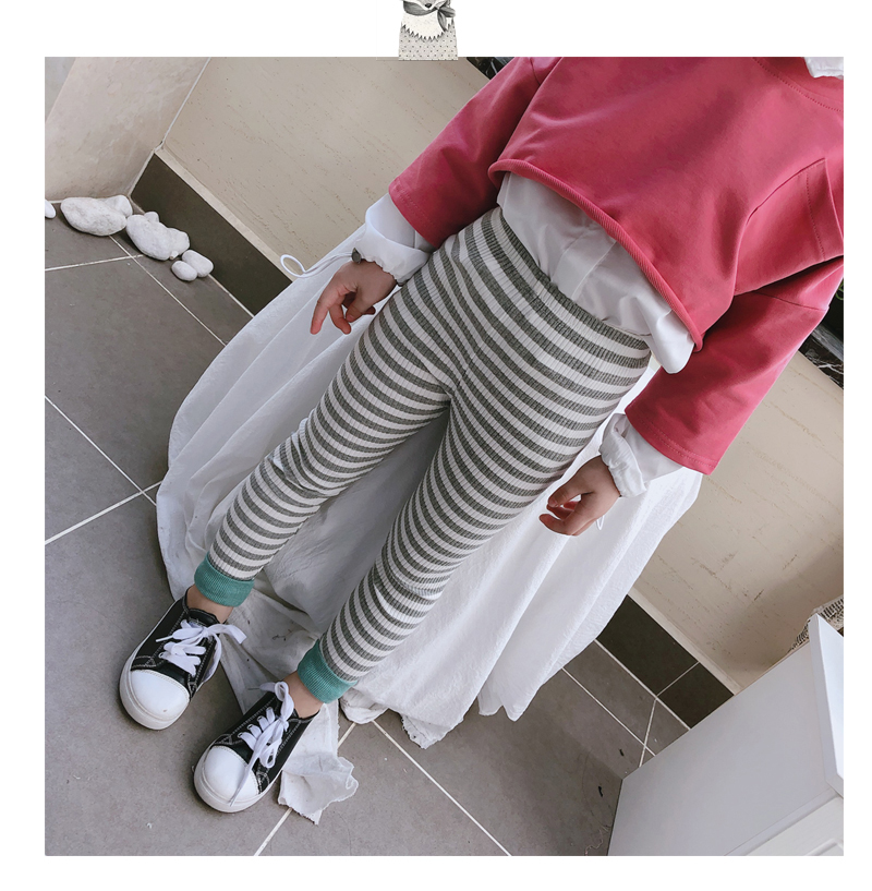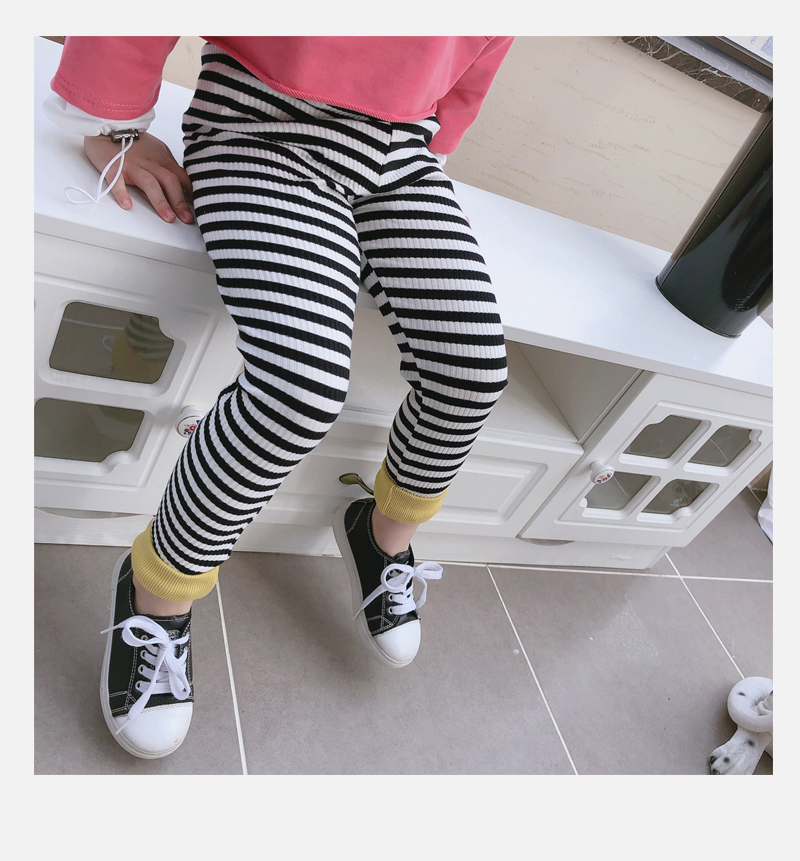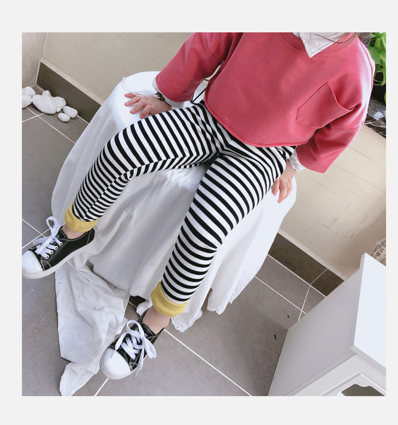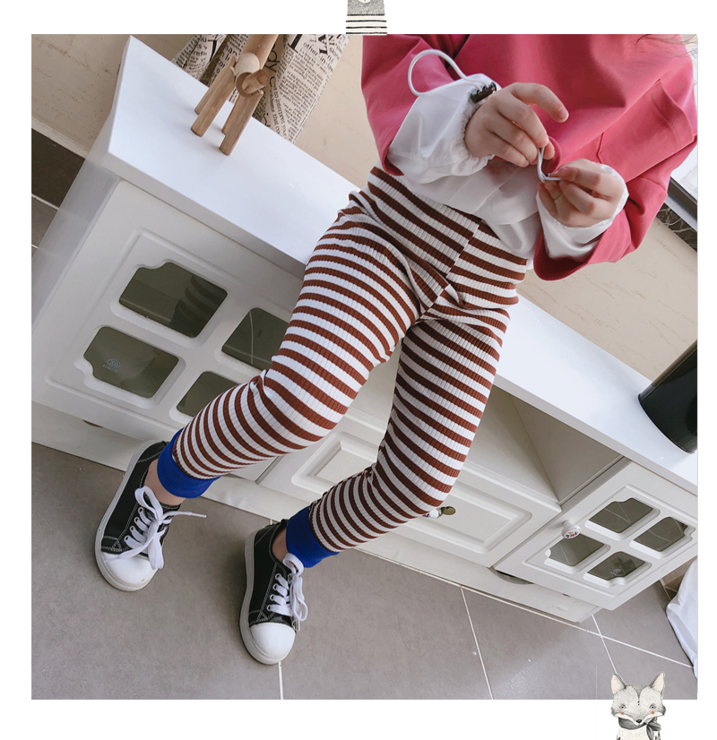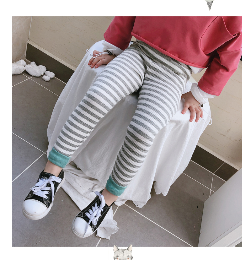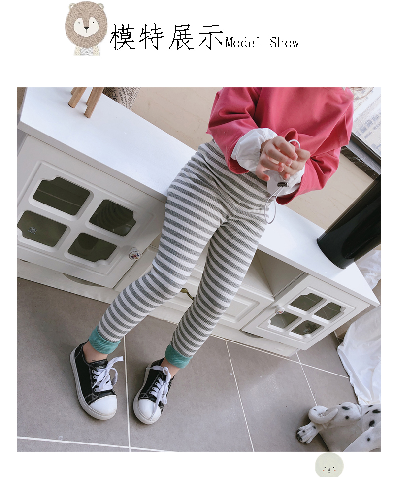 2019春秋季新款 中小童寬松舒適打底褲 女童可愛個性條紋休閑褲1入