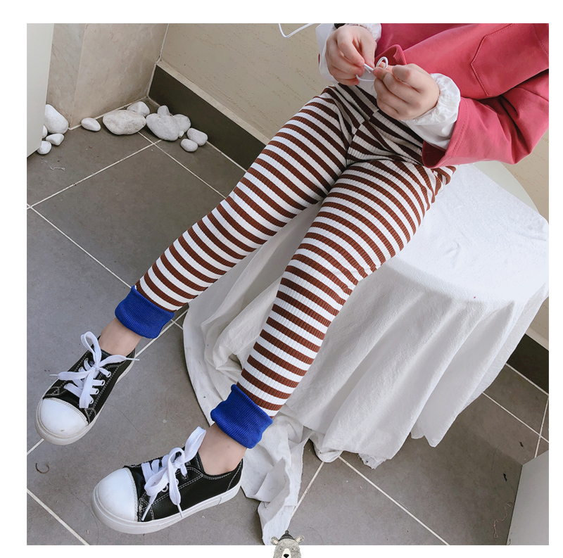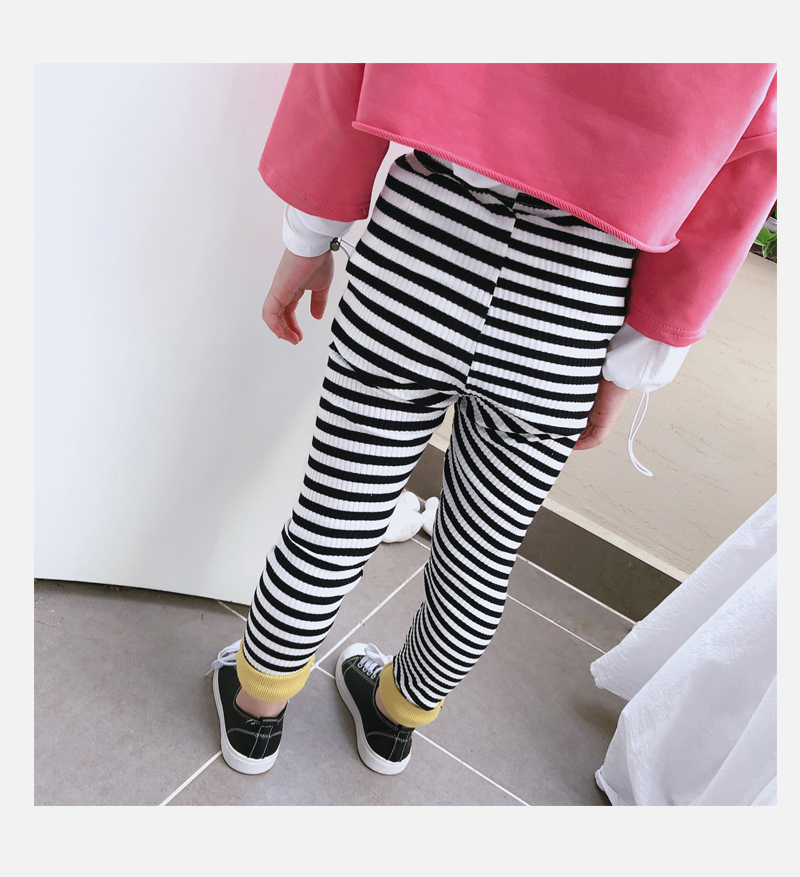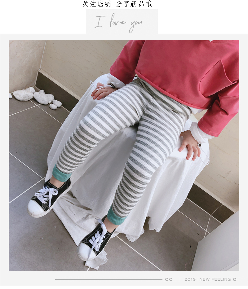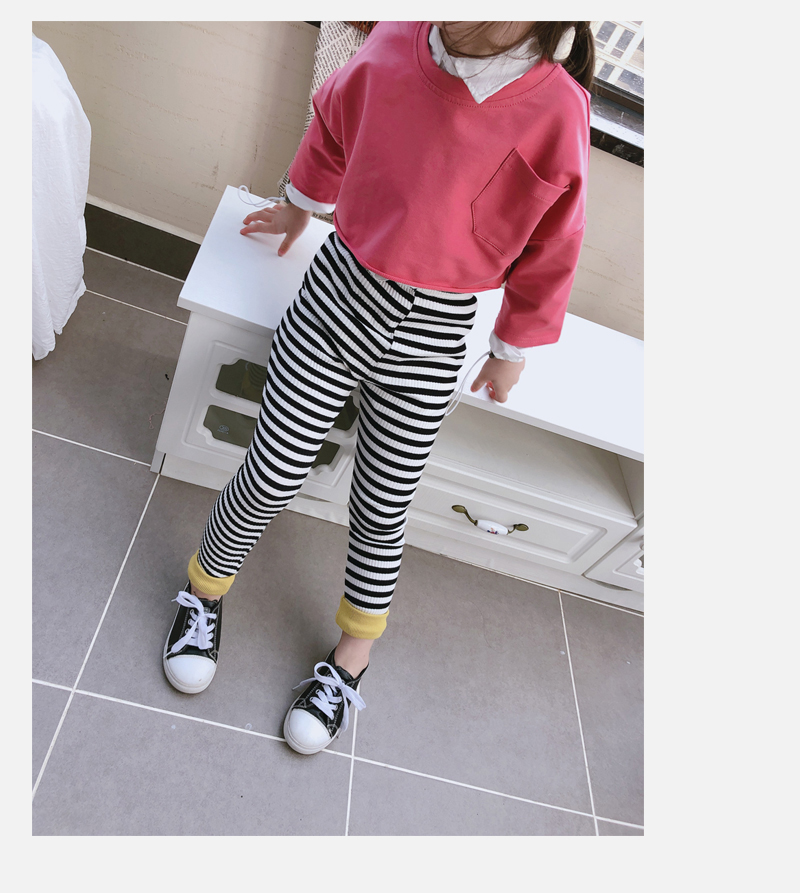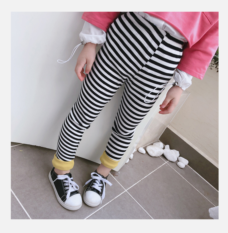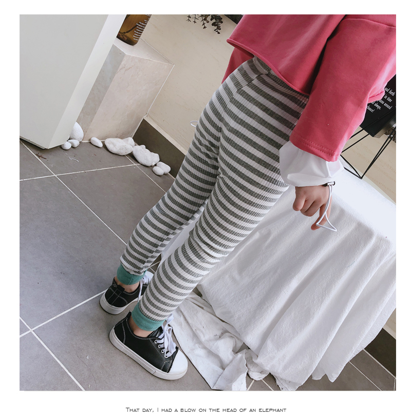 2019春秋季新款 中小童寬松舒適打底褲 女童可愛個性條紋休閑褲1入