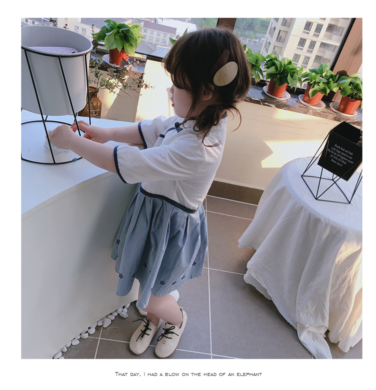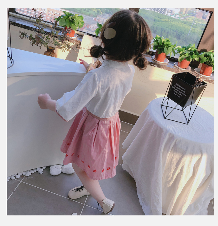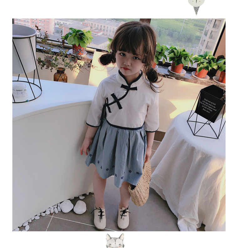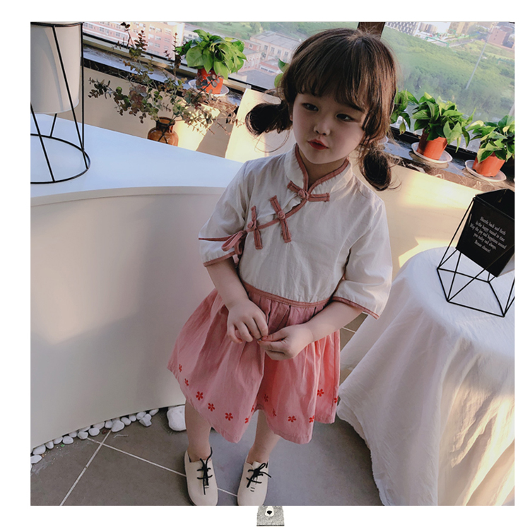 2019夏季新款 女童洋氣中國風漢服連衣裙 中小童兒童復古撞色裙子1入