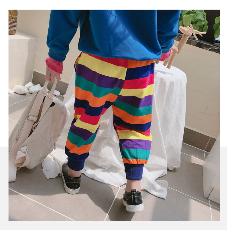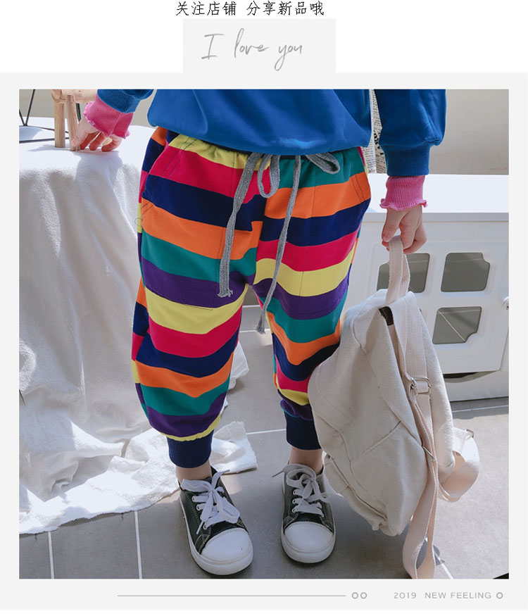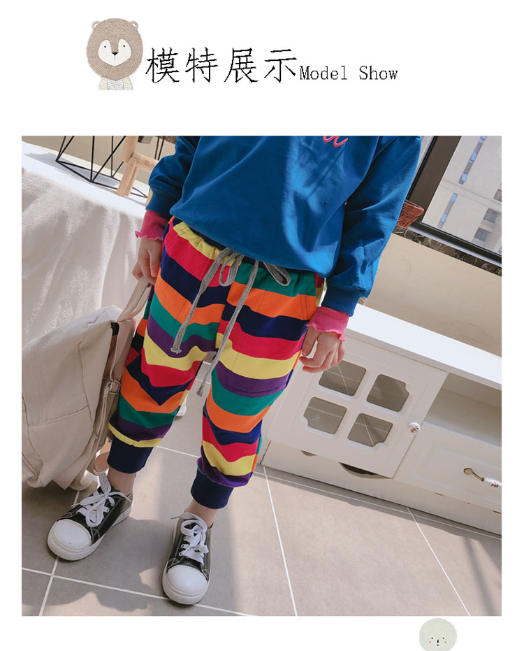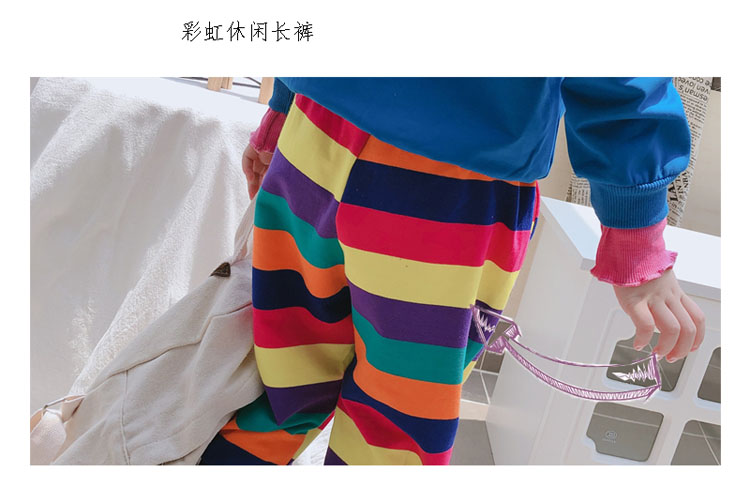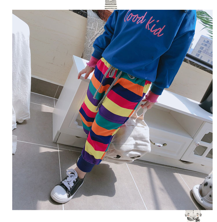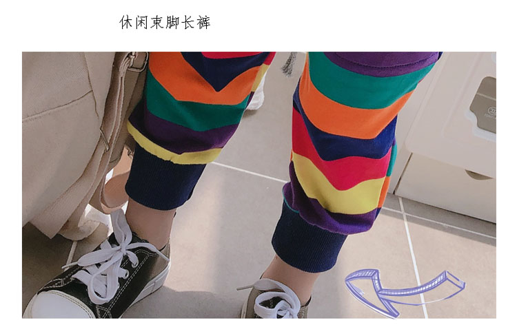 2019春秋季新款 女童可愛甜美收口運動褲 中小兒童帥氣彩虹休閑褲1入