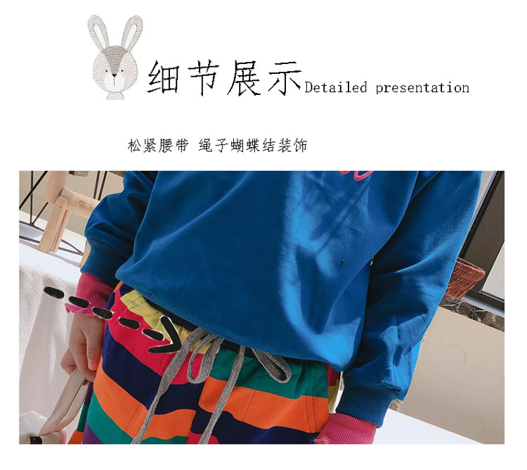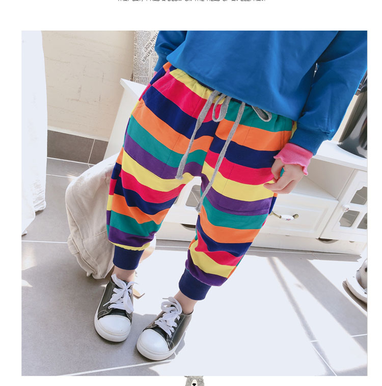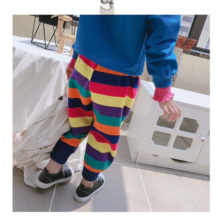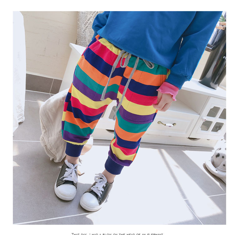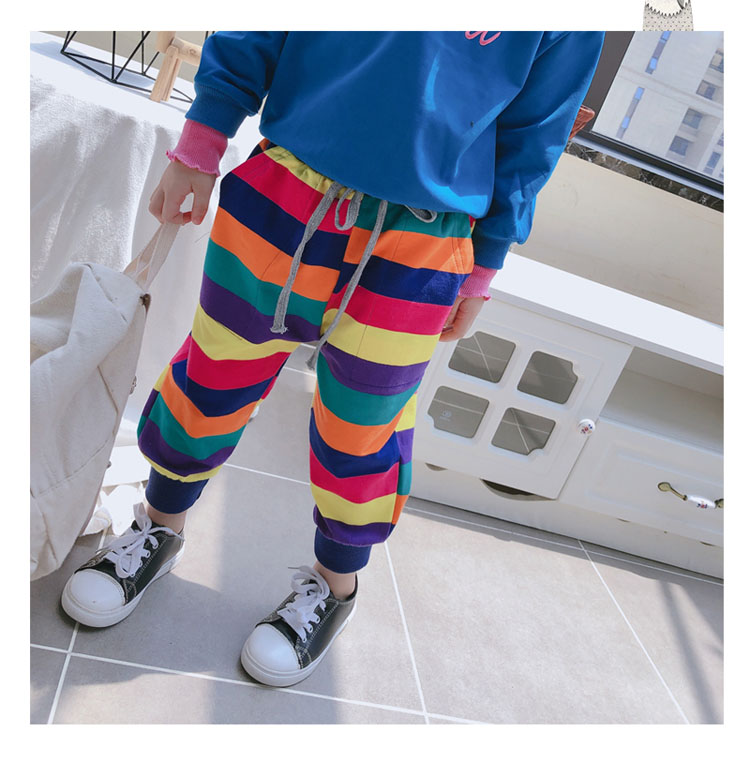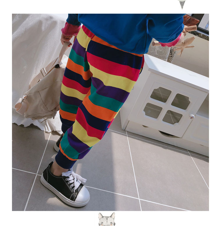 2019春秋季新款 女童可愛甜美收口運動褲 中小兒童帥氣彩虹休閑褲1入