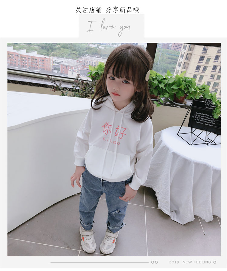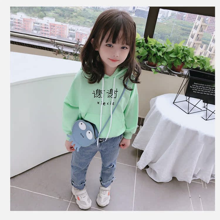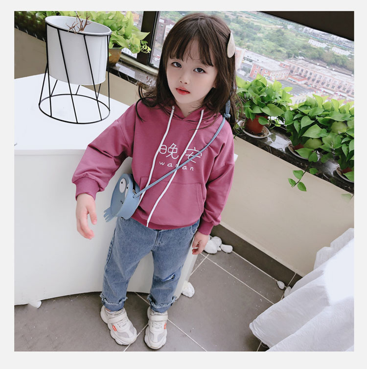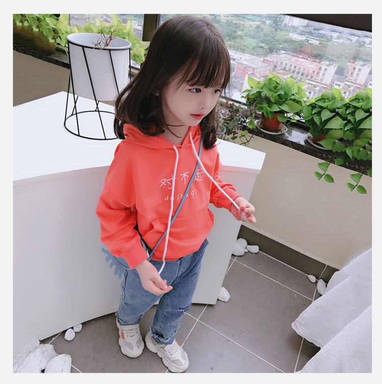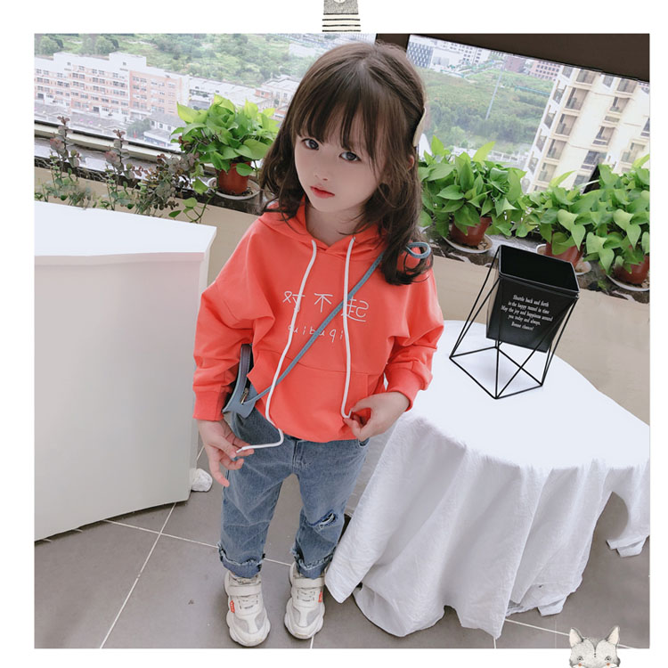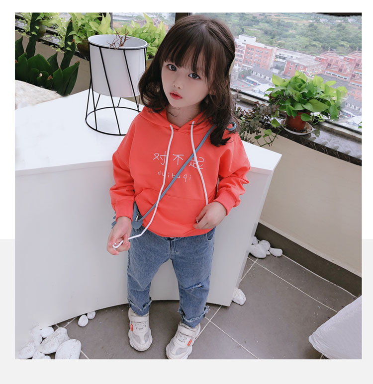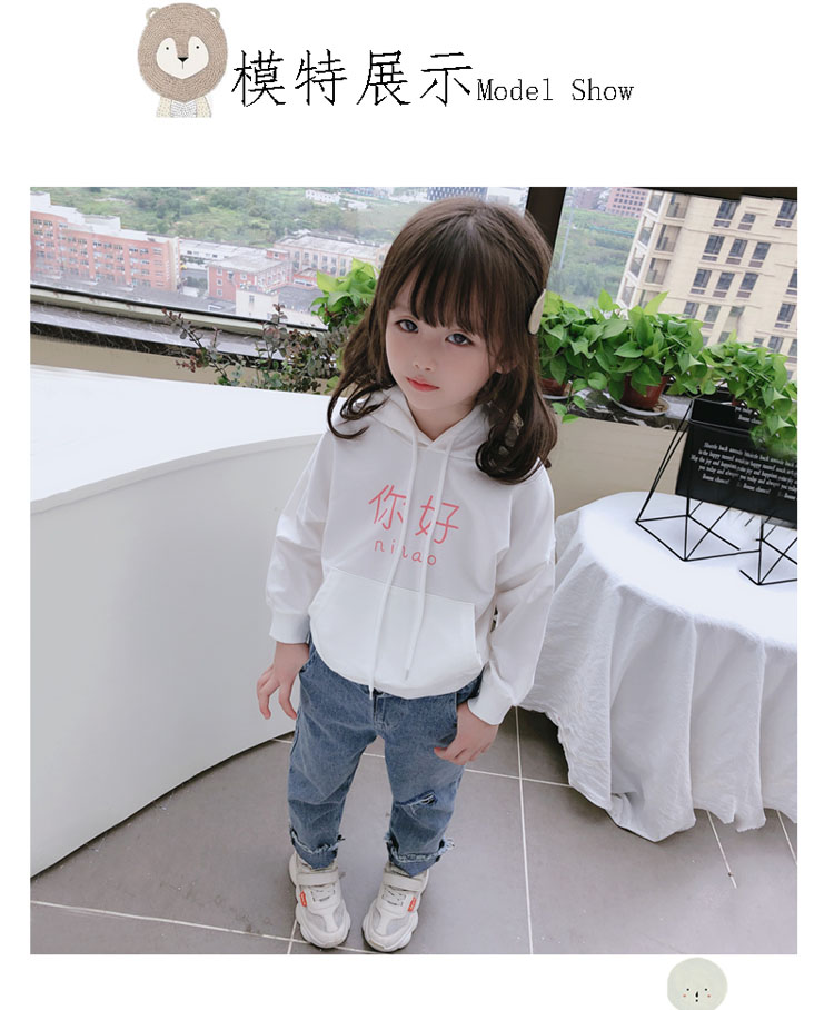 2019秋季新款 中小童舒適衛衣 男女童連帽長袖可愛趣味文字上衣1入