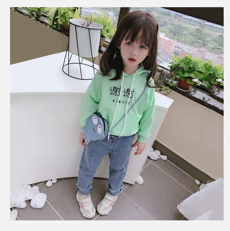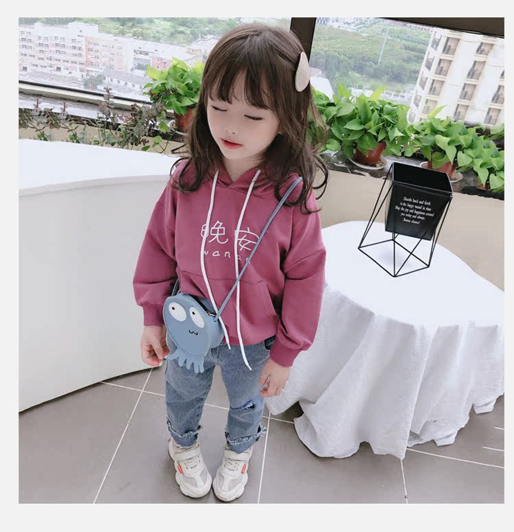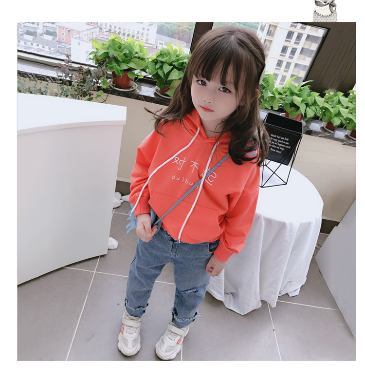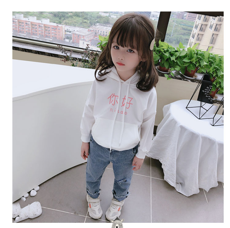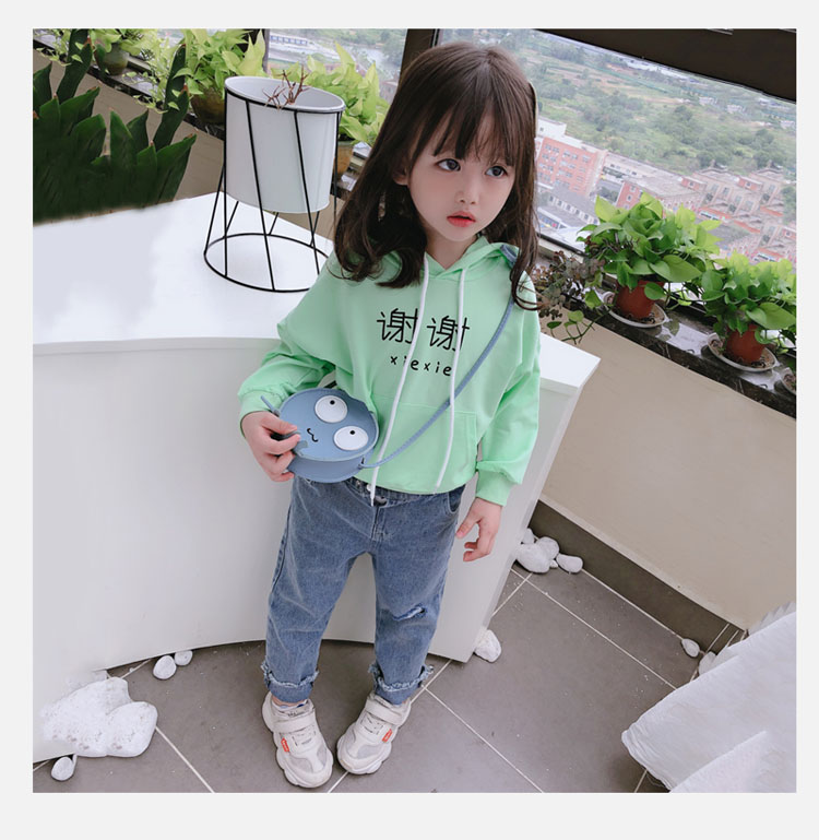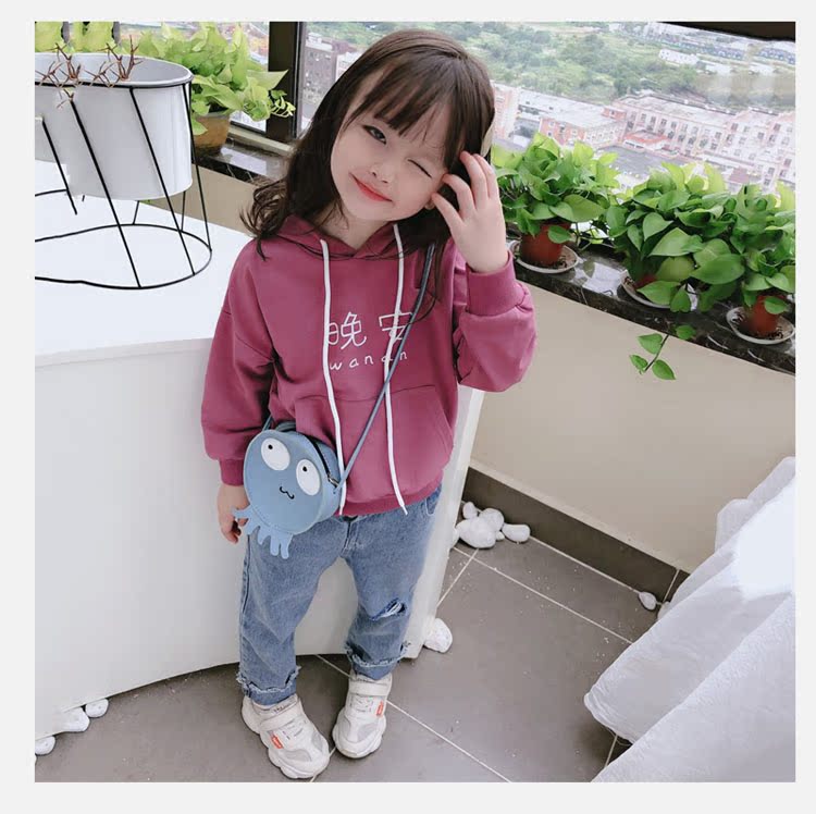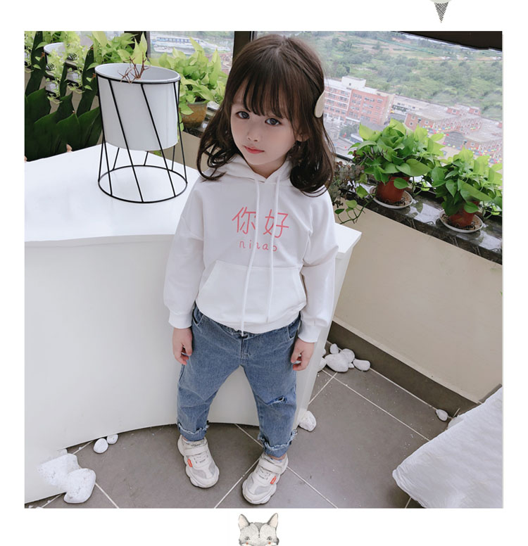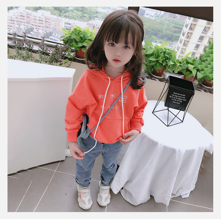 2019秋季新款 中小童舒適衛衣 男女童連帽長袖可愛趣味文字上衣1入
