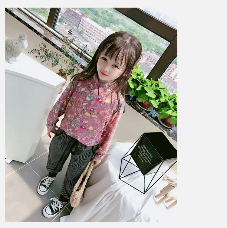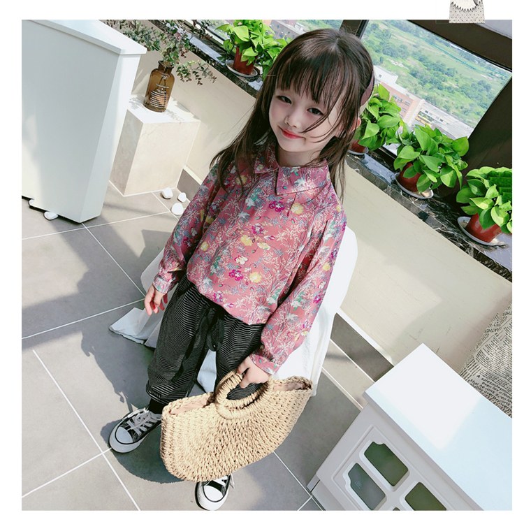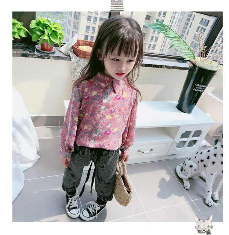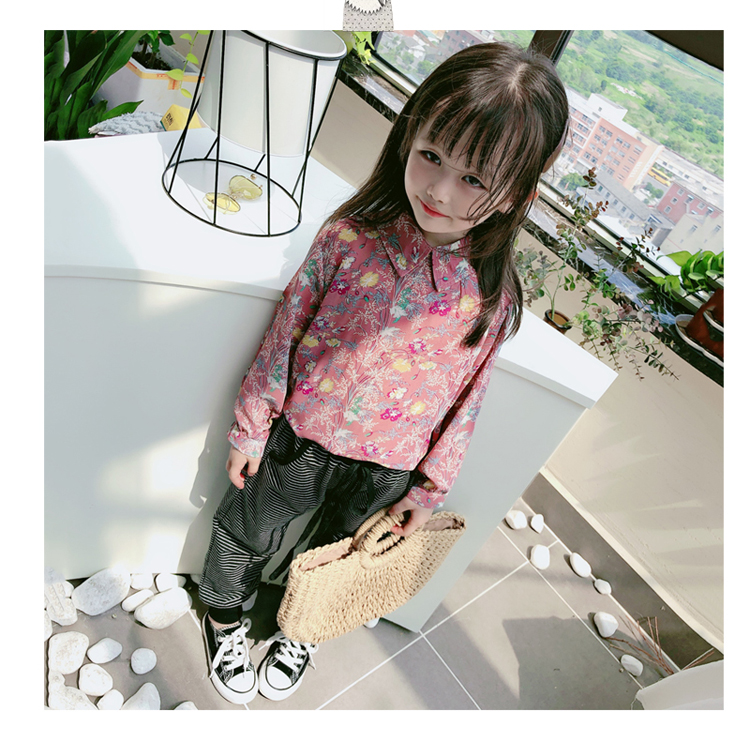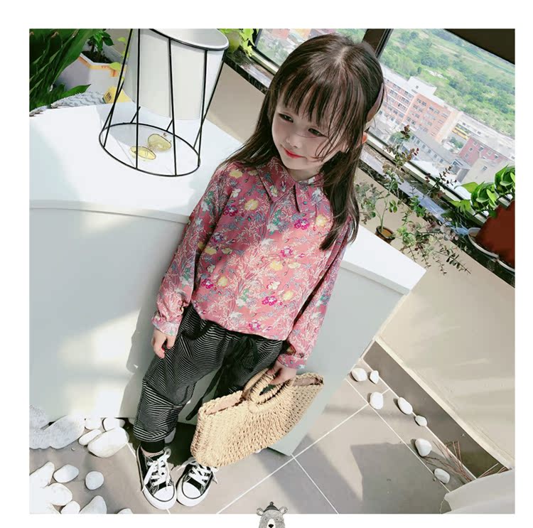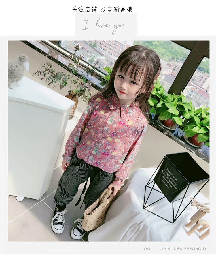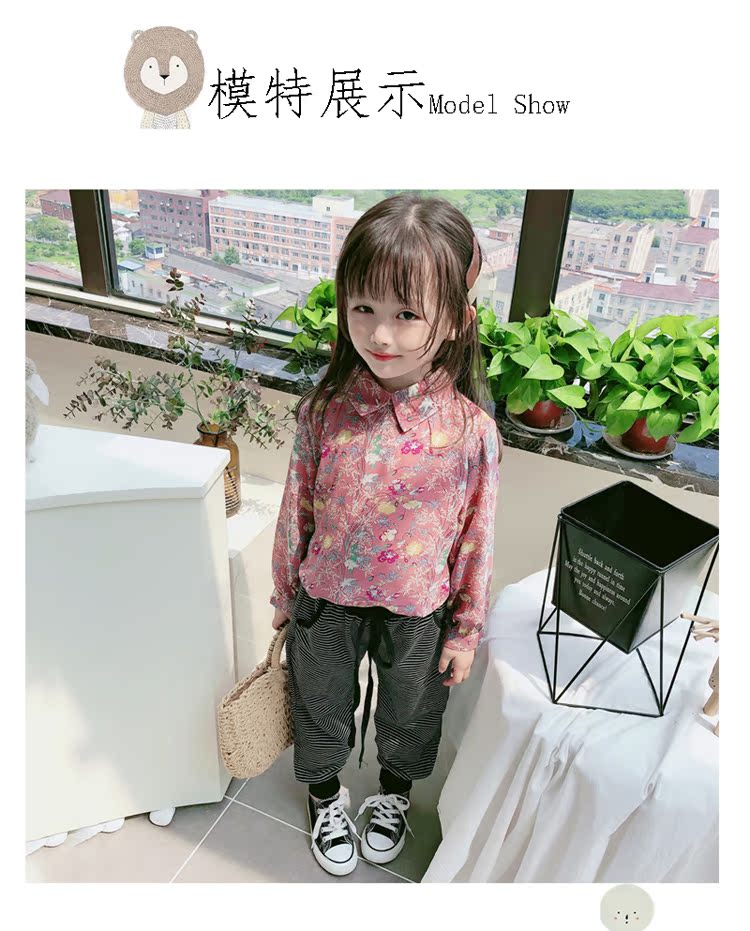 2019春秋季新款童裝 女童可愛花朵T恤 兒童翻領套頭打底衫上衣1入