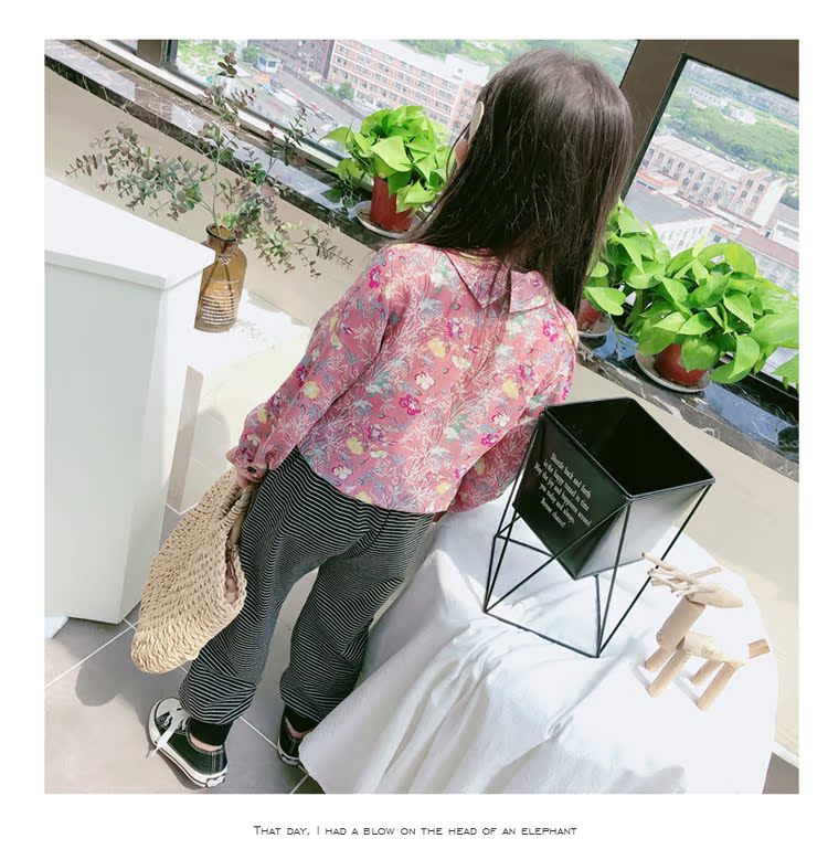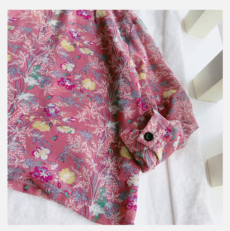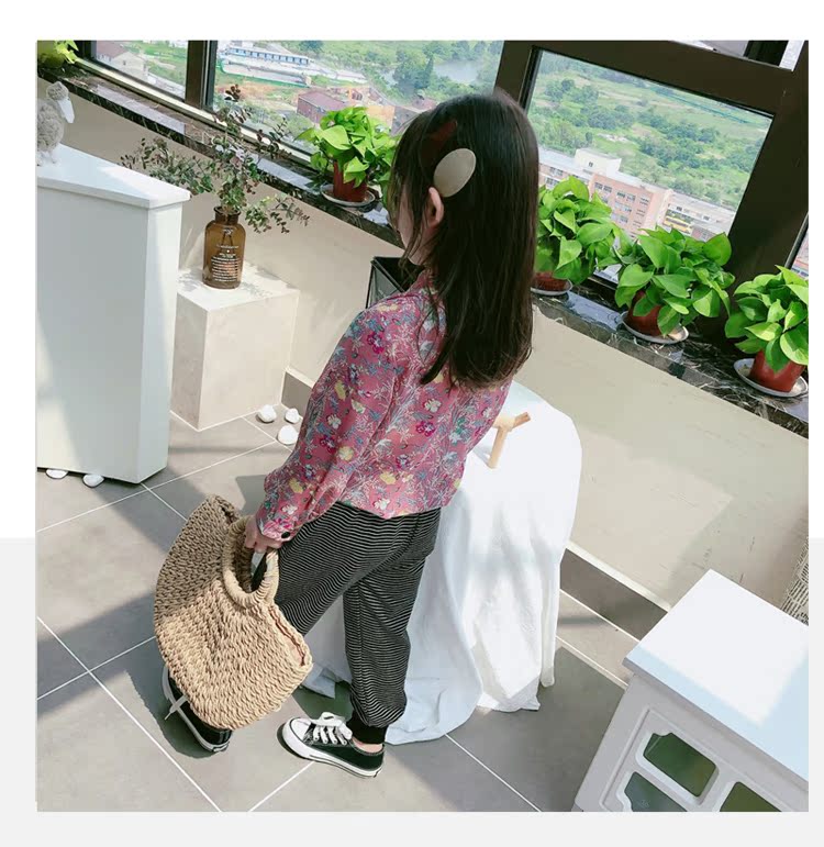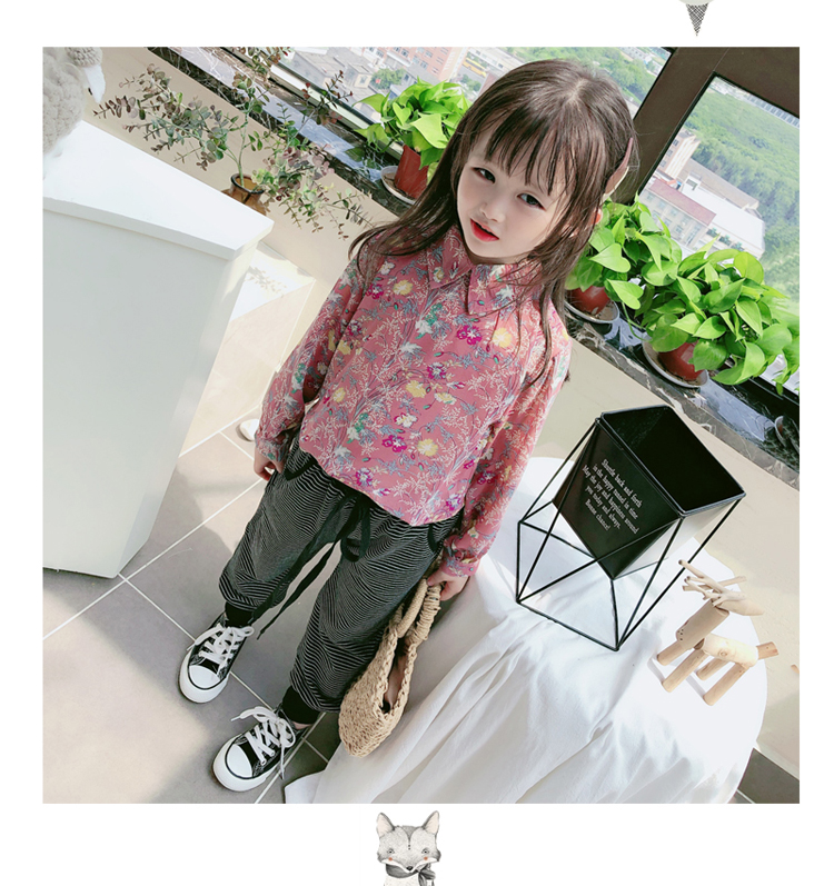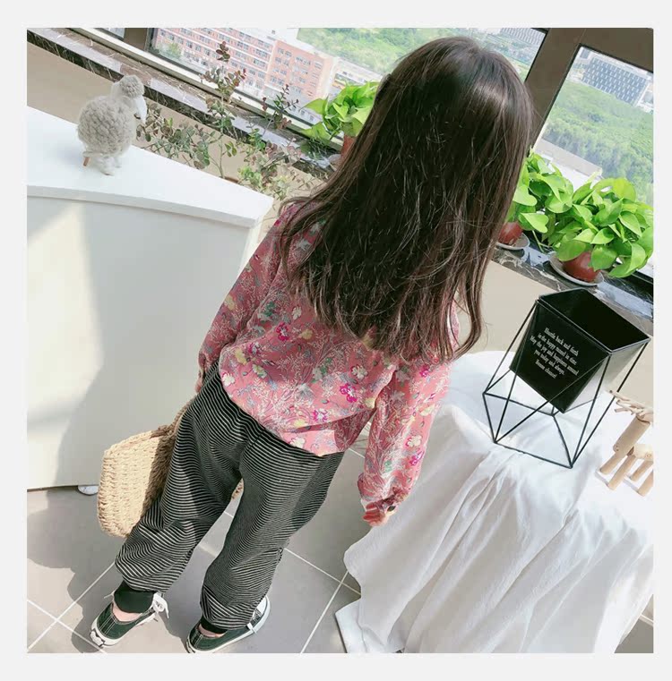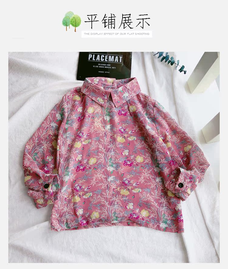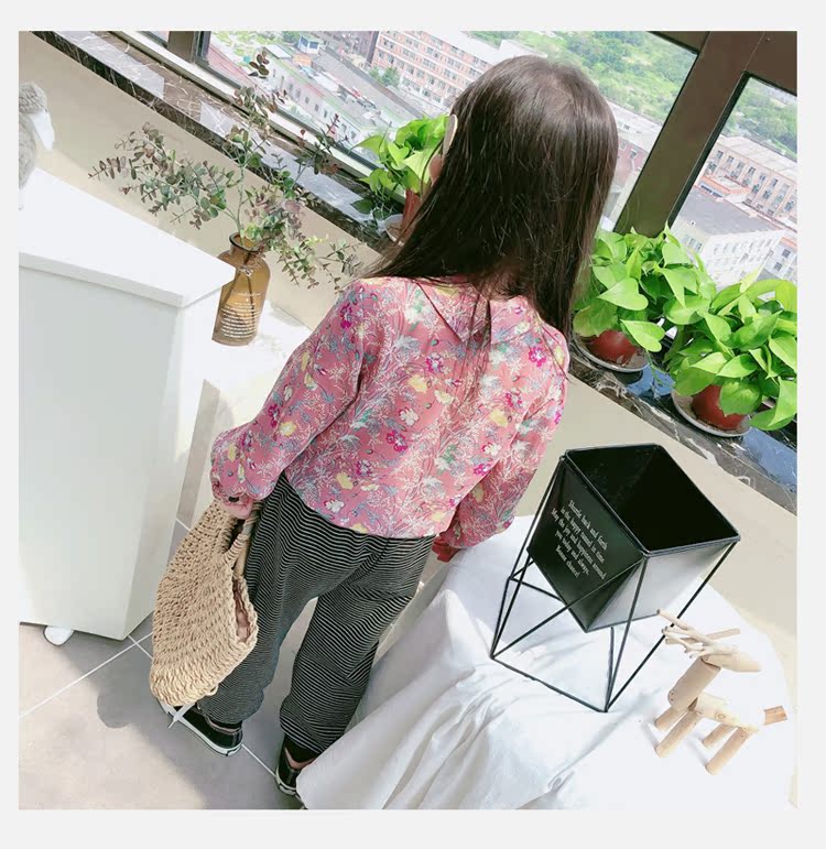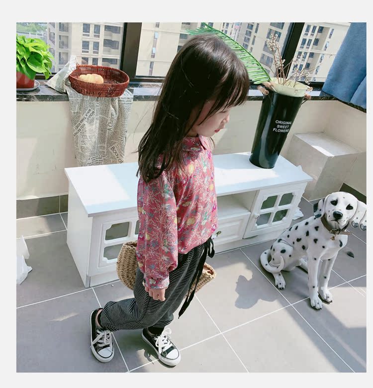 2019春秋季新款童裝 女童可愛花朵T恤 兒童翻領套頭打底衫上衣1入