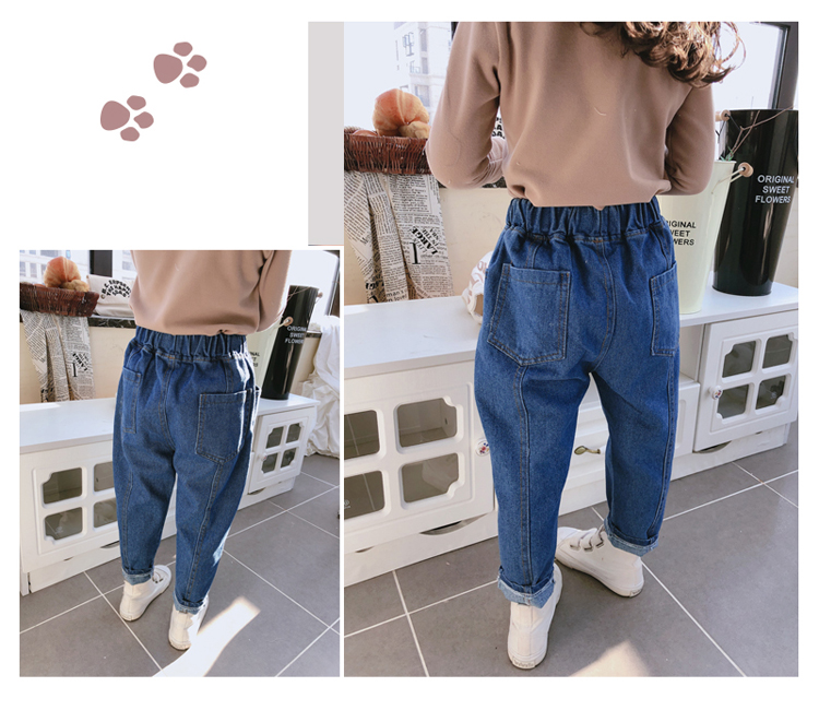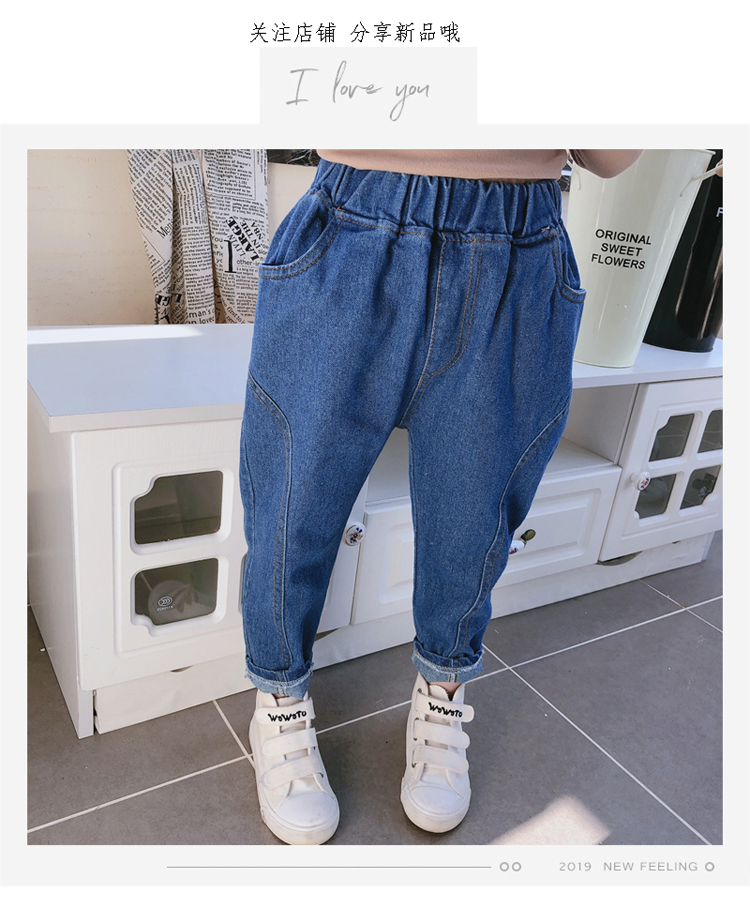 2019中小童秋冬季新款寬松帥氣百搭長褲 男女童彈力松緊腰牛仔褲1入